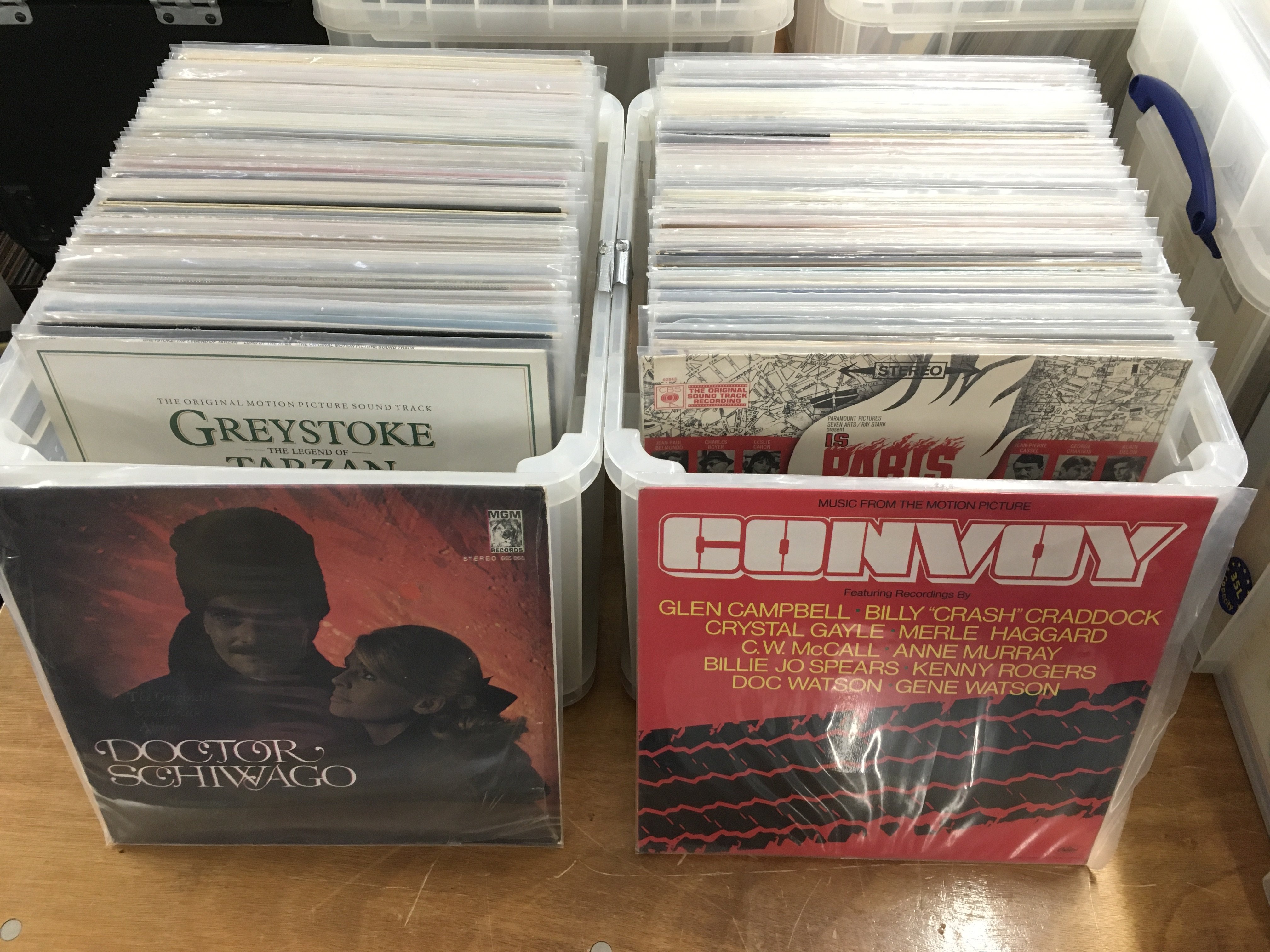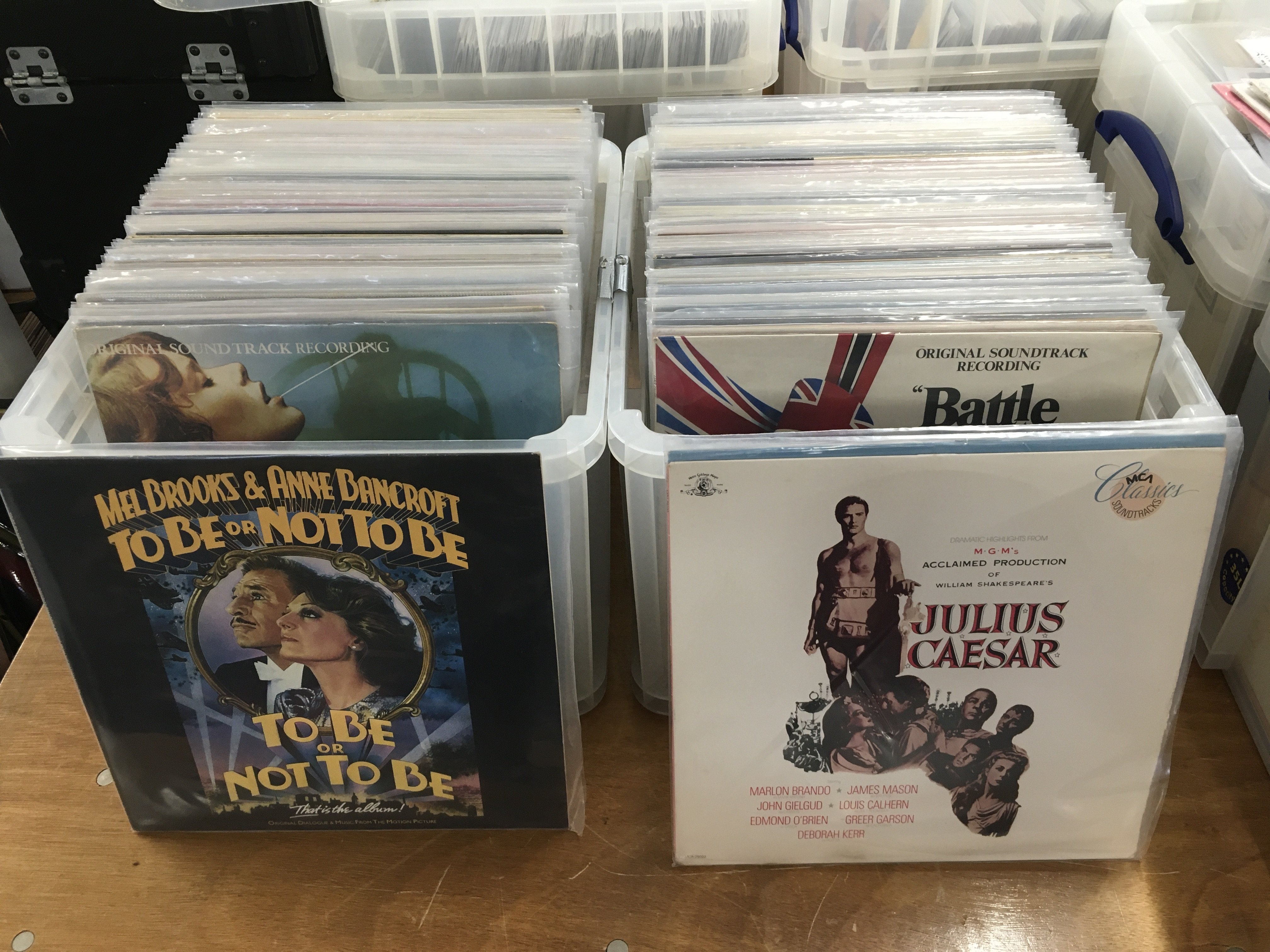 Two boxes of TV and film soundtrack LPs including Battle Of Britain, Julius Caesar, Convoy and many more.