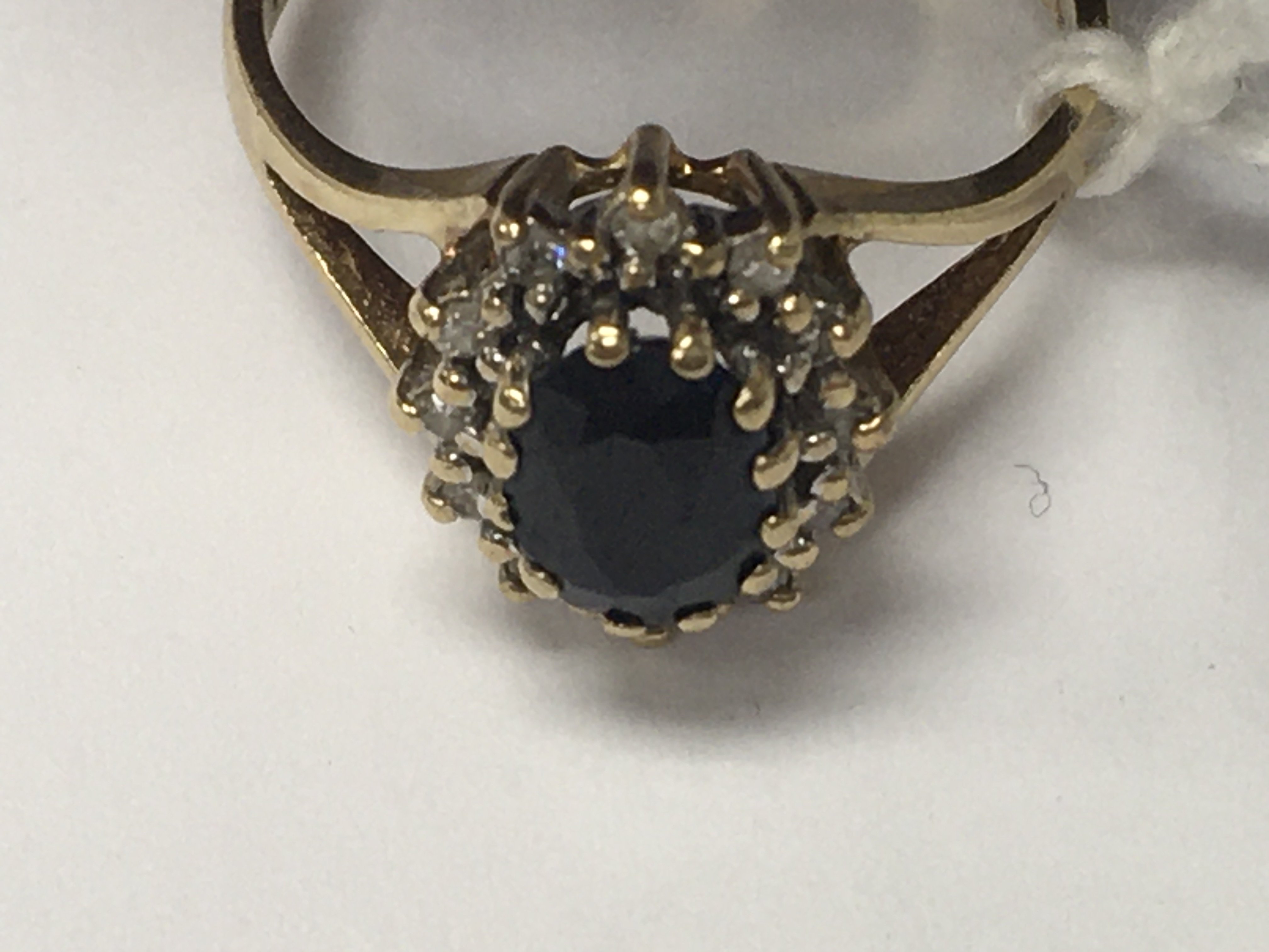 A 9 ct gold ring with sapphire and diamond chip inset size K .