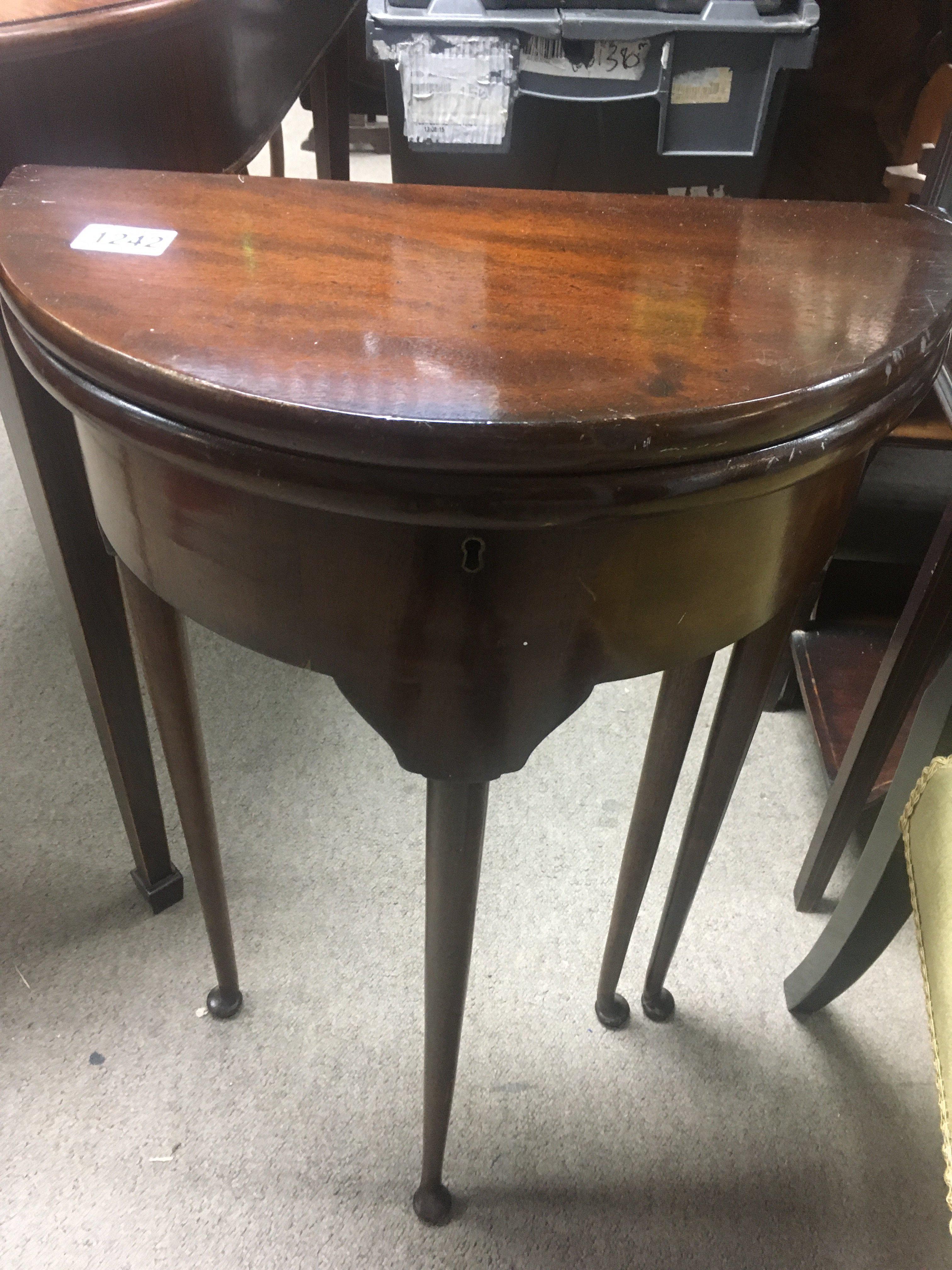 A small Georgian style mahogany Demi loom table the twin flap top above tapering legs .