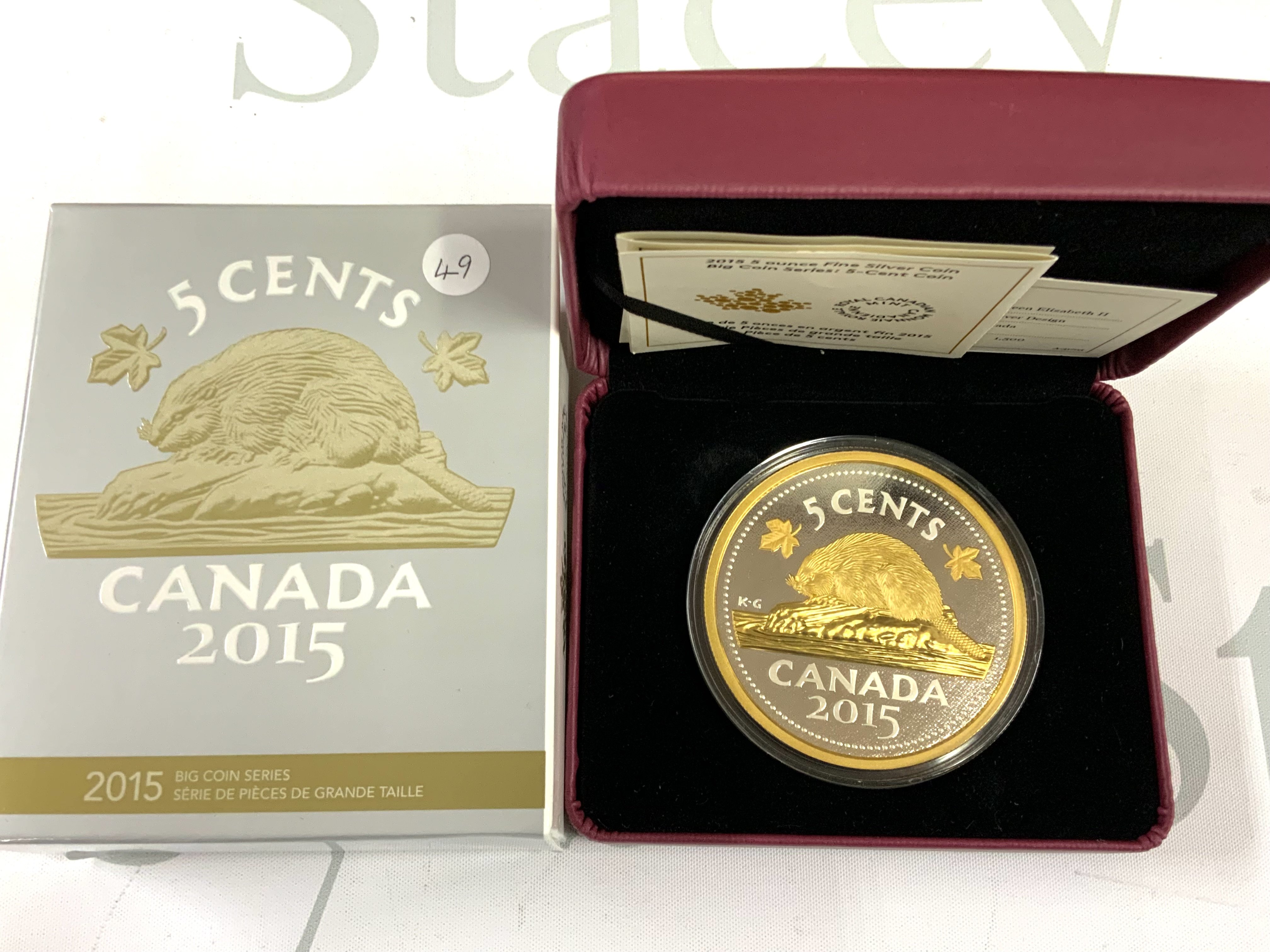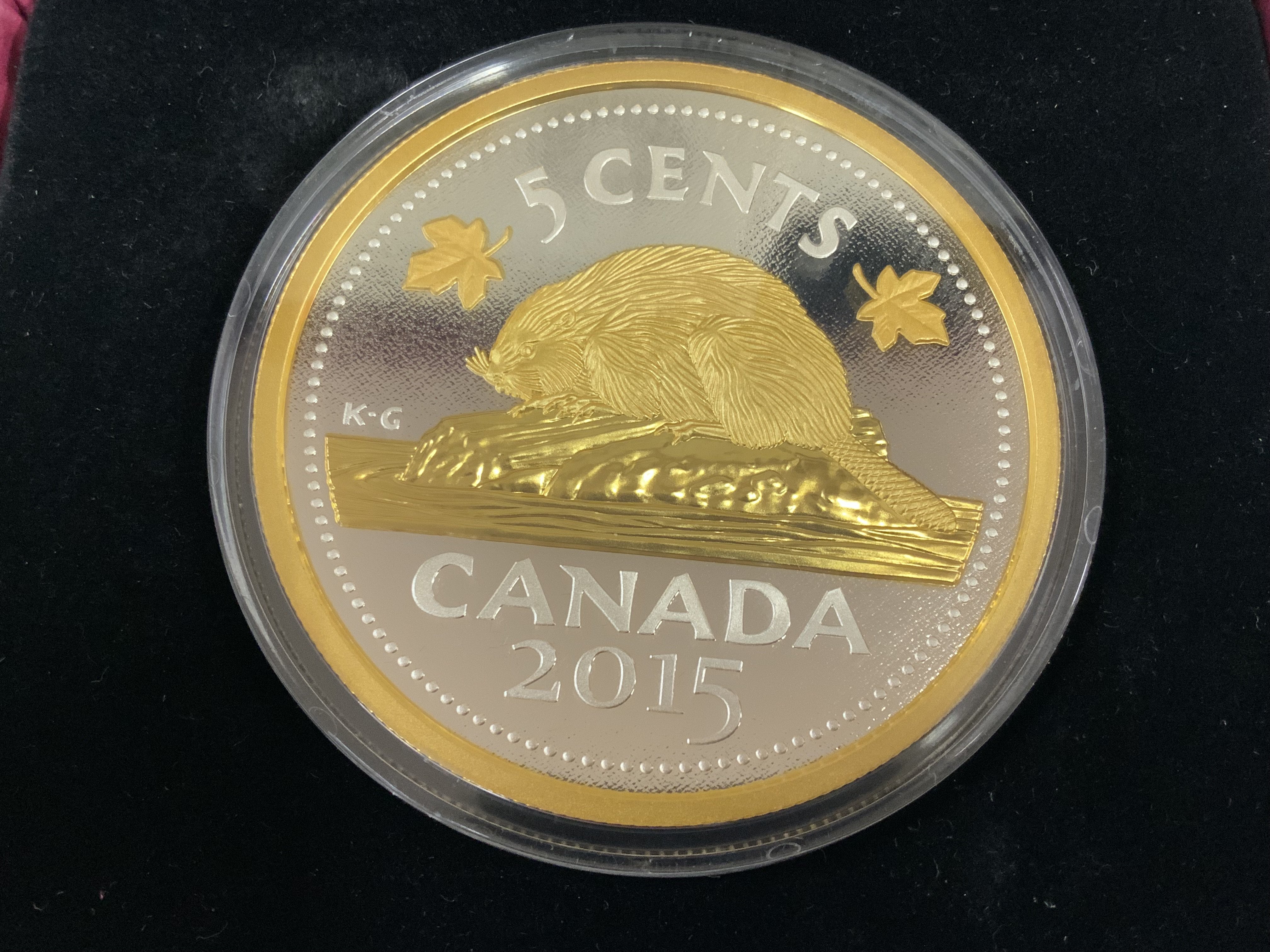 Royal Canadian Mint 2105 Canada Proof 5 ounce fine silver Big coin series 5 cents. (A)