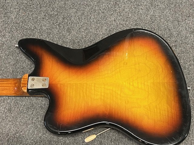 A 1964 Framus Strato De Luxe Electric Guitar. 3 pickup with all original parts. Condition good overall with some edge marking and playwear to the body. US 1 cent coins glued to the tops of each control. Comes with non original gig bag.