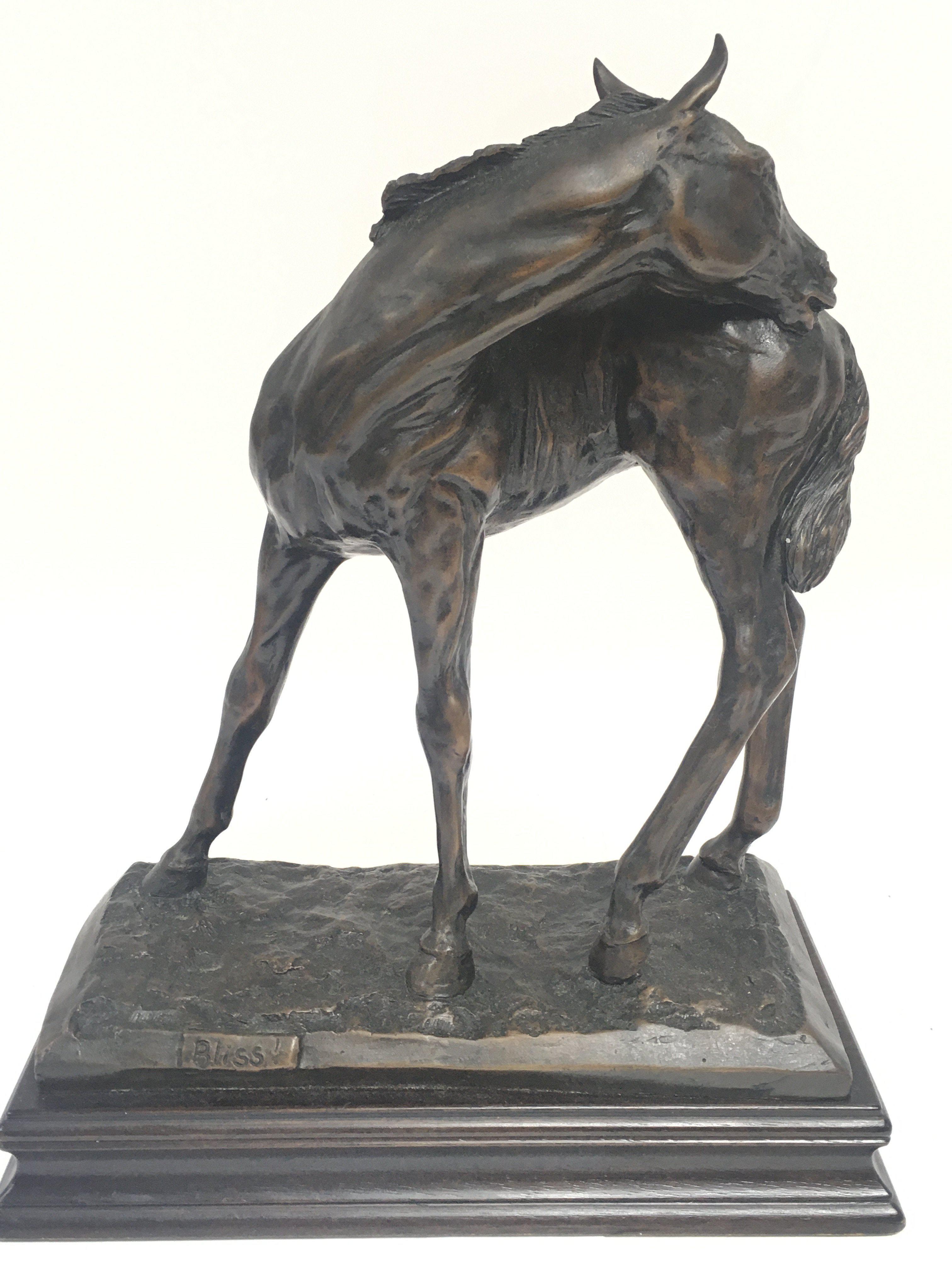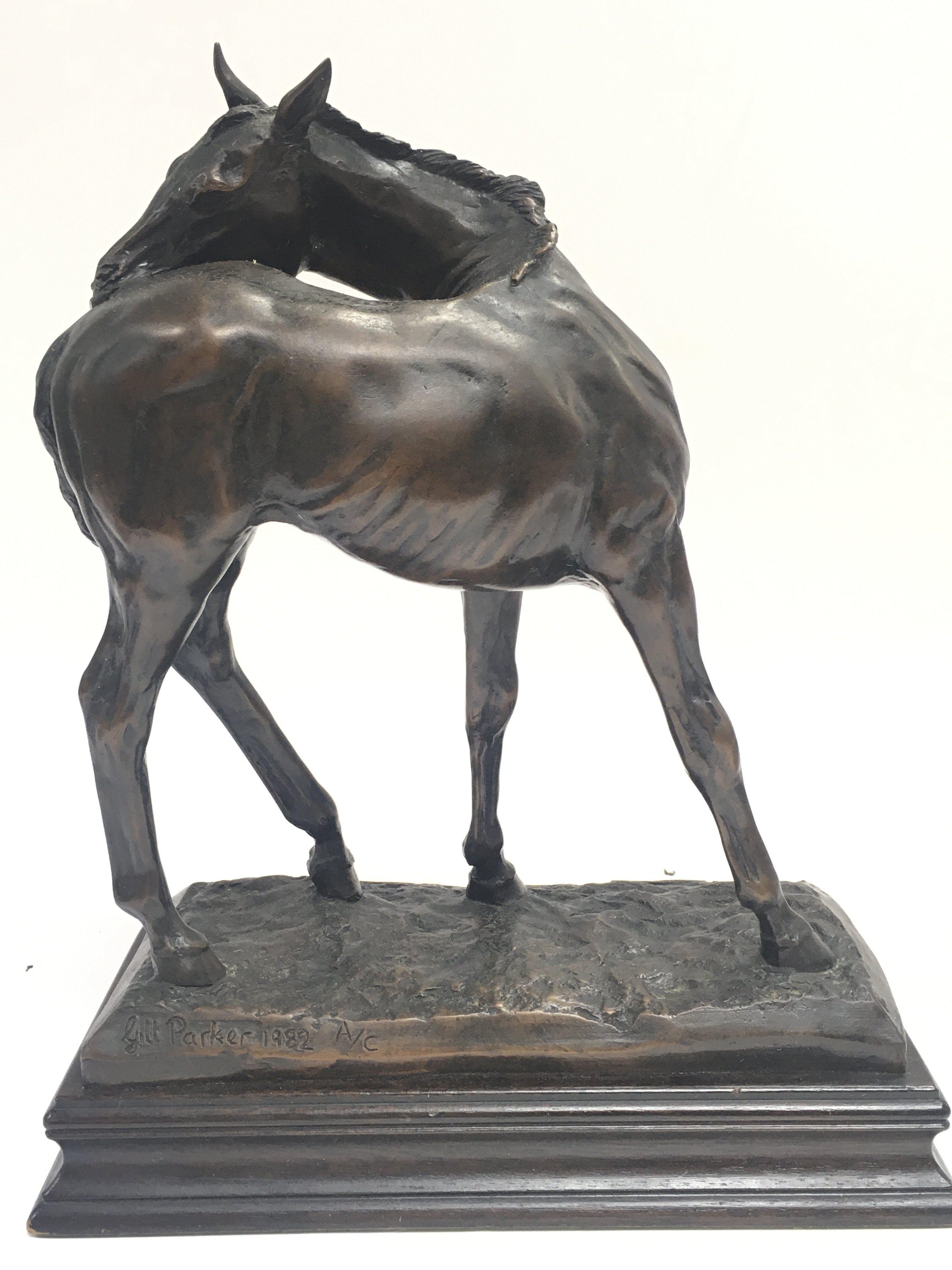 Gill Parker bronze sculpture study of a Foal, titled Bliss. Dated 1982. Approximately 23cm tall. Postage category B