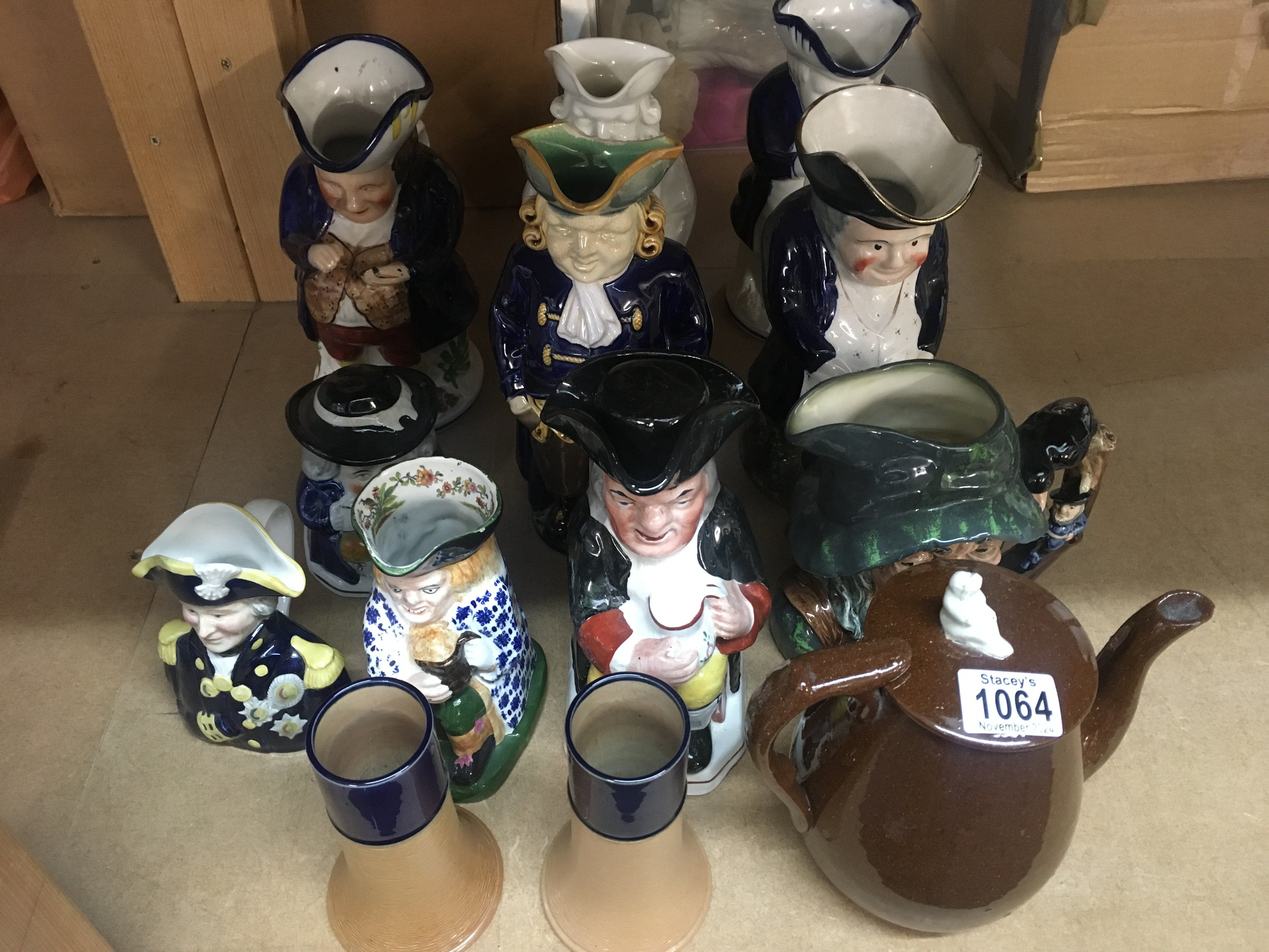 A Collection of Toby jugs including Minton a tea pot and a pair of vases .