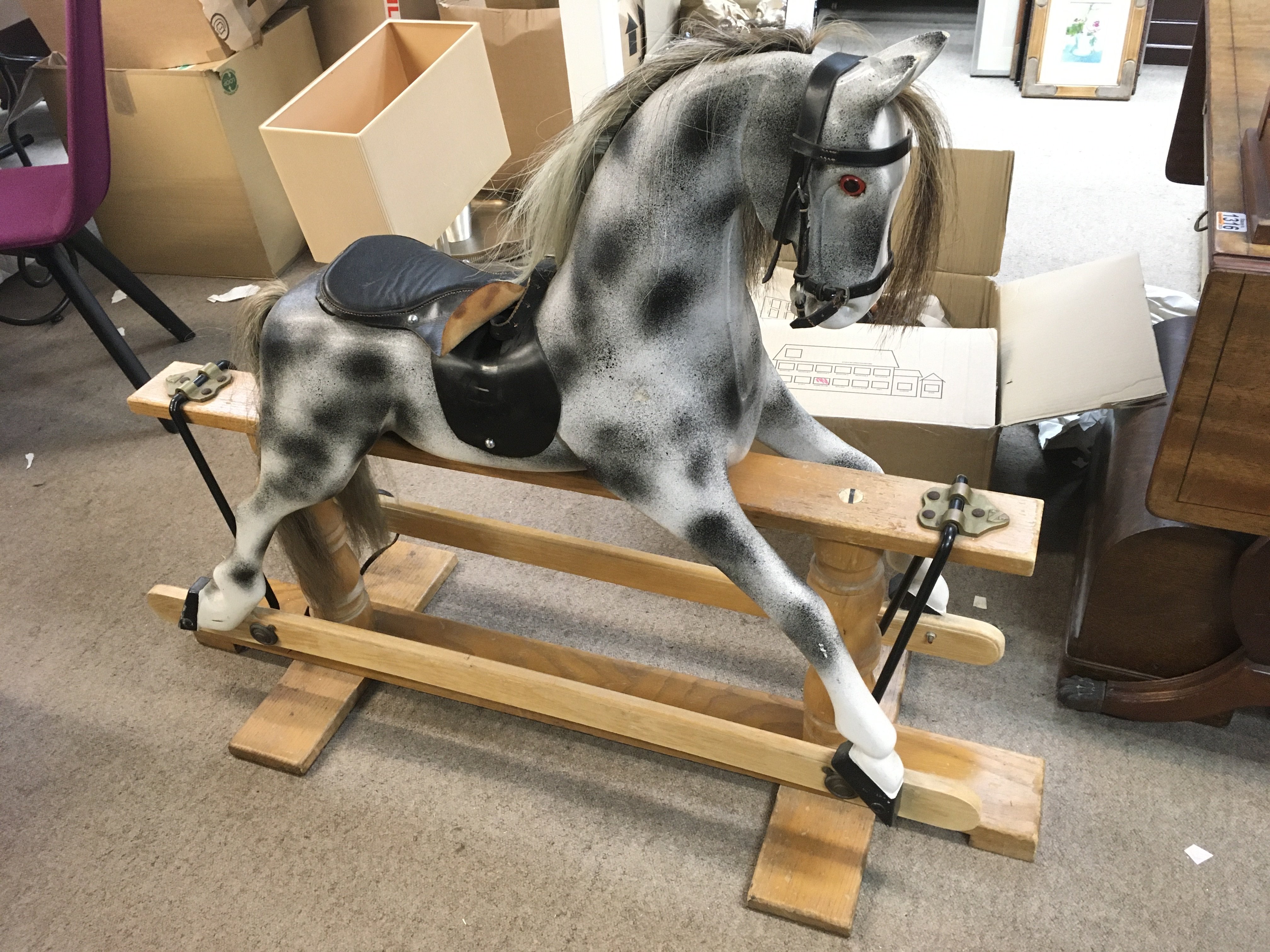 A vintage wooden rocking horse. 100cm tall. 114cm long approximately. This lot cannot be posted