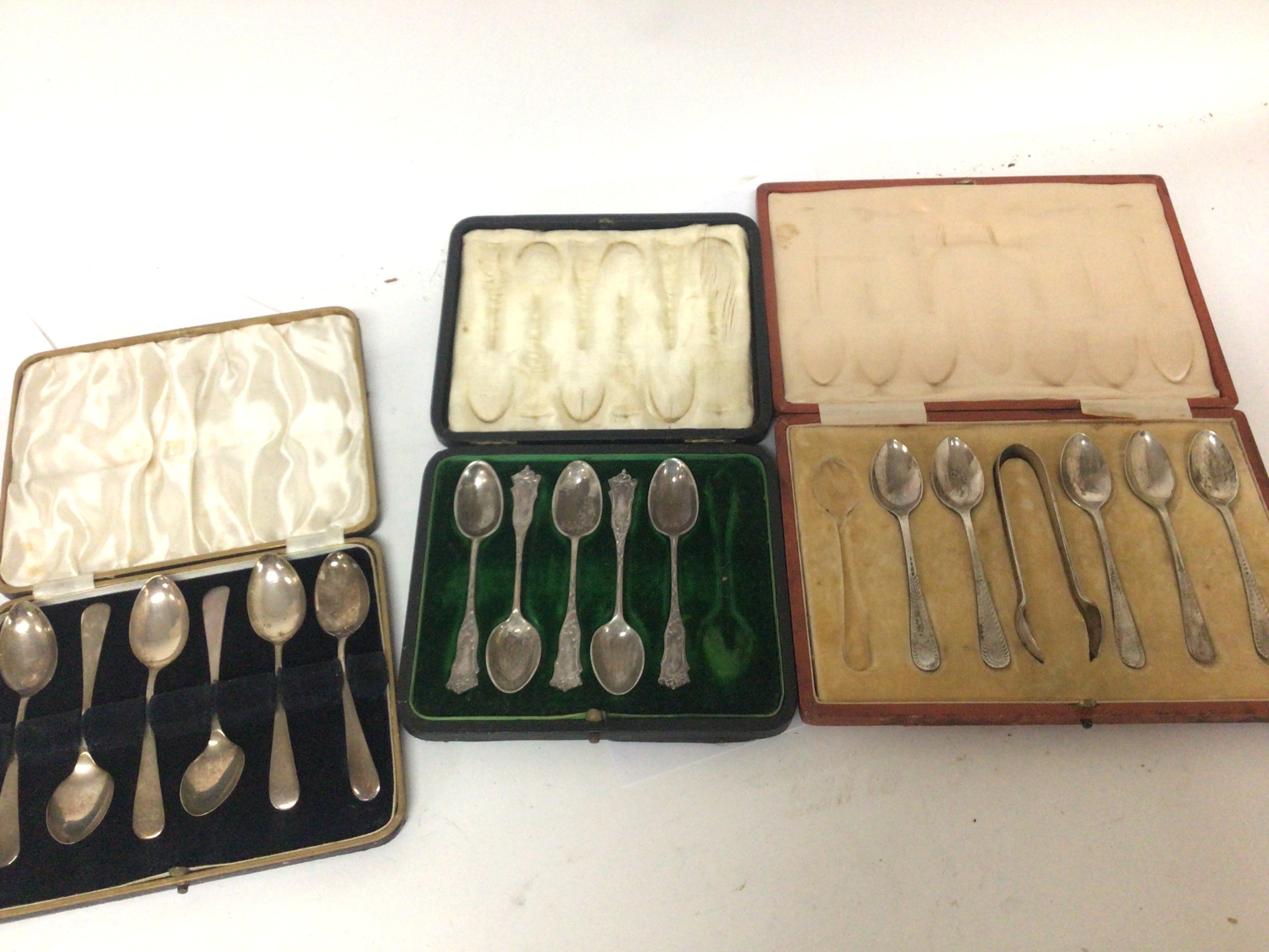 Three cased sets of silver spoons I fitted cases two spoons missing.