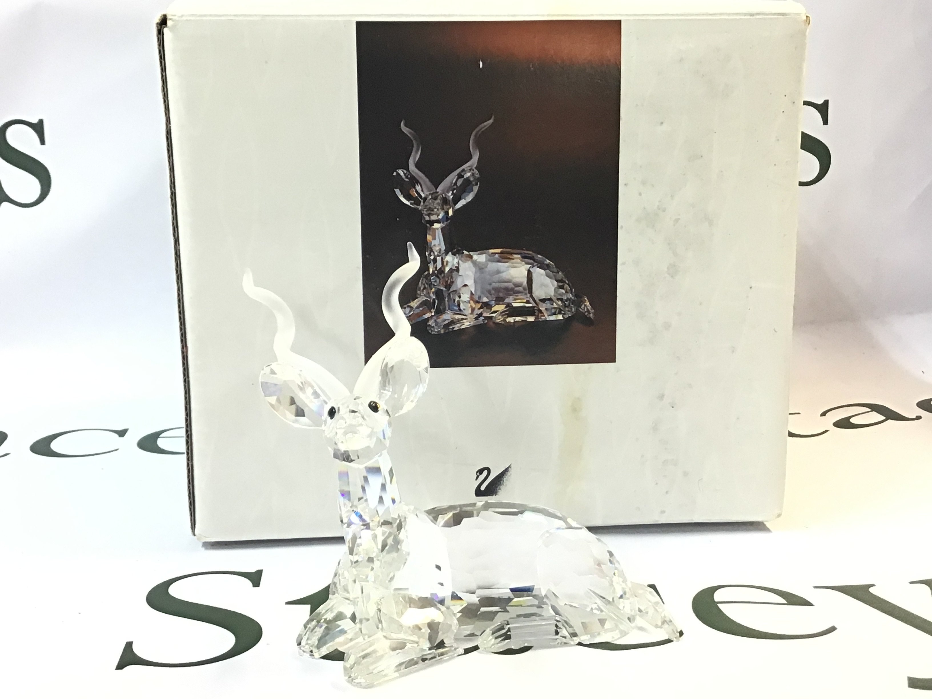 A boxed Swarovski Africa 1994 Kudu Crystal glass figure. Approximately 9.5cm tall. No obvious damage or restoration This lot cannot be posted