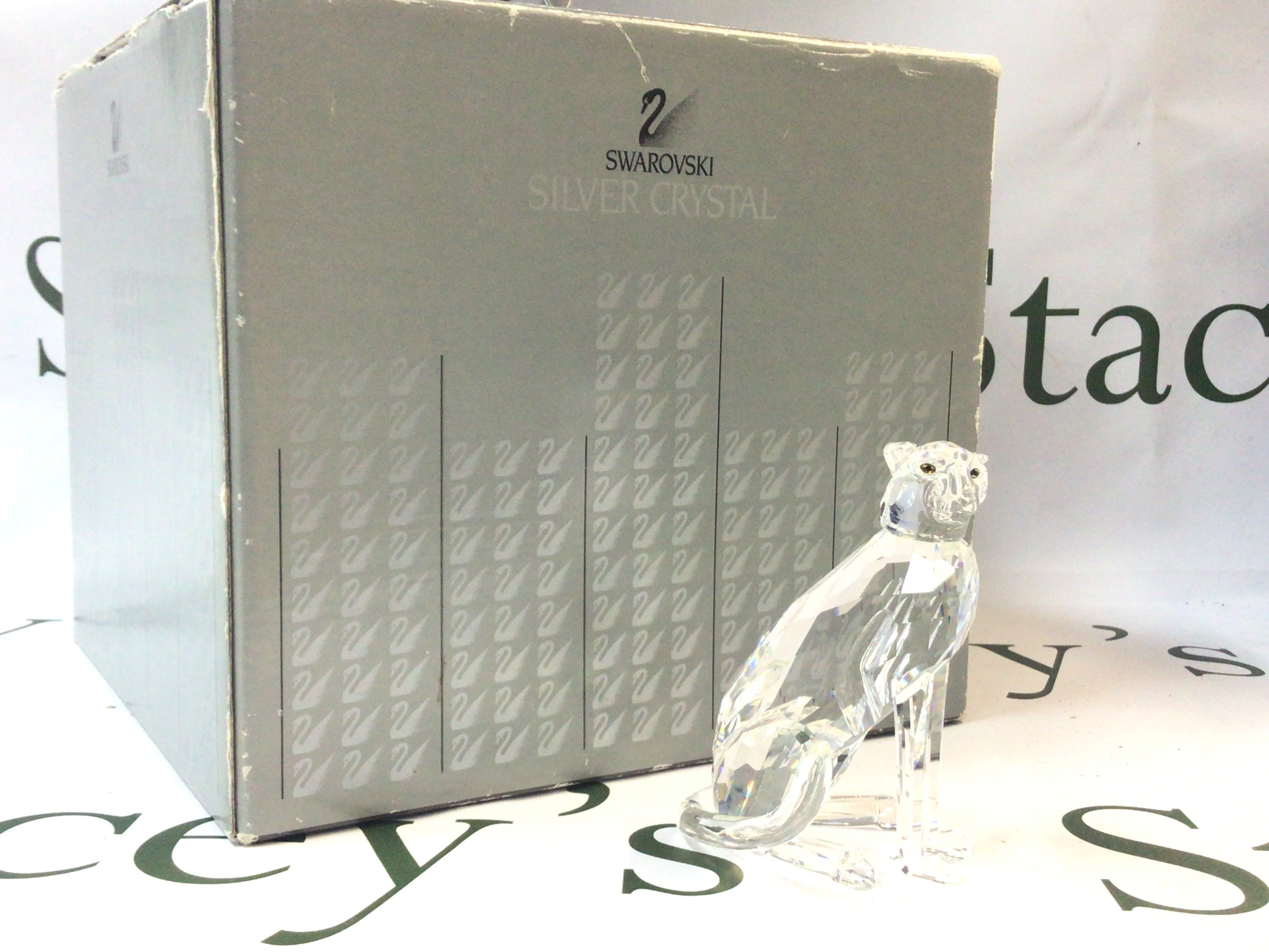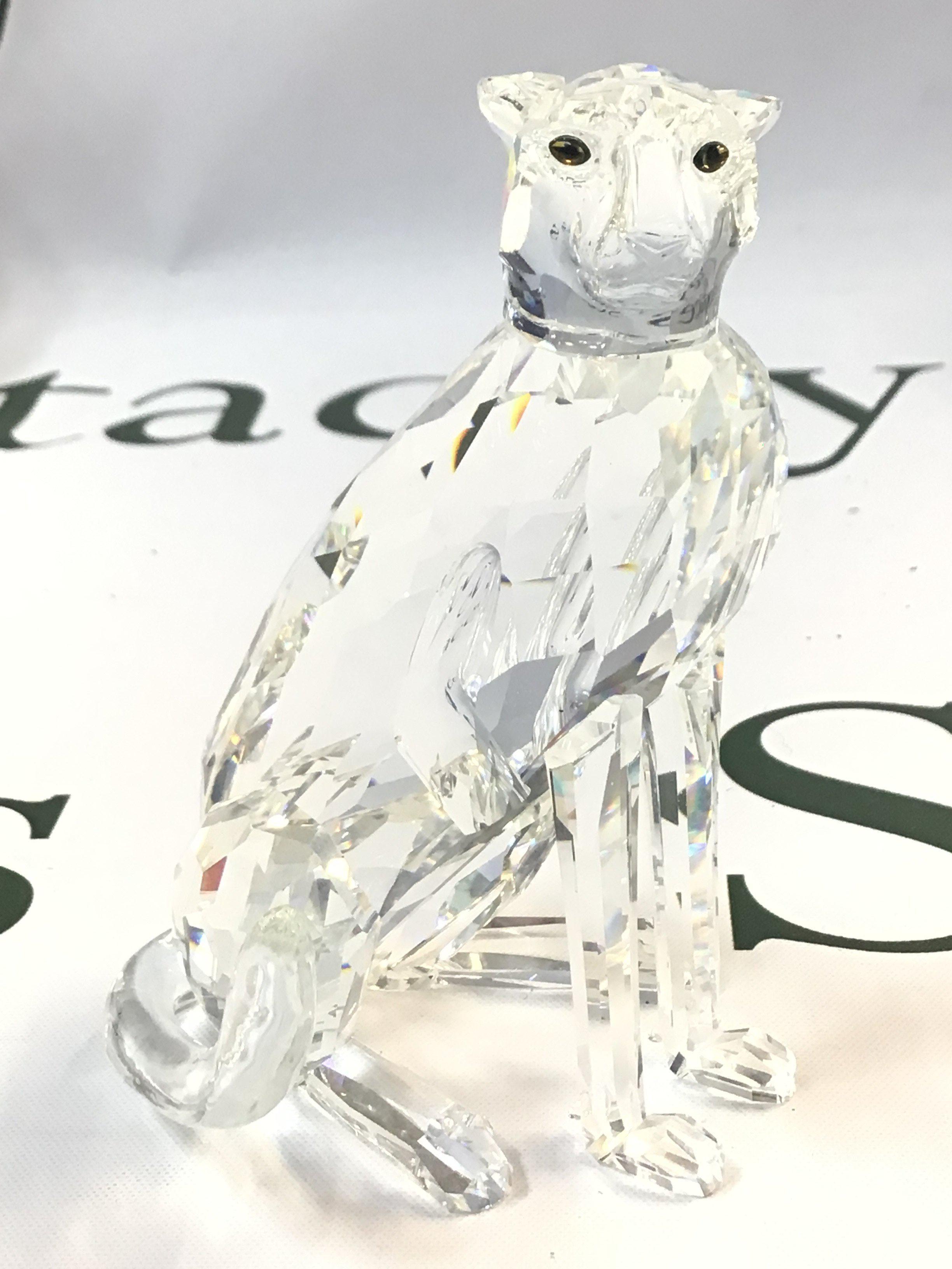 A boxed Swarovski Crystal Cheetah figure, 9cm tall. No obvious damage or restoration. Postage category B