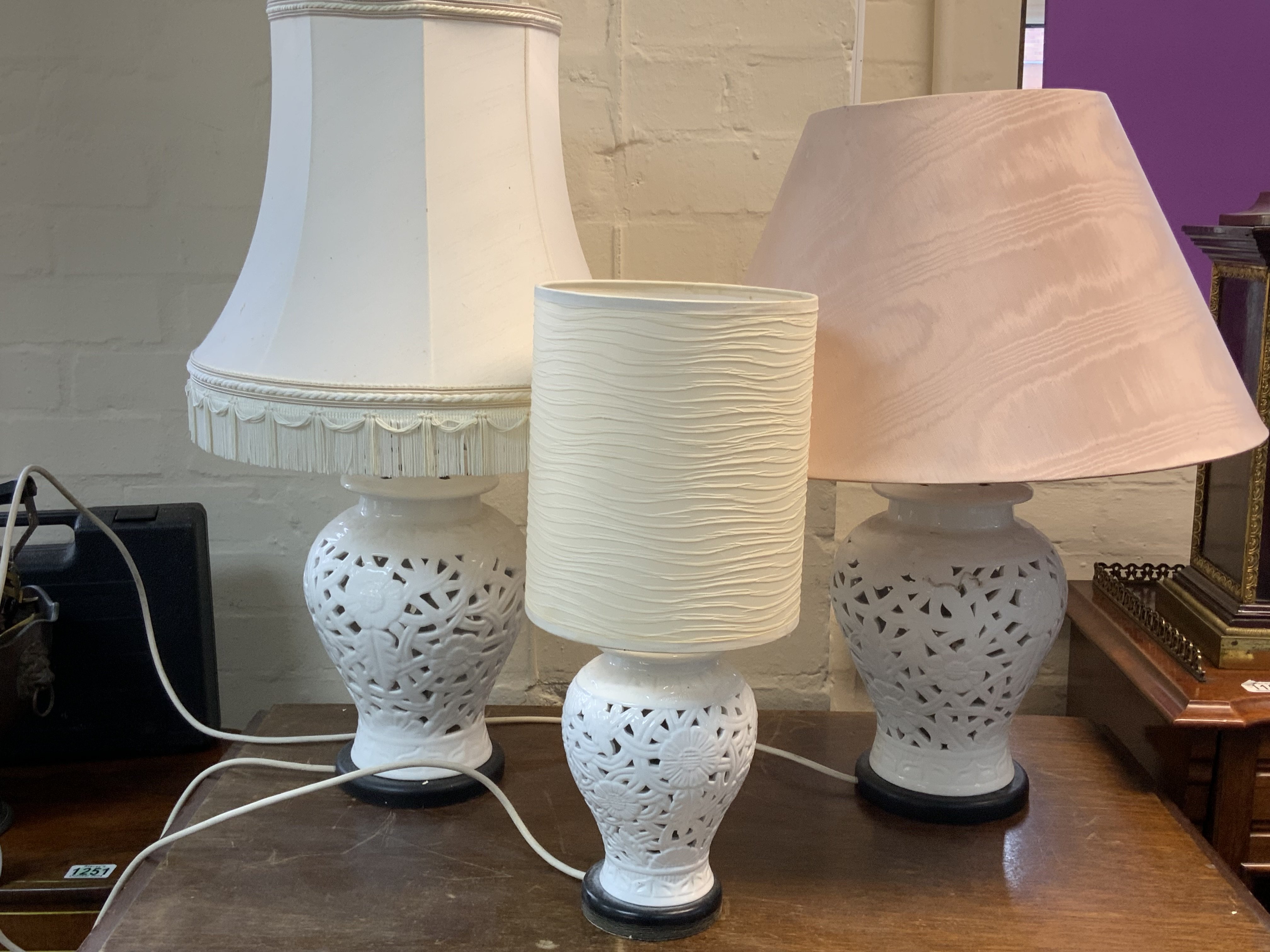 3 Modern graduated ceramic lamps. (D)Condition Report