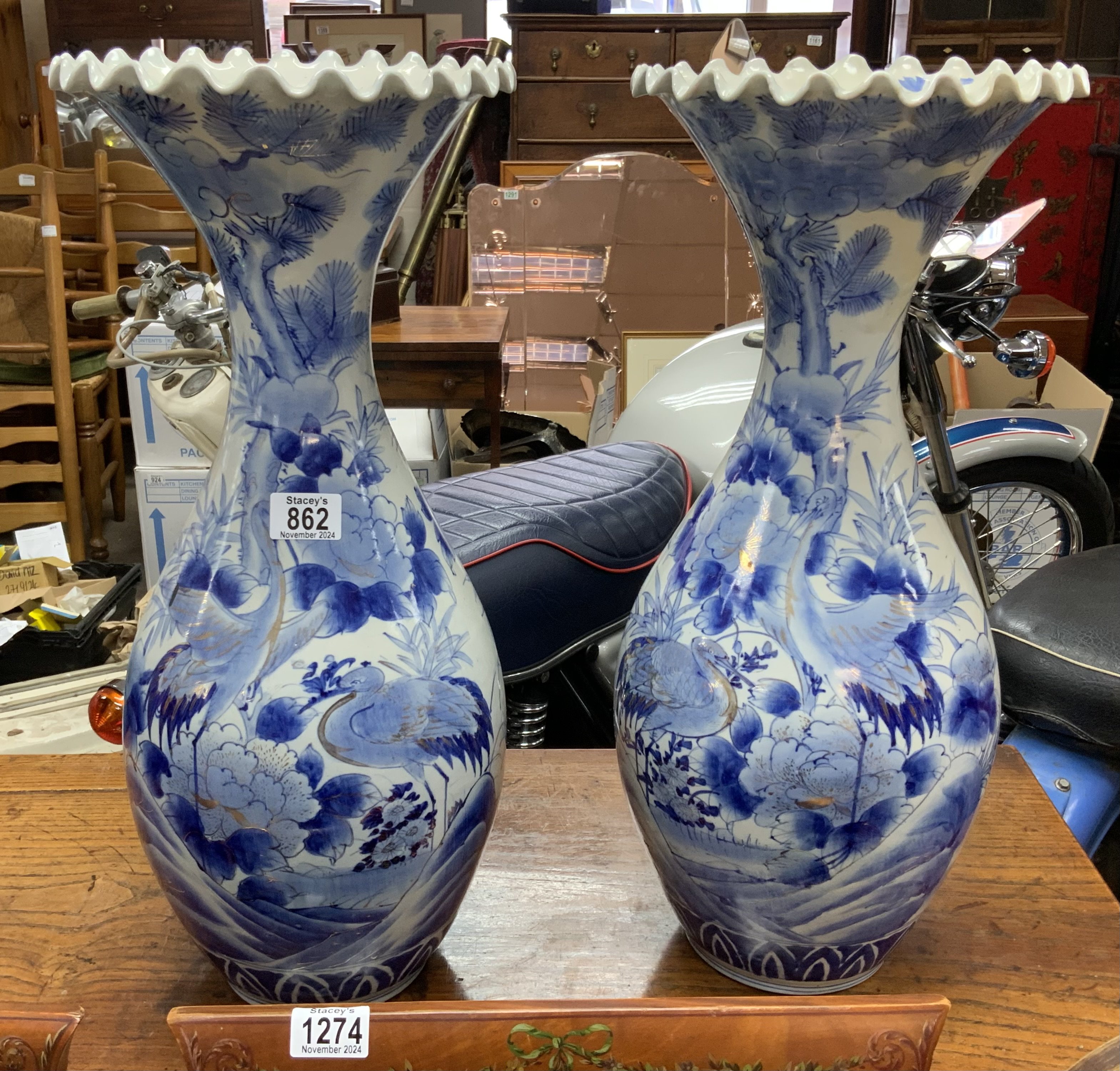A pair of Japanese fluted blue and white porcelain vases (D)