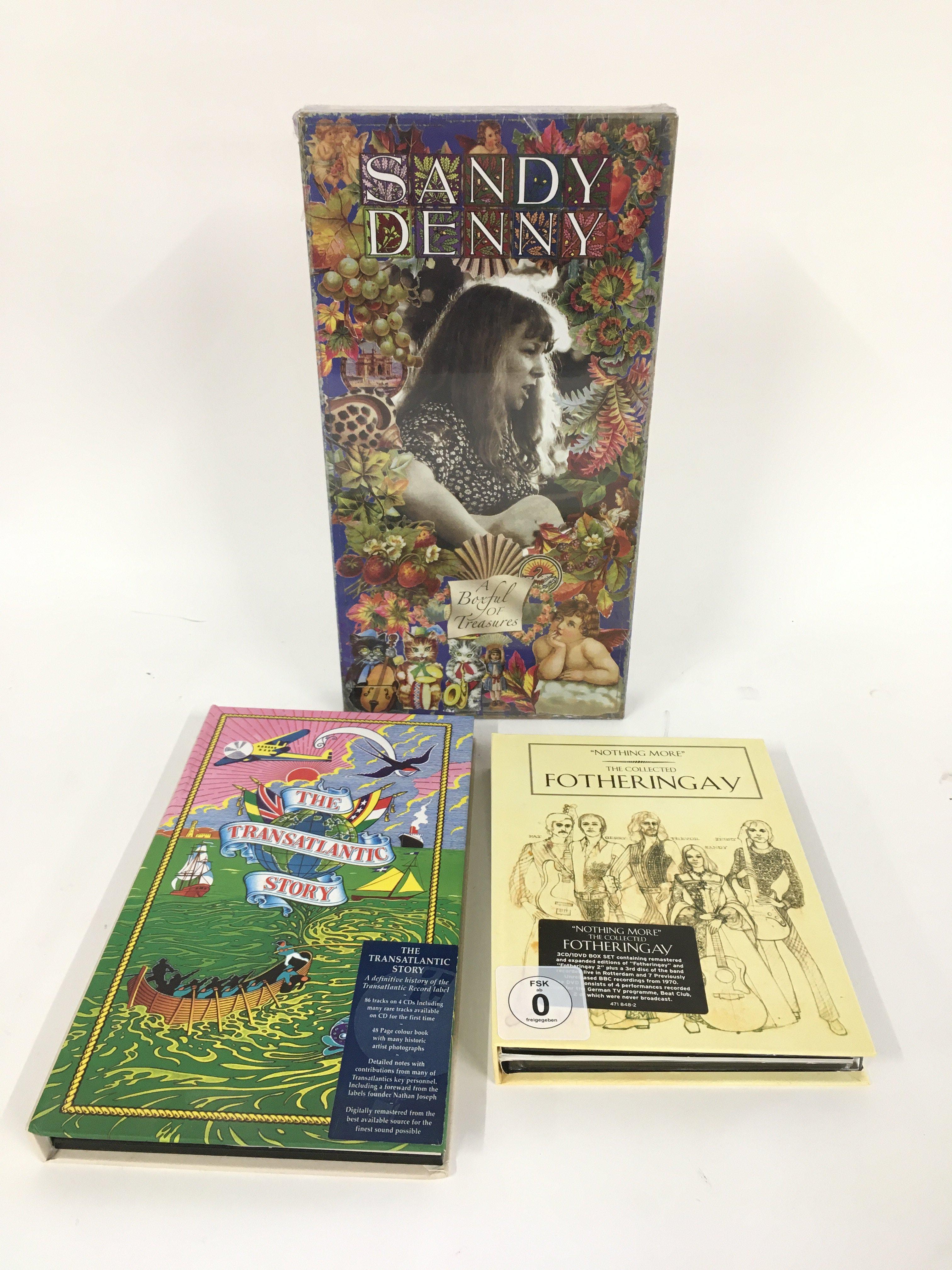 Three CD box sets comprising a sealed Sandy Denny 'A Boxful Of Treasures', Fotheringay 'Nothing More' and 'The Transatlantic Story'.