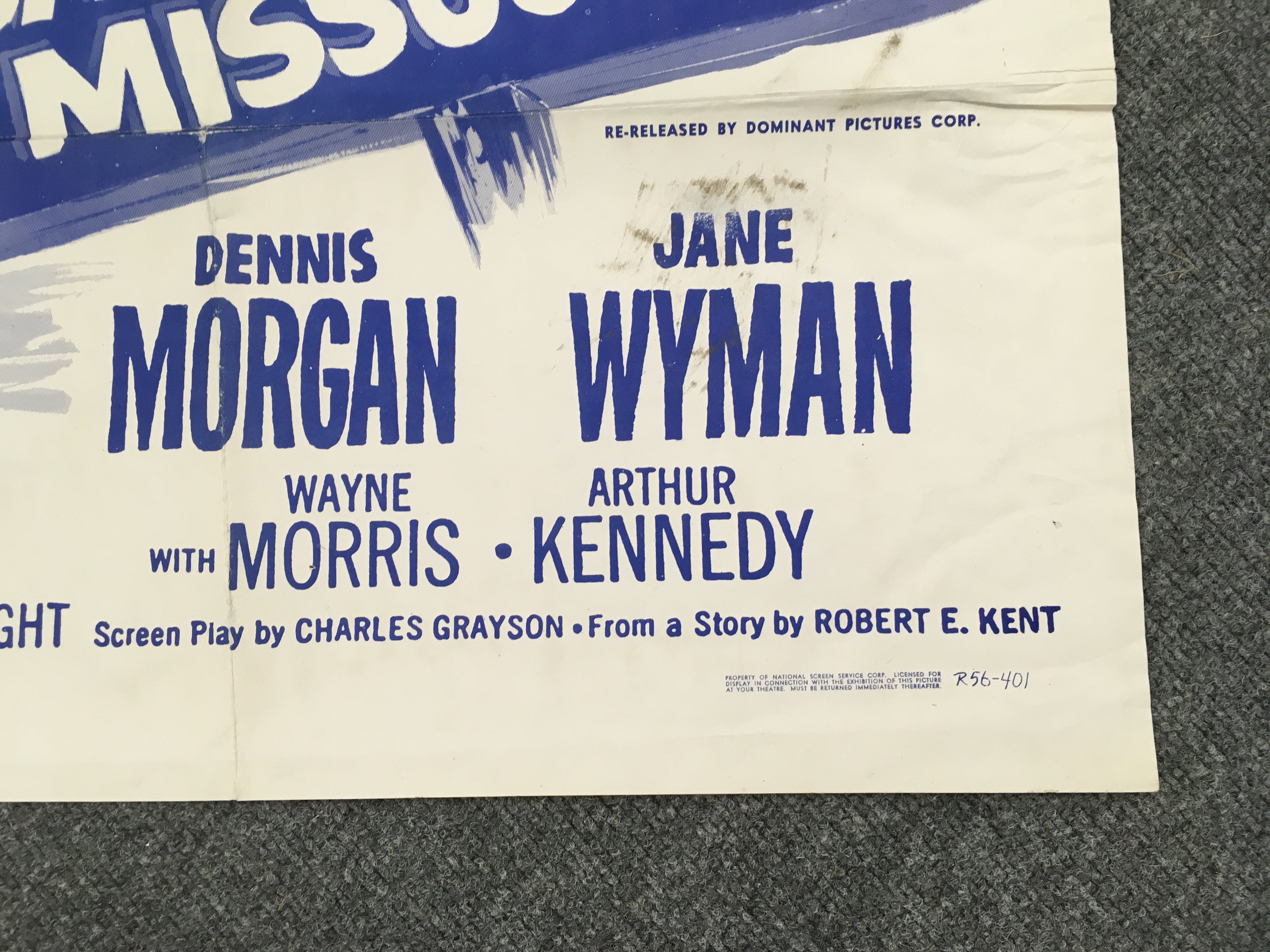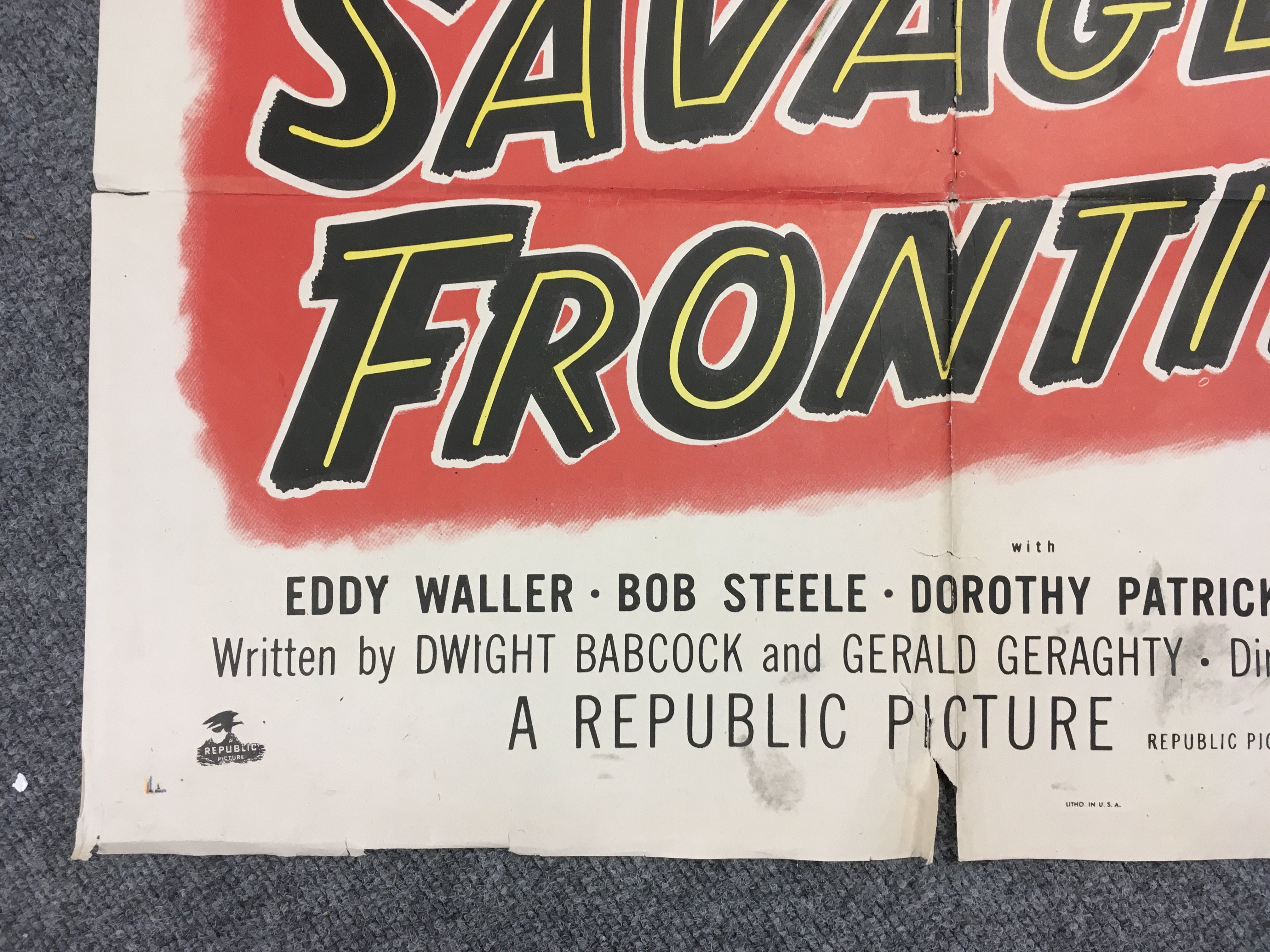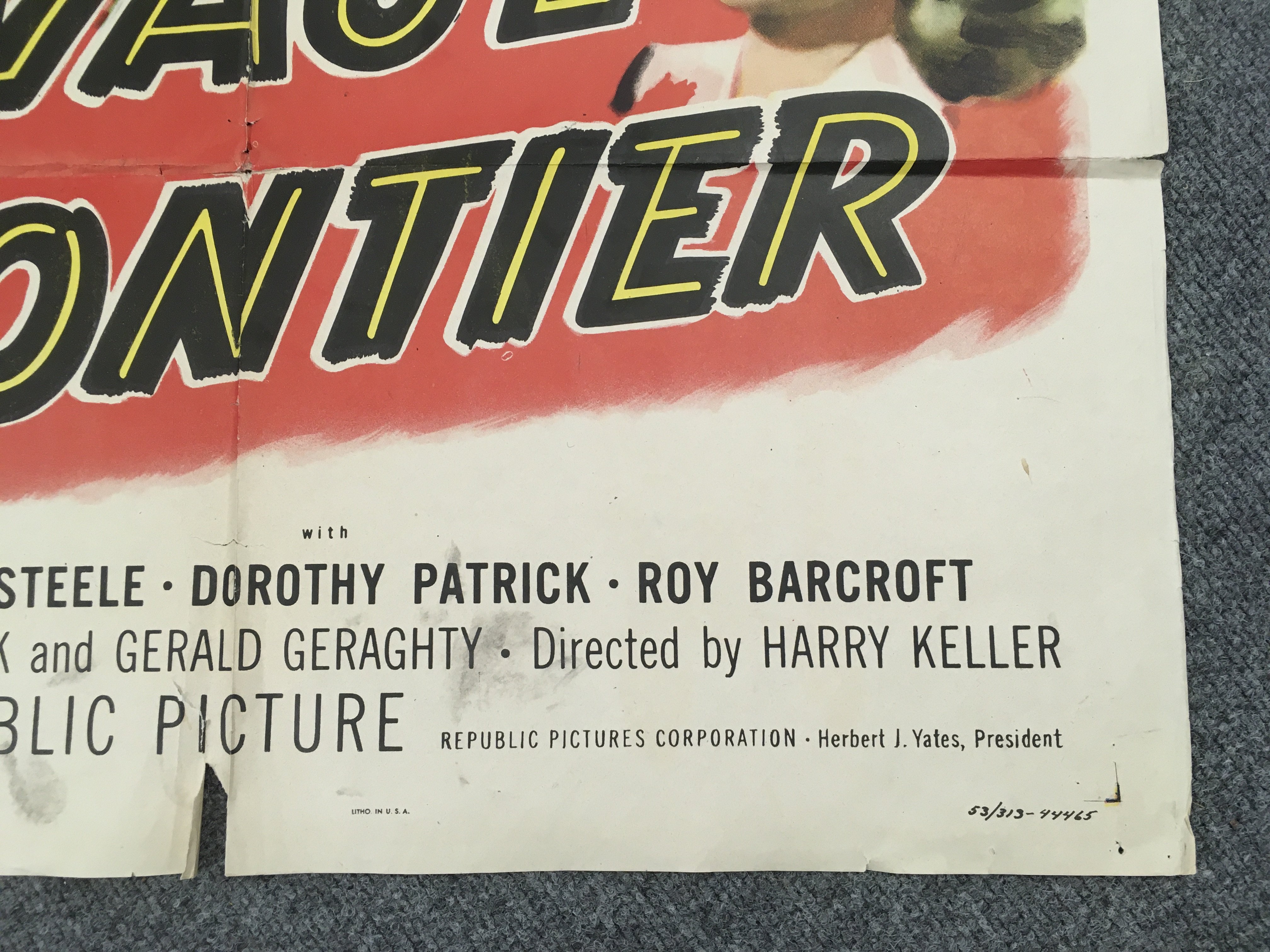 Four movie posters comprising Force Of Arms approx 68cm x 104cm, Bad Men Of Missouri approx 68cm x 103cm, Savage Frontier approx 68cm x 104cm and a double feature for Hell Below Zero and Cockleshell Heroes approx 101cm x 76cm. All folded. Various condition issues.