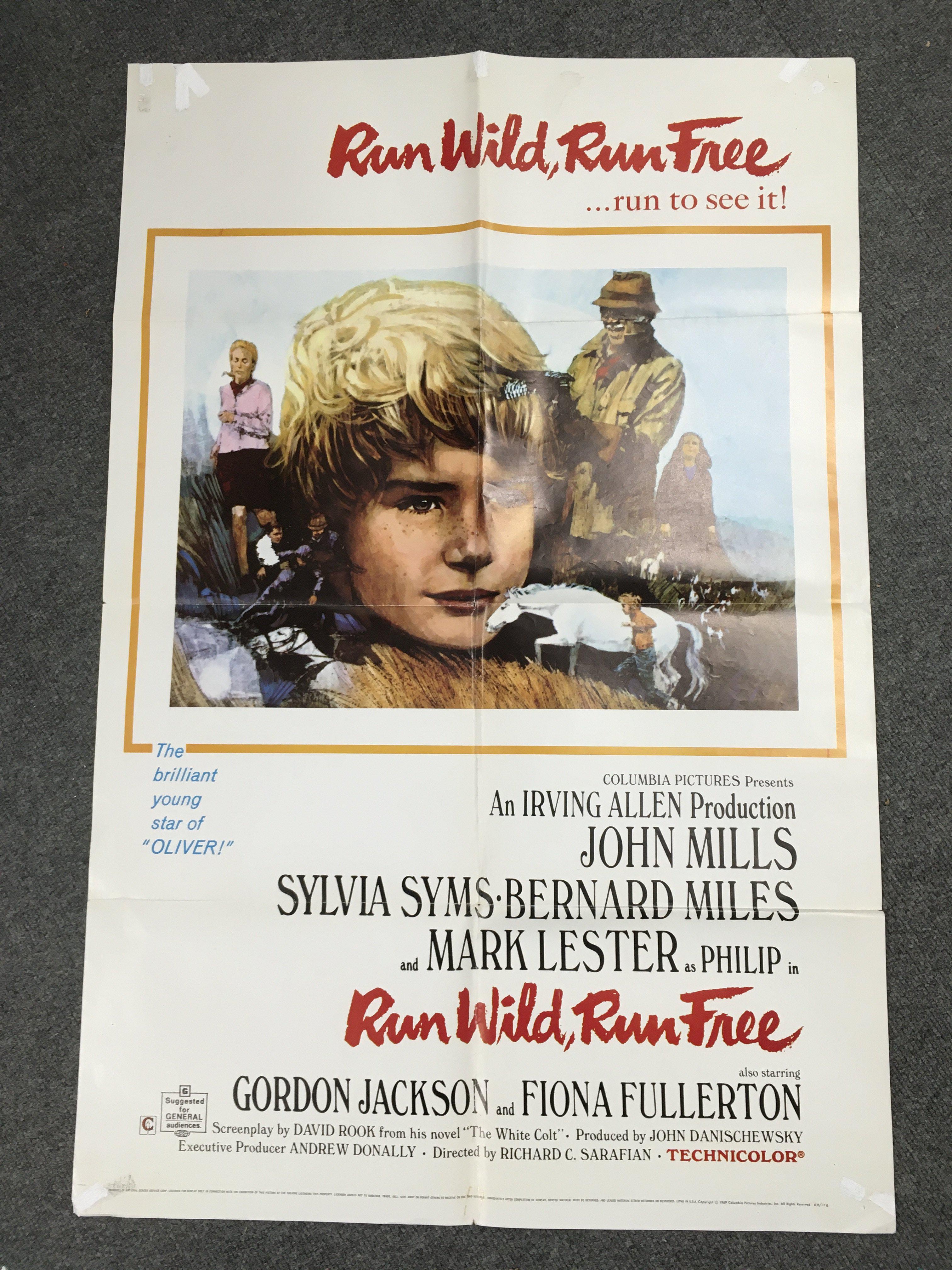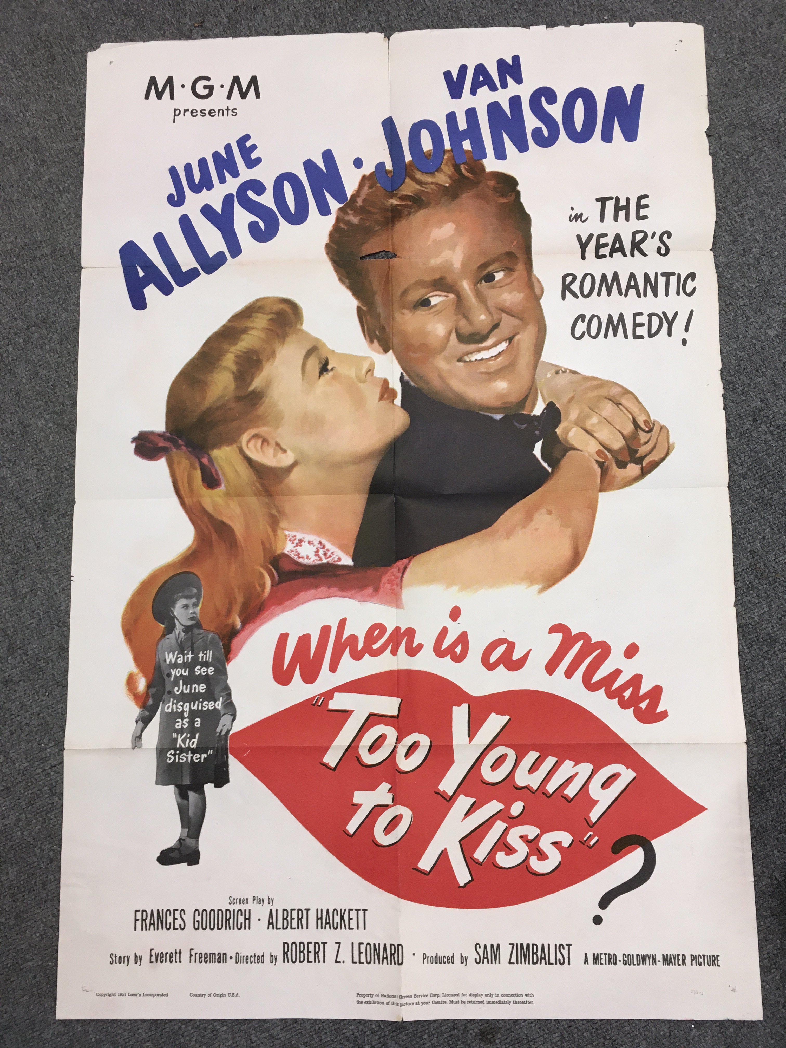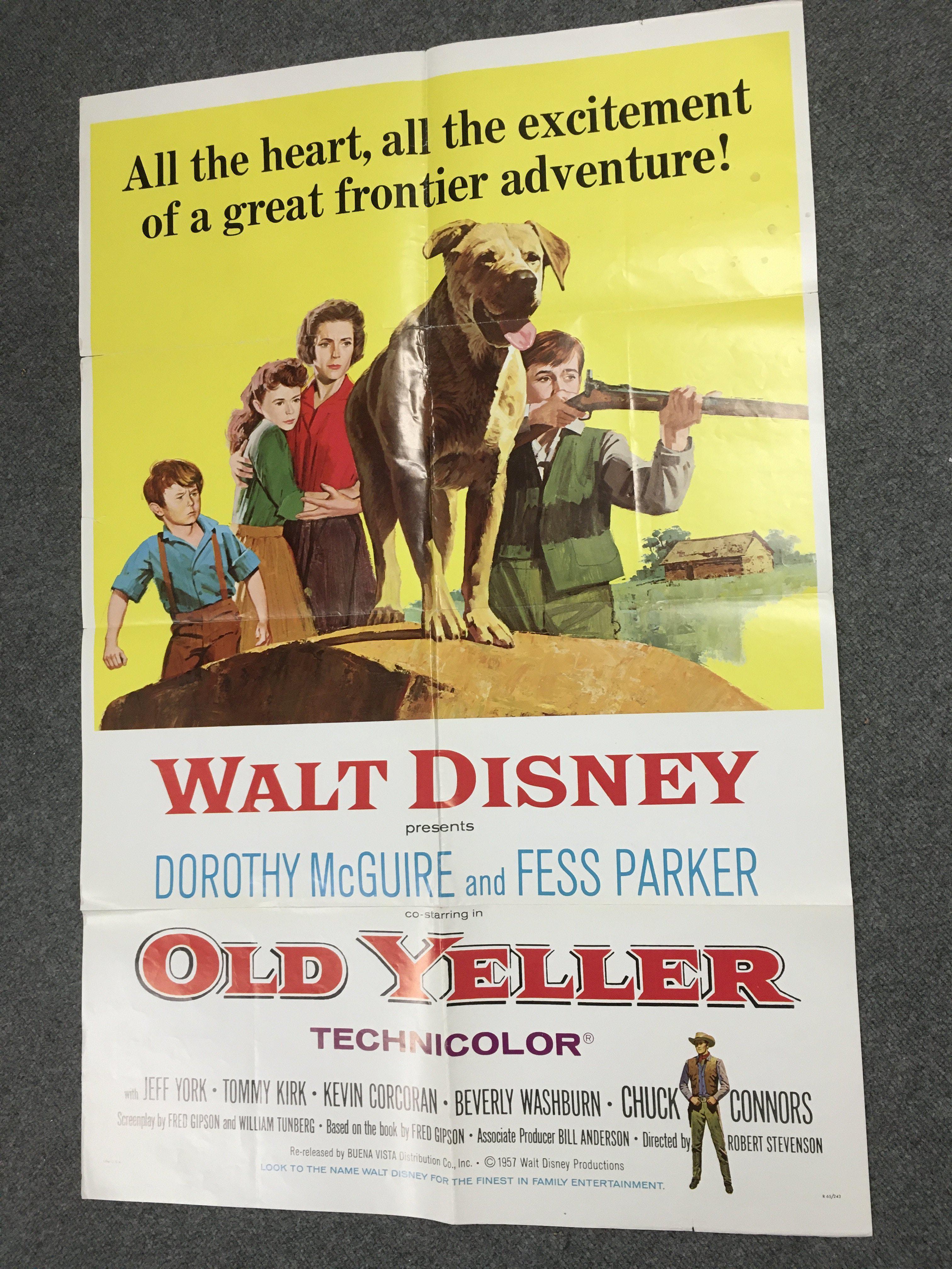 Seven film posters comprising Old Yeller, Run Wild Run Free, The Sheep Has 5 Legs, Susie Steps Out, Bundle Of Joy, Too Young To Kiss and Taffy And The Jungle Hunter. All folded with various condition issues.