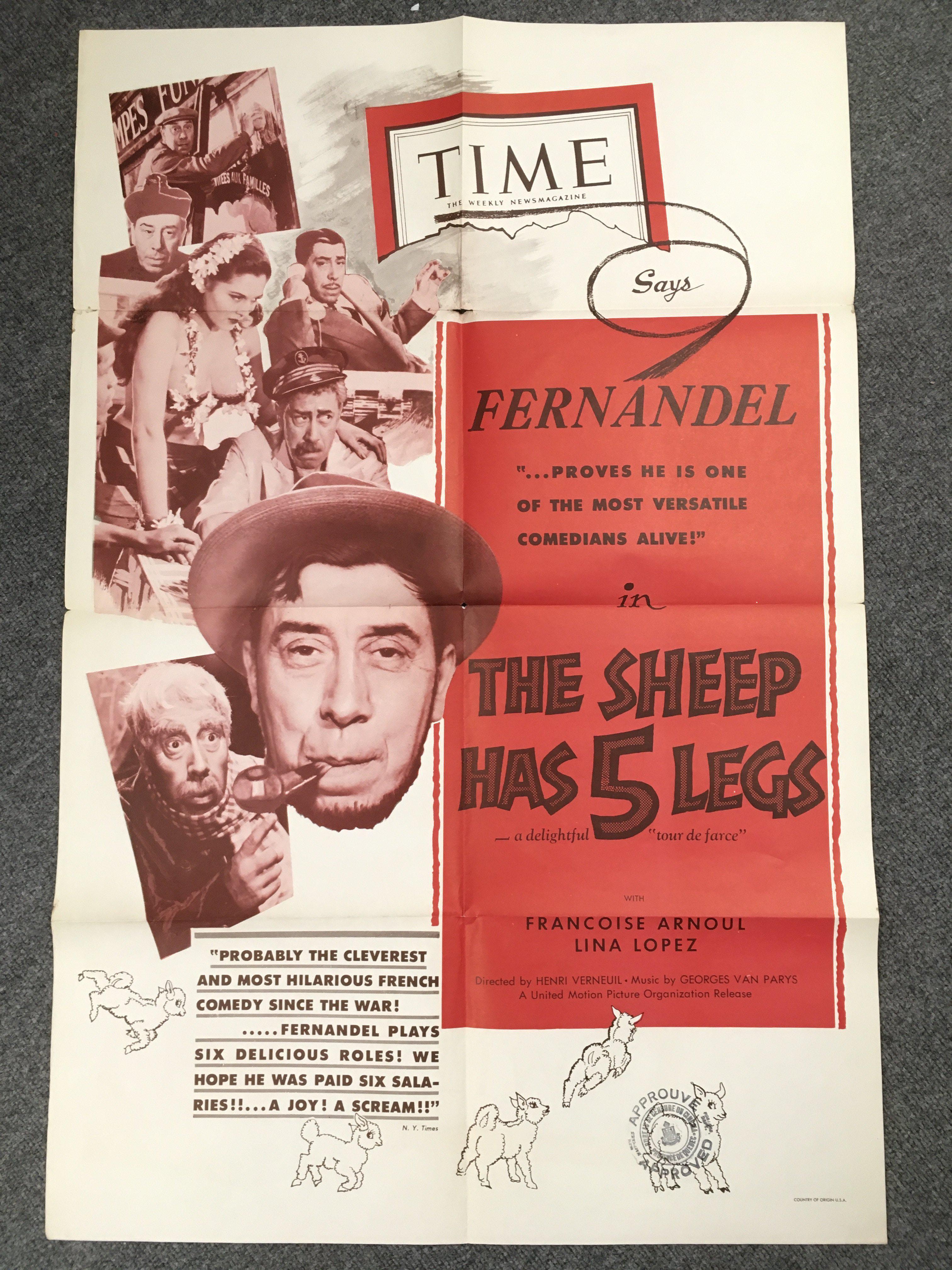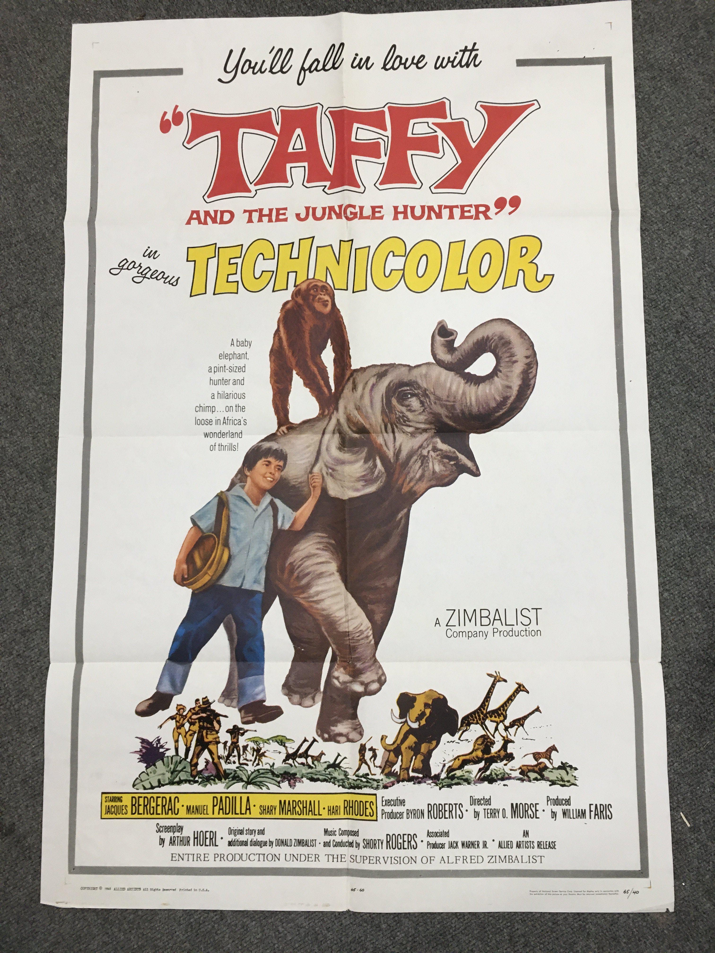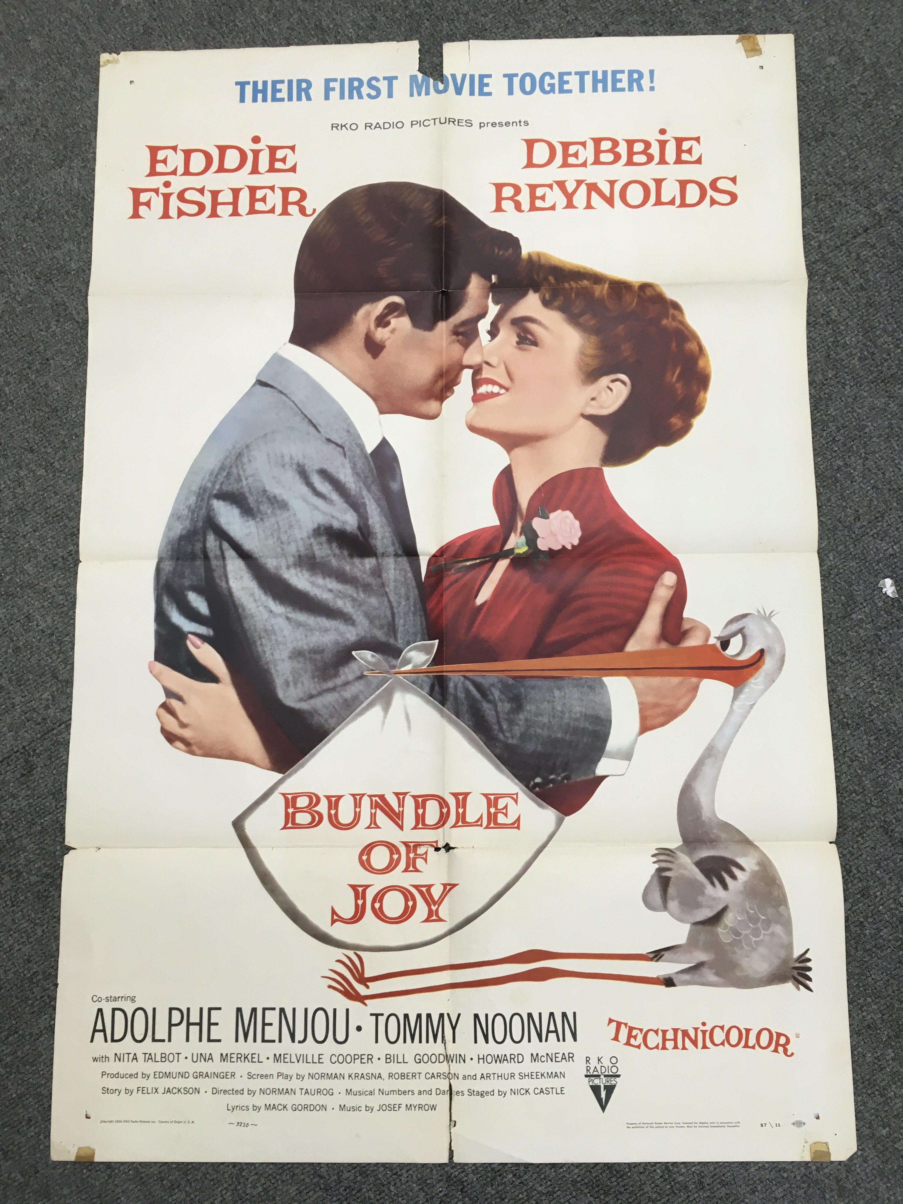 Seven film posters comprising Old Yeller, Run Wild Run Free, The Sheep Has 5 Legs, Susie Steps Out, Bundle Of Joy, Too Young To Kiss and Taffy And The Jungle Hunter. All folded with various condition issues.
