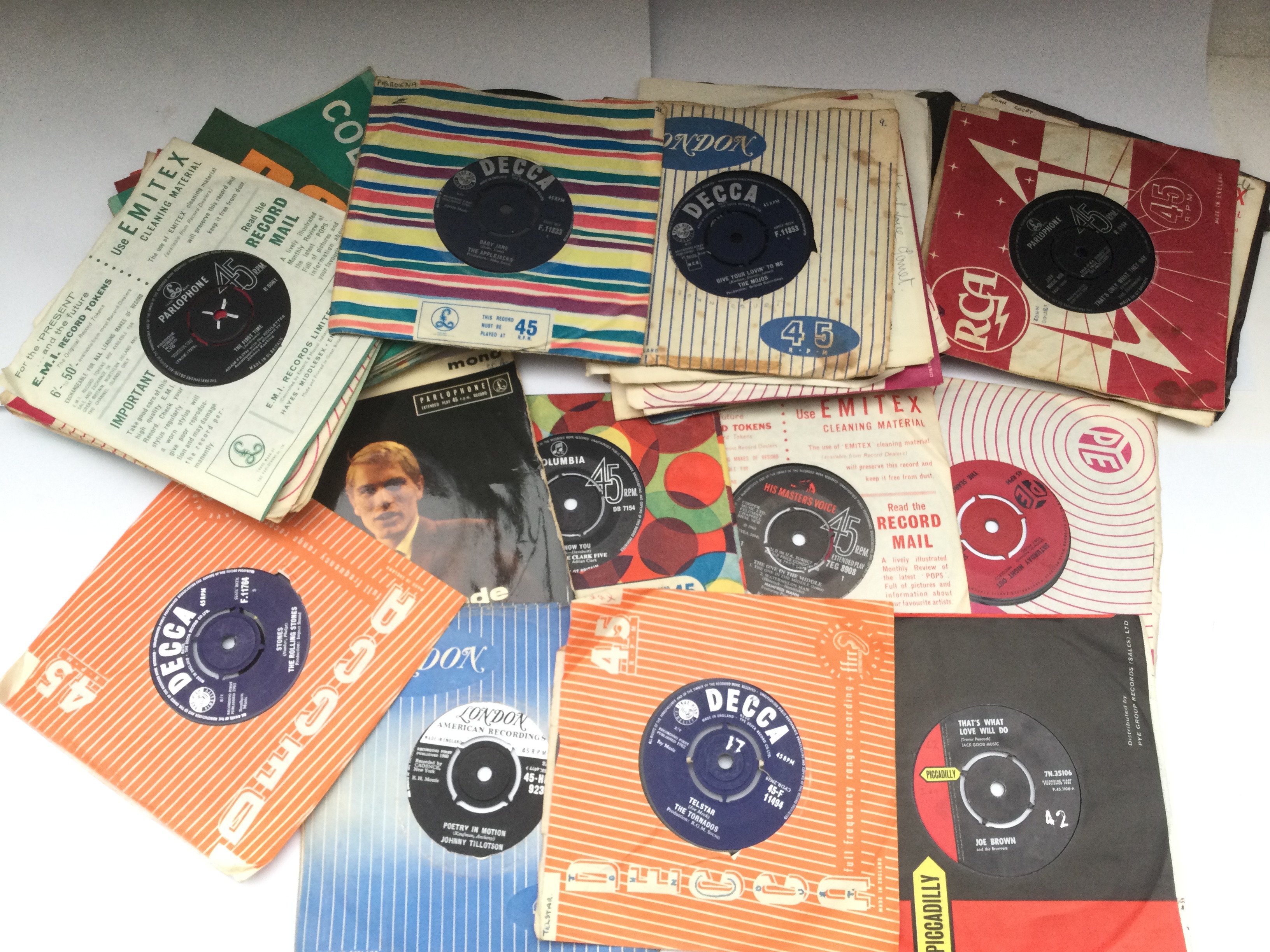 A collection of mainly 1960s beat group 7inch singles and EPs by various artists including a misprinted Rolling Stones single for 'I Wanna Be Your Man' b/w 'Stones' (sic).