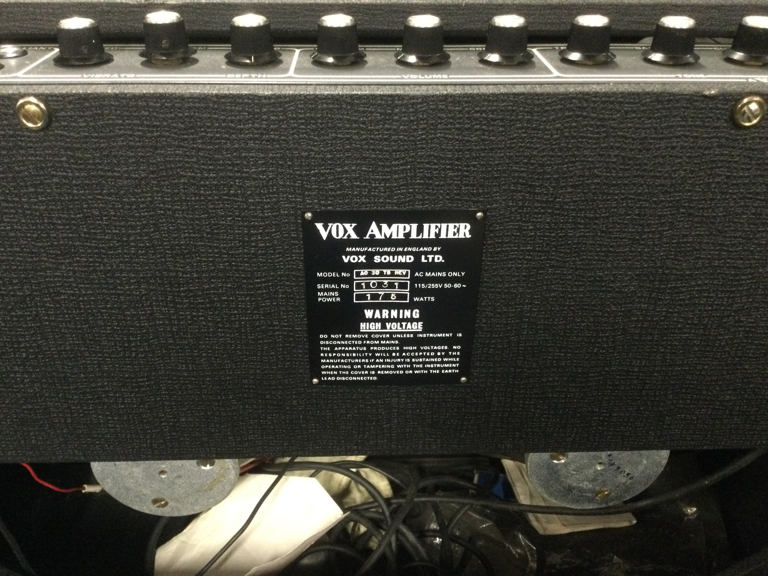 A circa early 1970s Vox AC30 all valve amplifier. Vox Sound Ltd Model. Tested and working