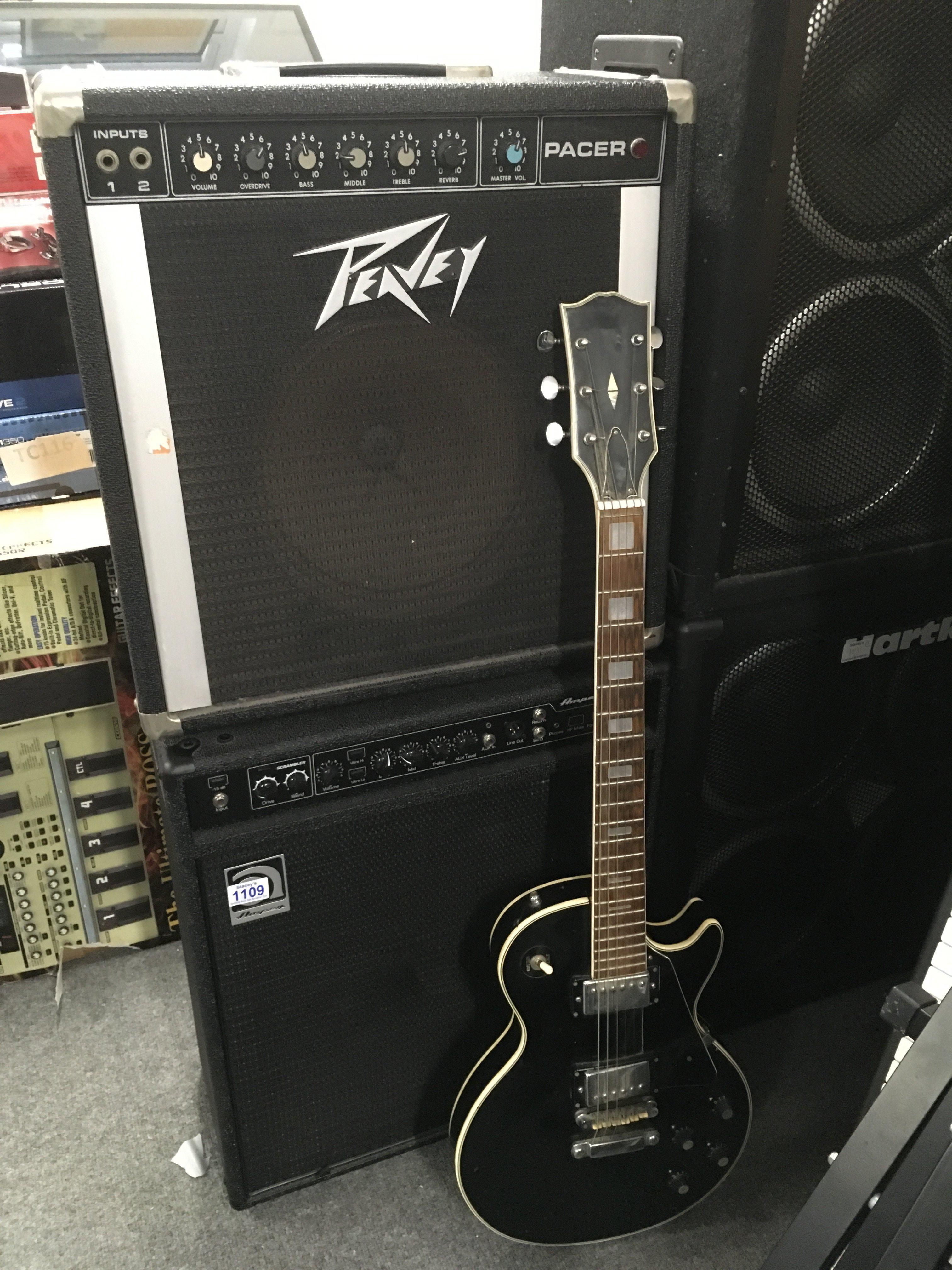 A Japanese made Custom style electric guitar and a Peavey Pacer amplifier (2).