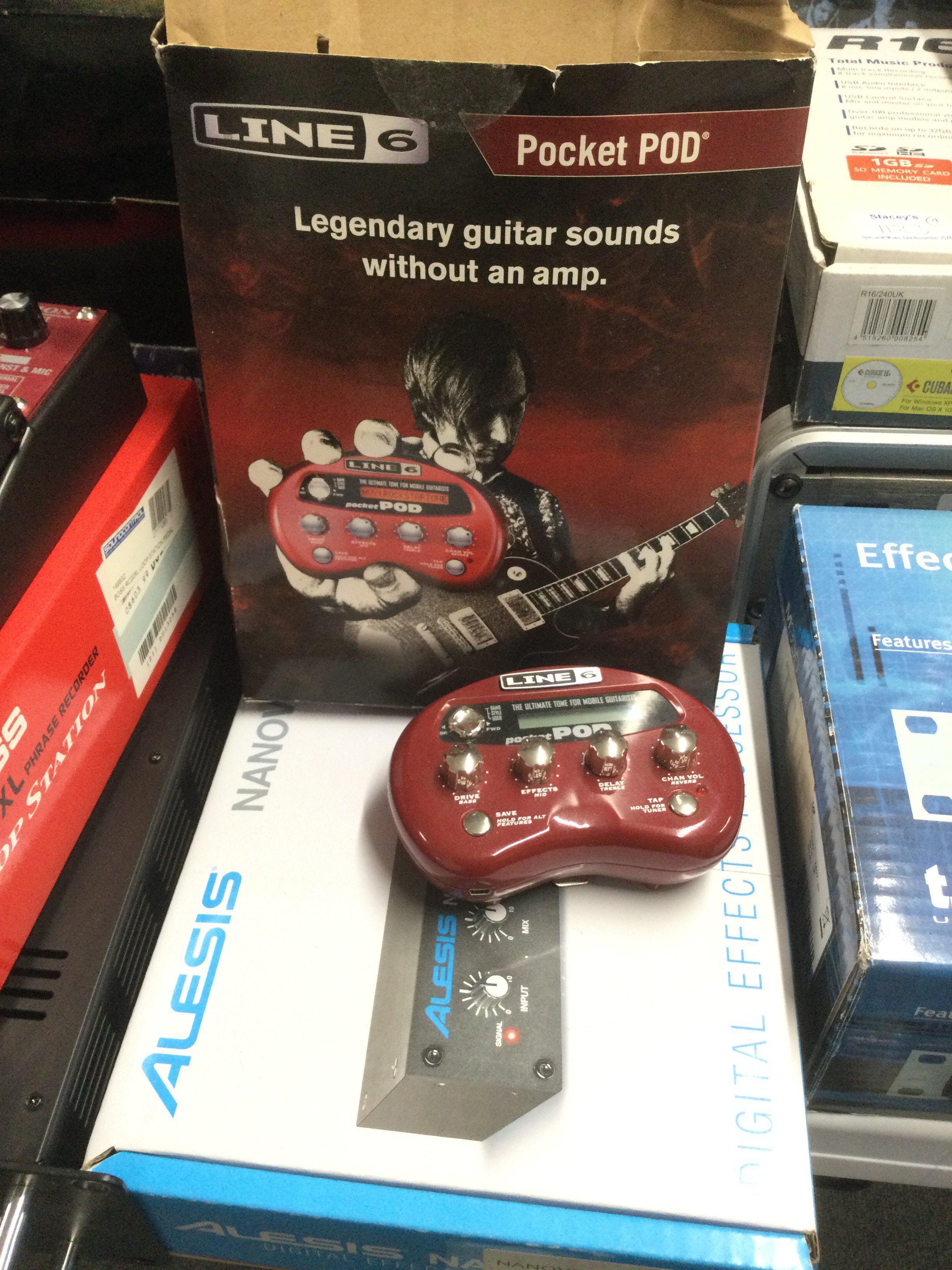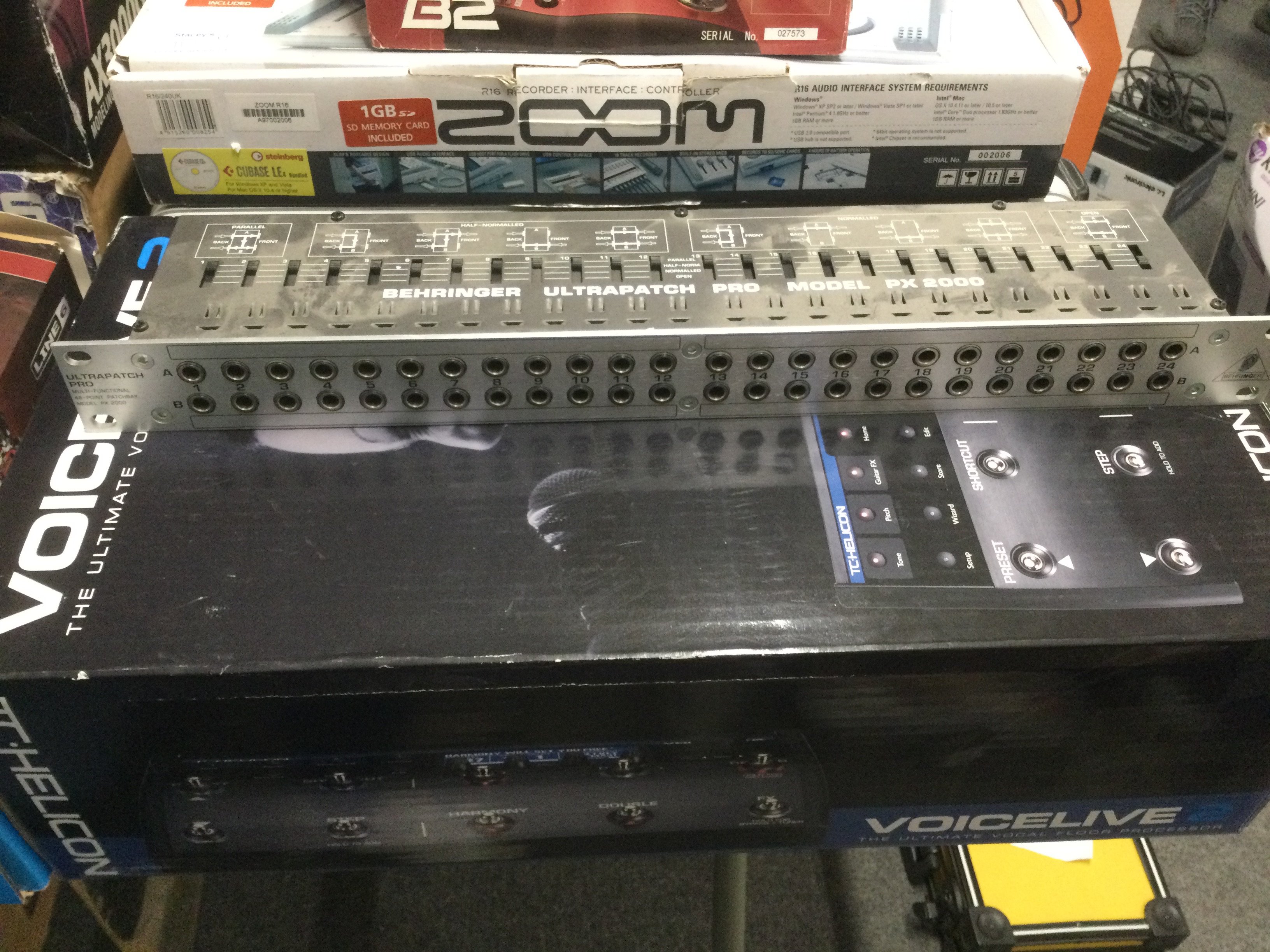 Three boxed effects units comprising a Voicelive 2,, a Line 6 pocket pod and an Alesis Nanoverb 2 plus a Behringer pro ultrapatch model PX2000 (4).