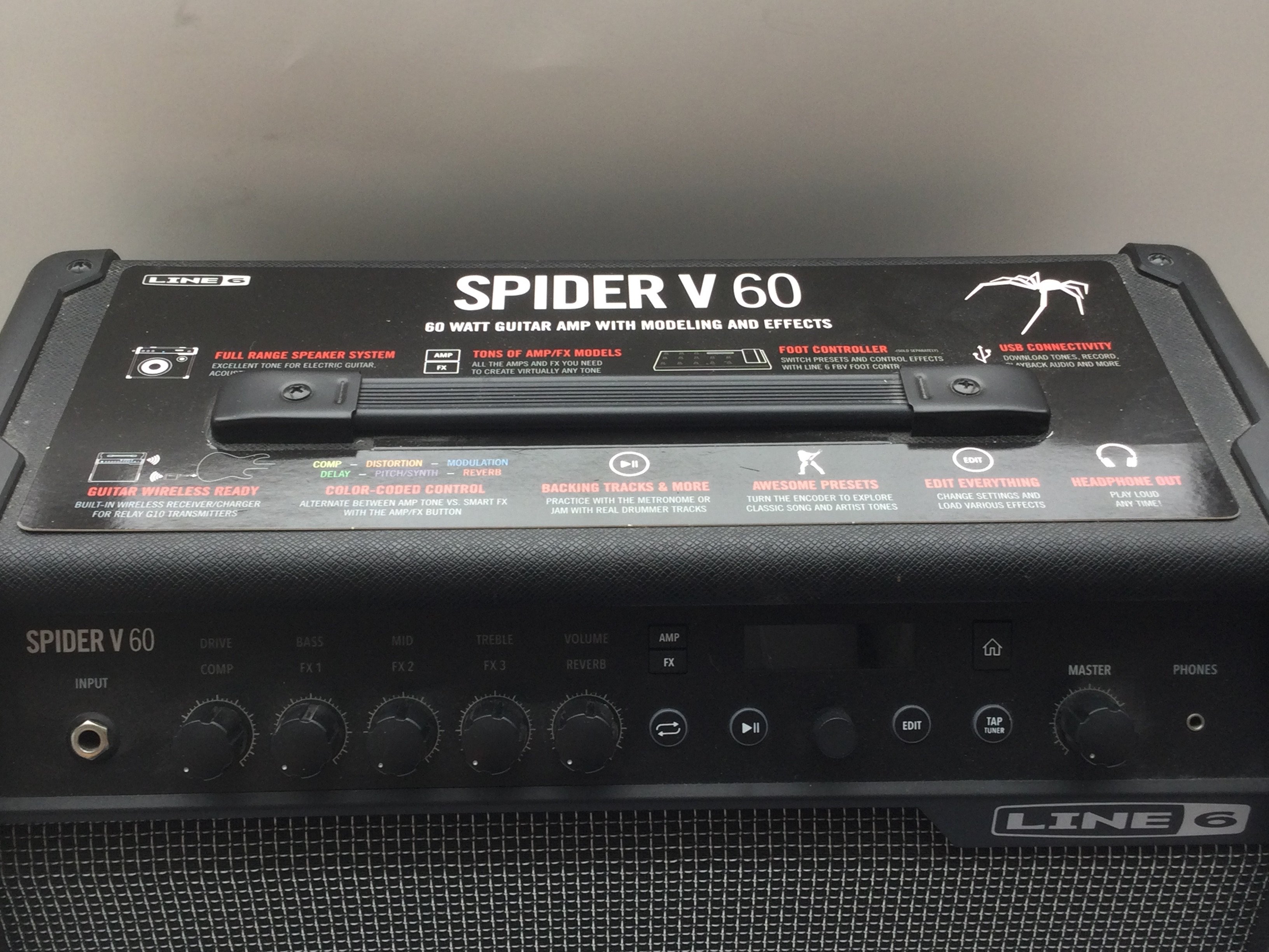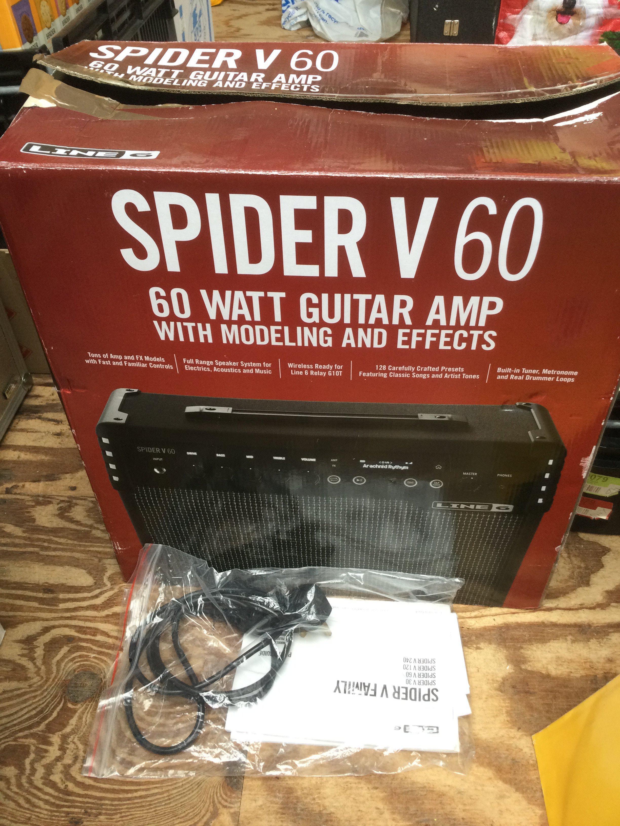 A boxed Line 6 Spider V60 guitar amplifier.
