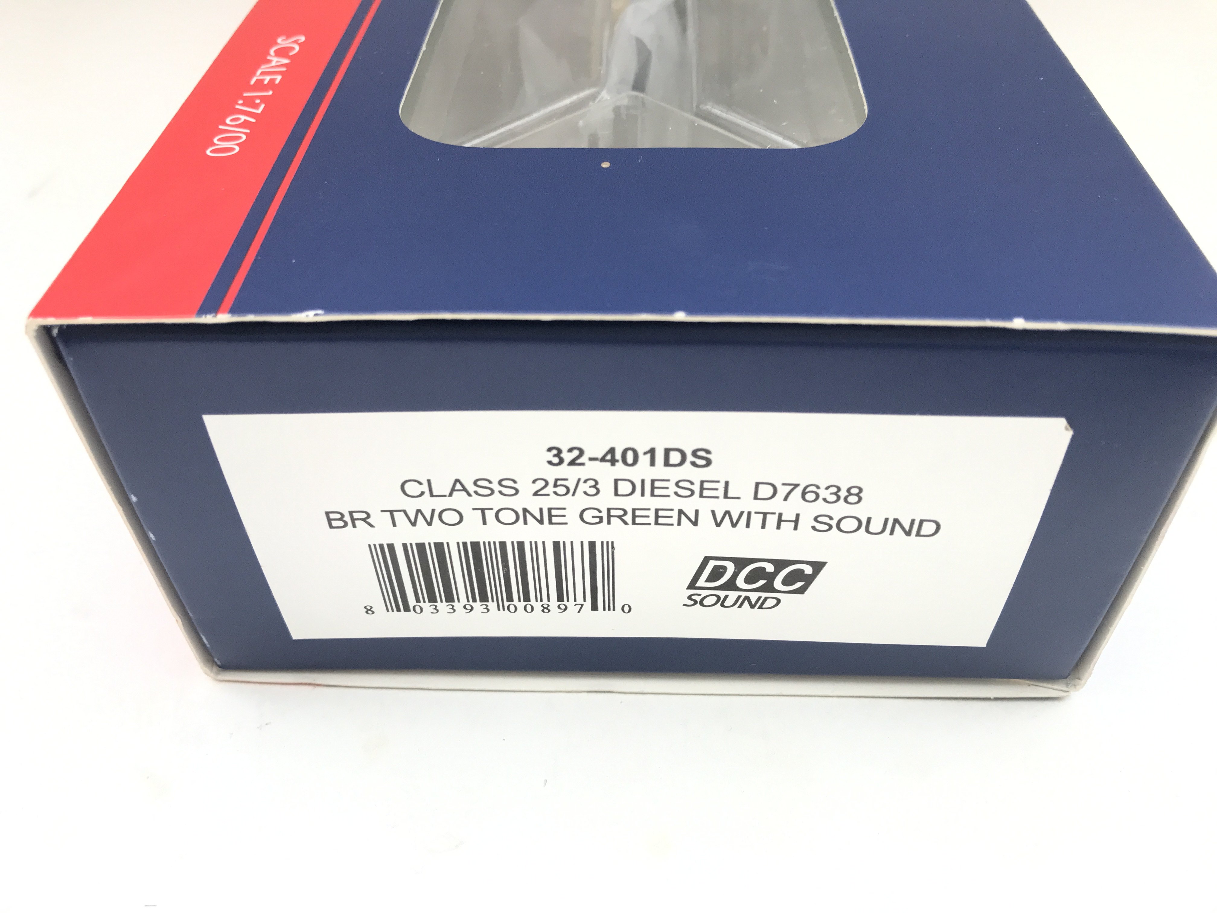A Boxed Bachmann 00 Gauge Class 25/3 Diesel D7638 BR Two Tone Green With Sound #32-401DS.