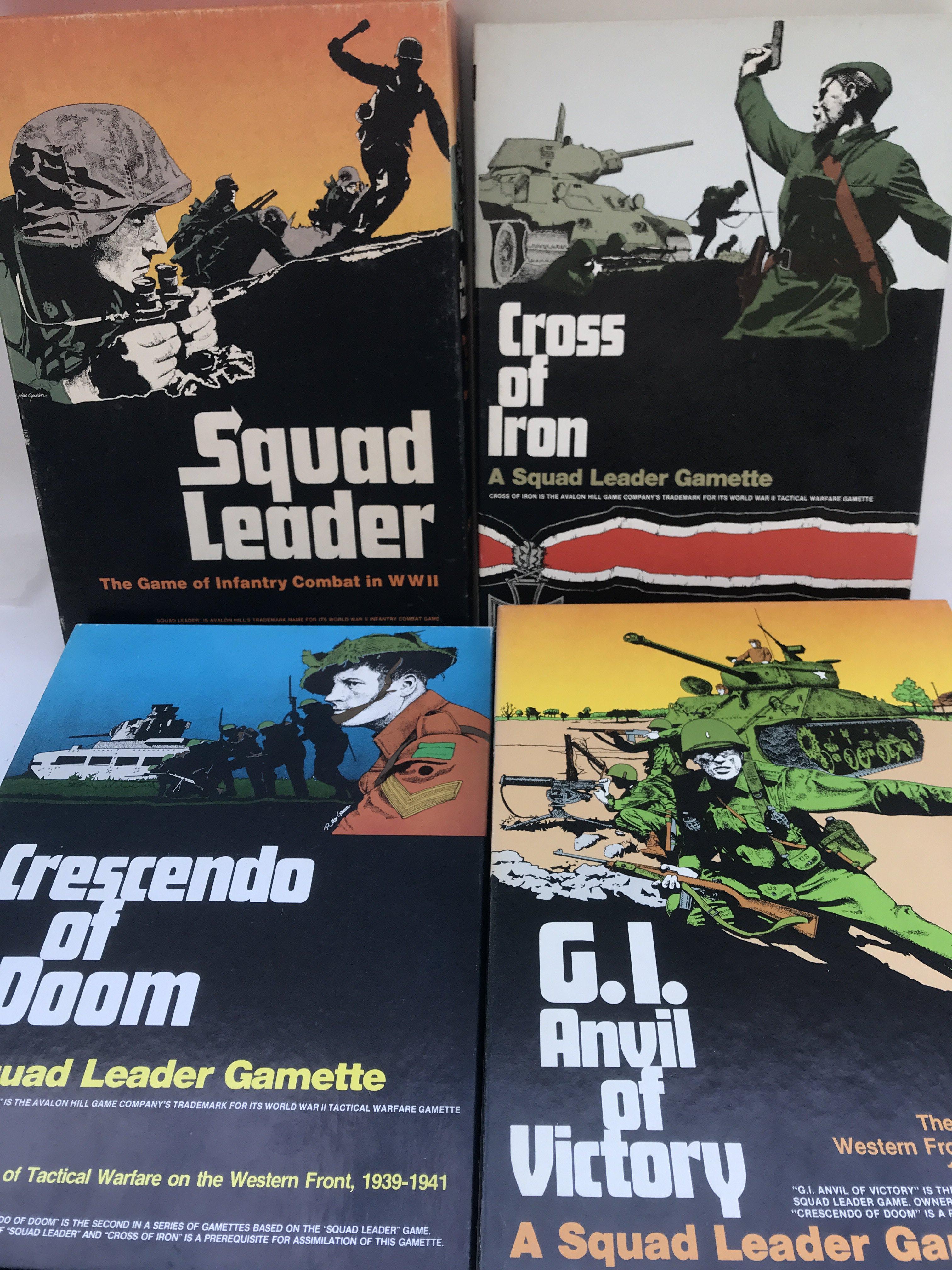 4 Boxed Squad Leader Games. Includes Cross of Iron (un Punched) Crescendo Of Doom (un Punched). G.I Anvil Of Victory(Un Punched) and Squad Leader(partly Punched) (4).
