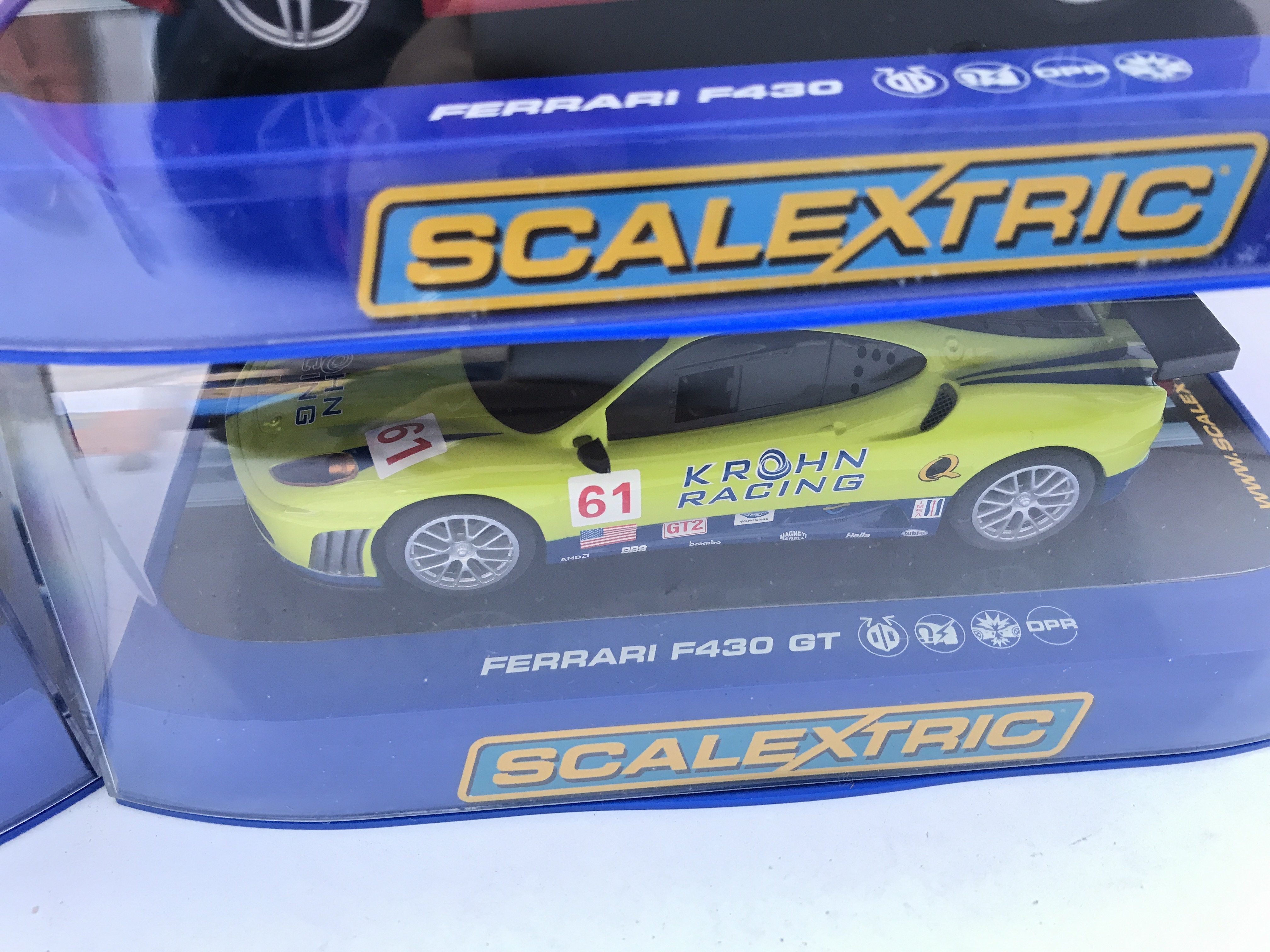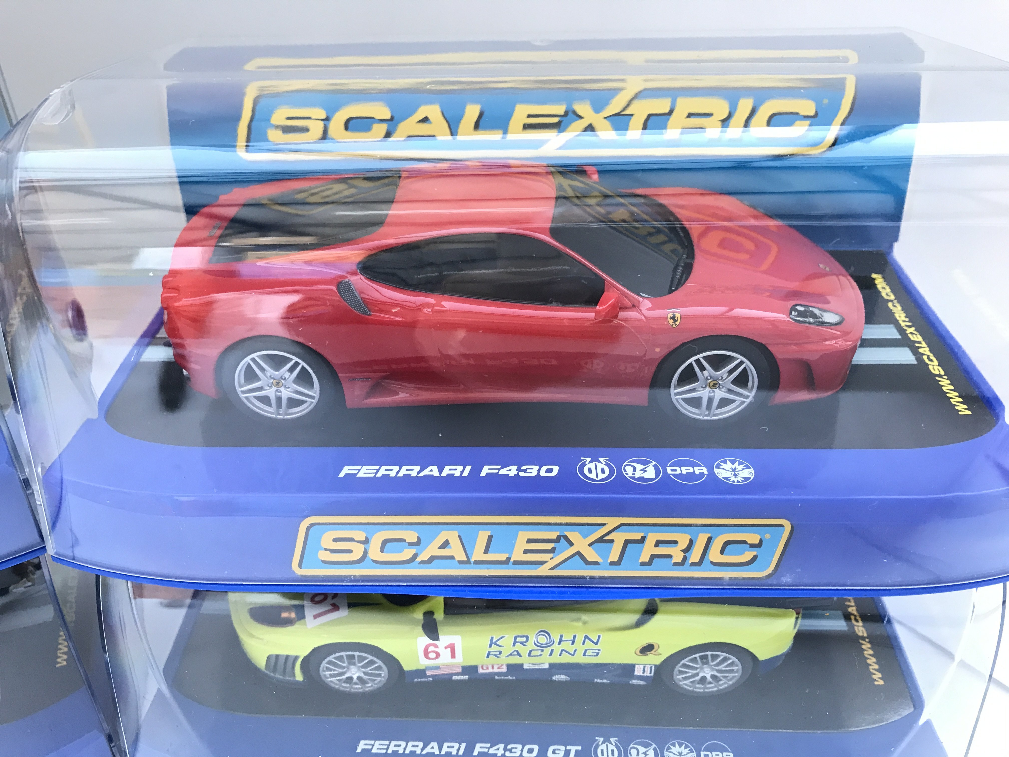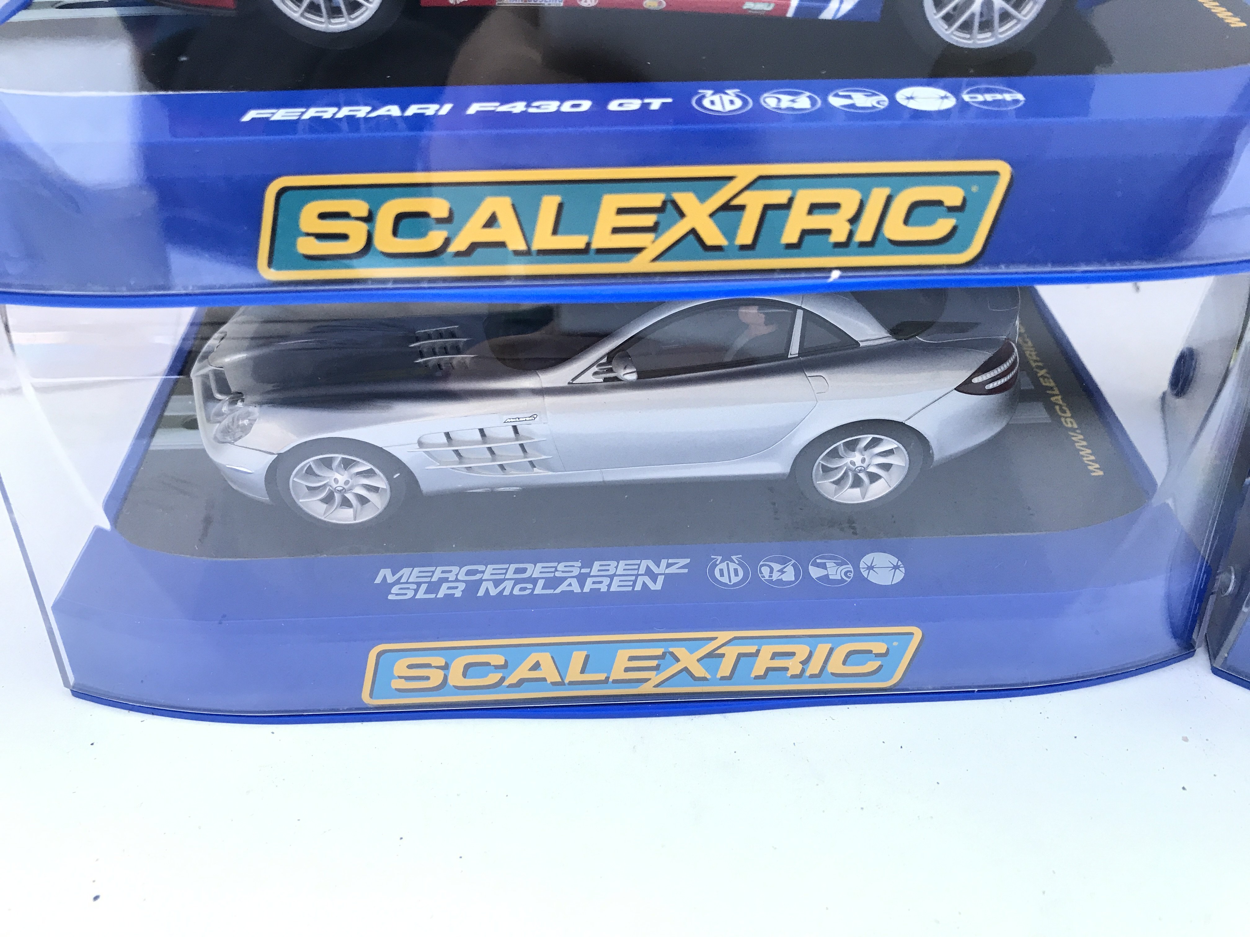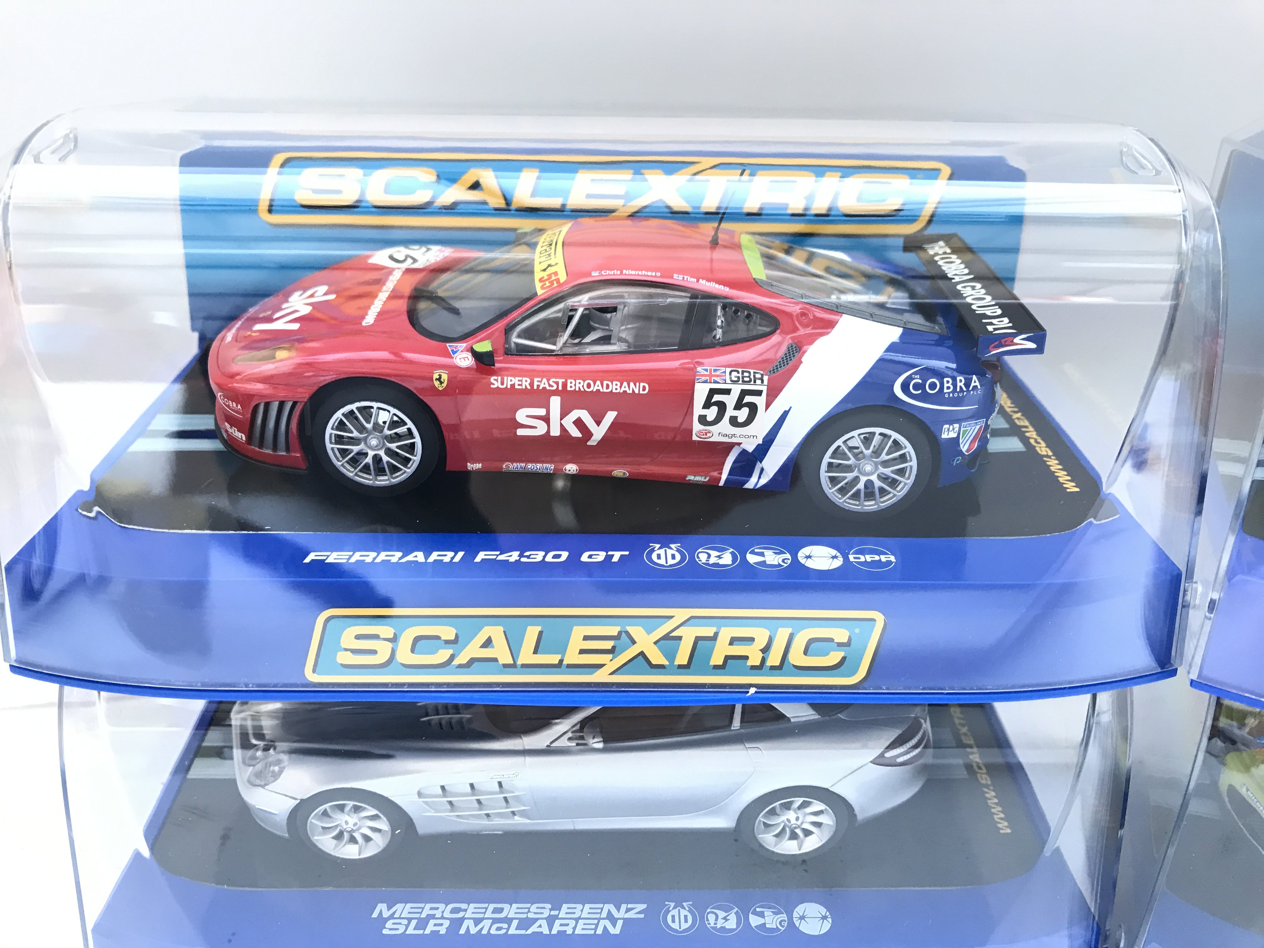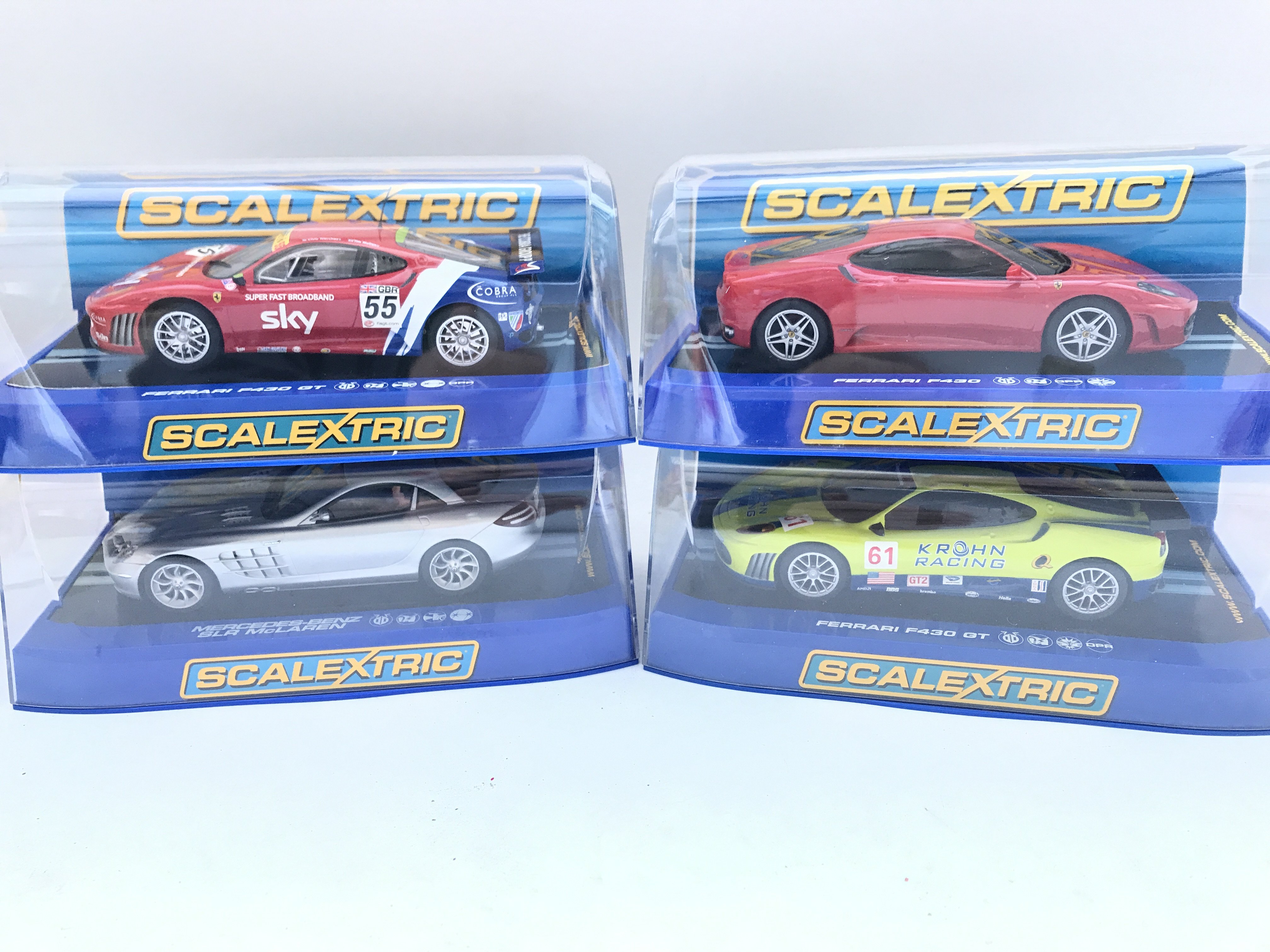 4 X Boxed Scalextric Cars. 2 X Ferrari F430 GT. A Ferrari F430. A Mercedes-Benz SLR McLaren.