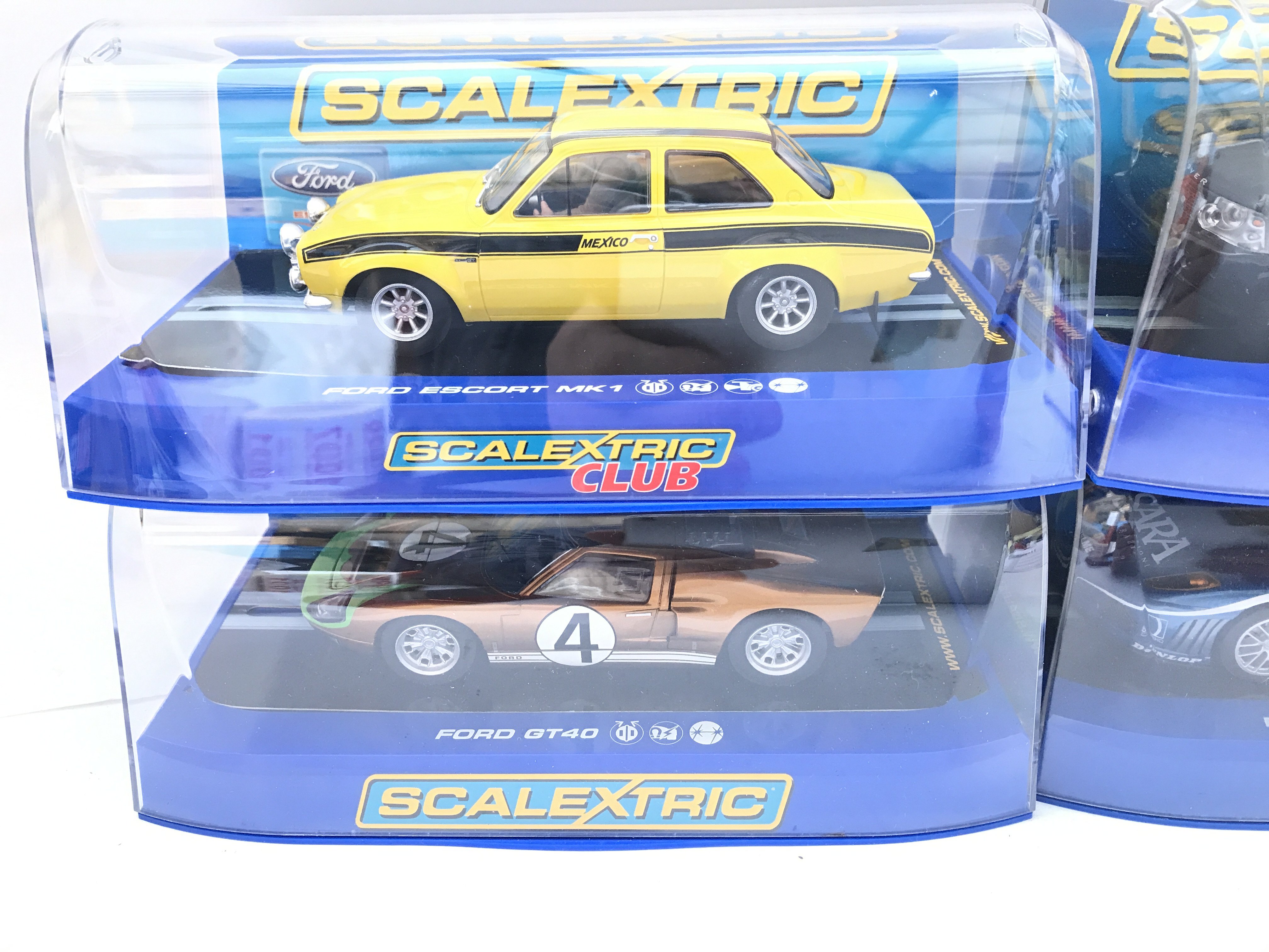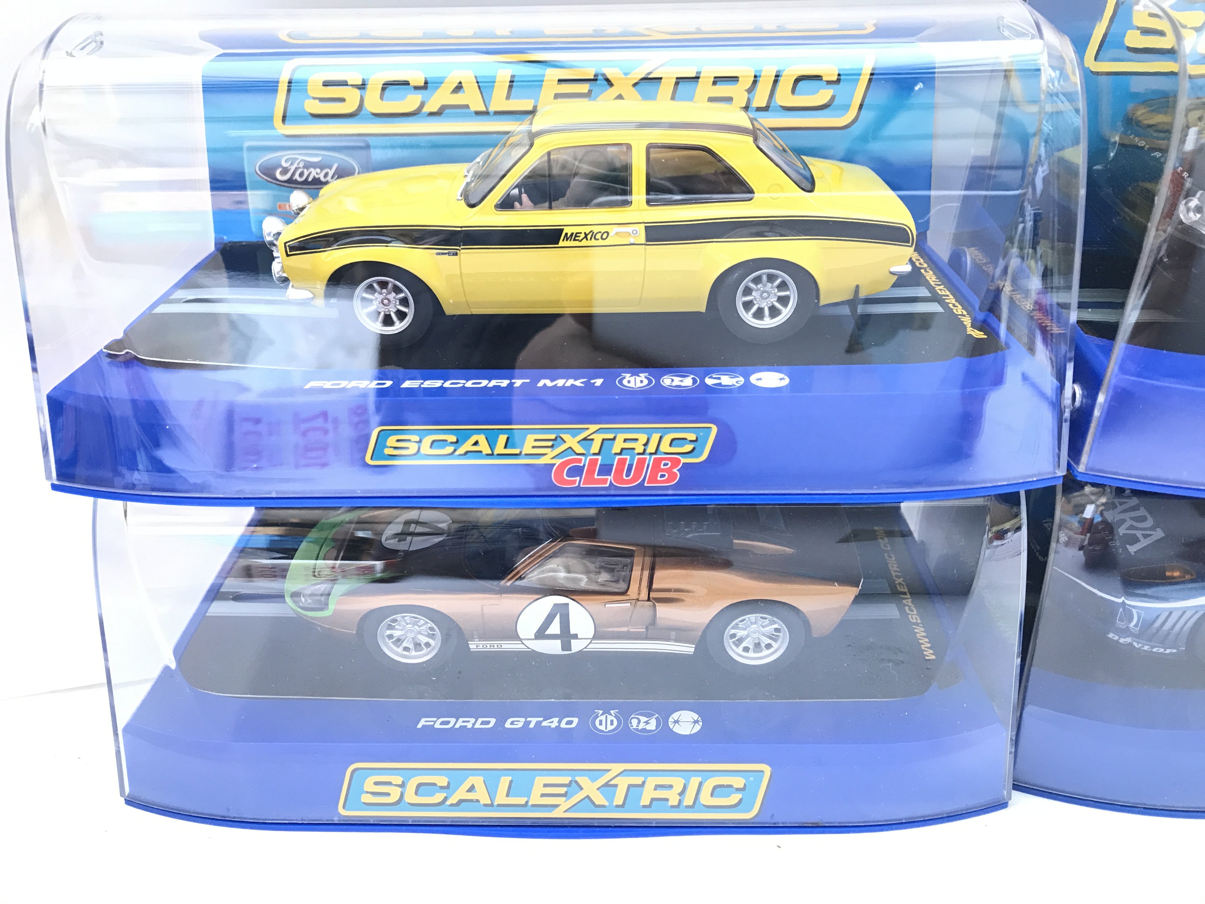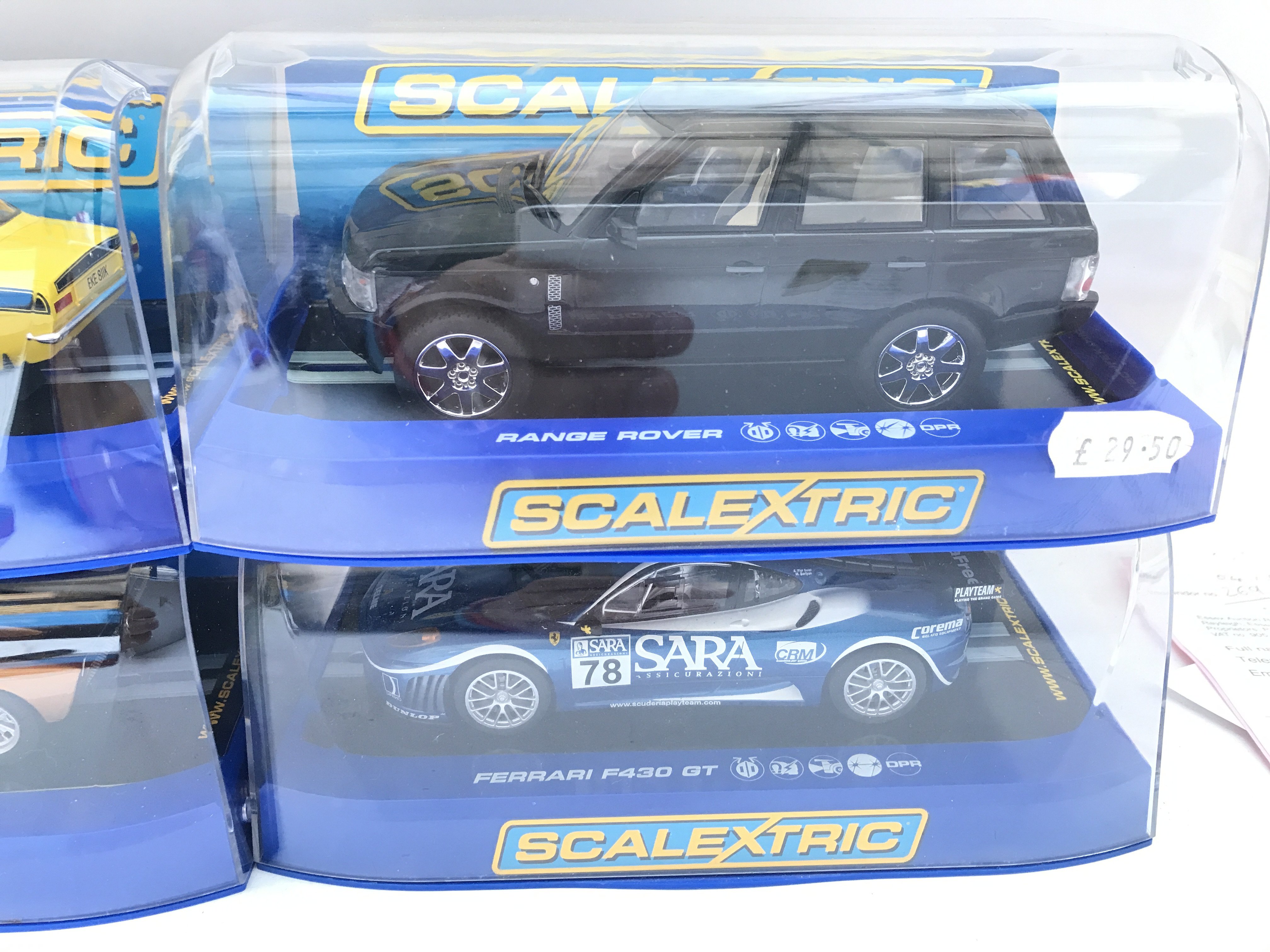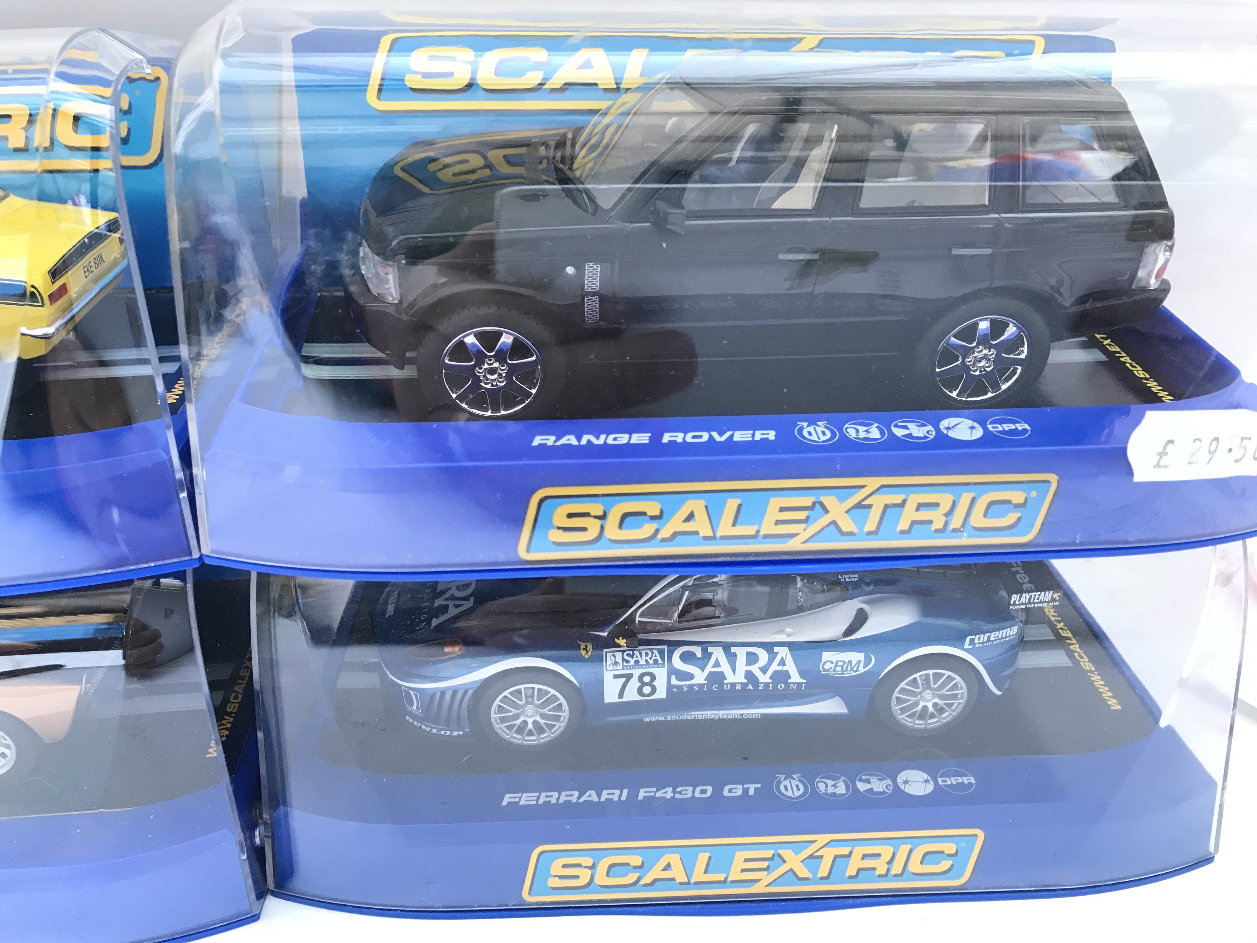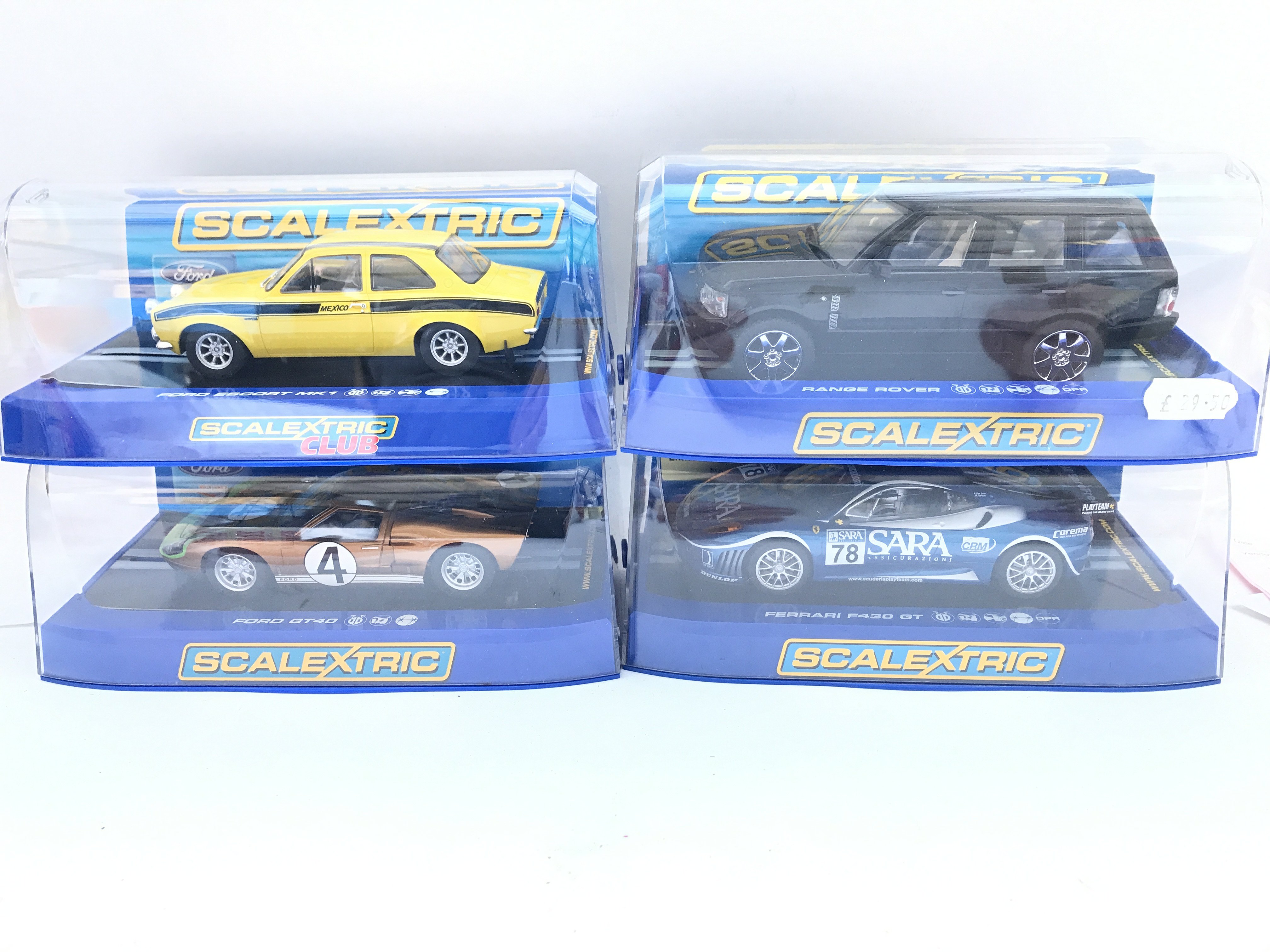 4 X Boxed Scalextric Cars a Ford Escort MK1. A Range Rover. A Ford GT40 and a Ferrari F430 GT.