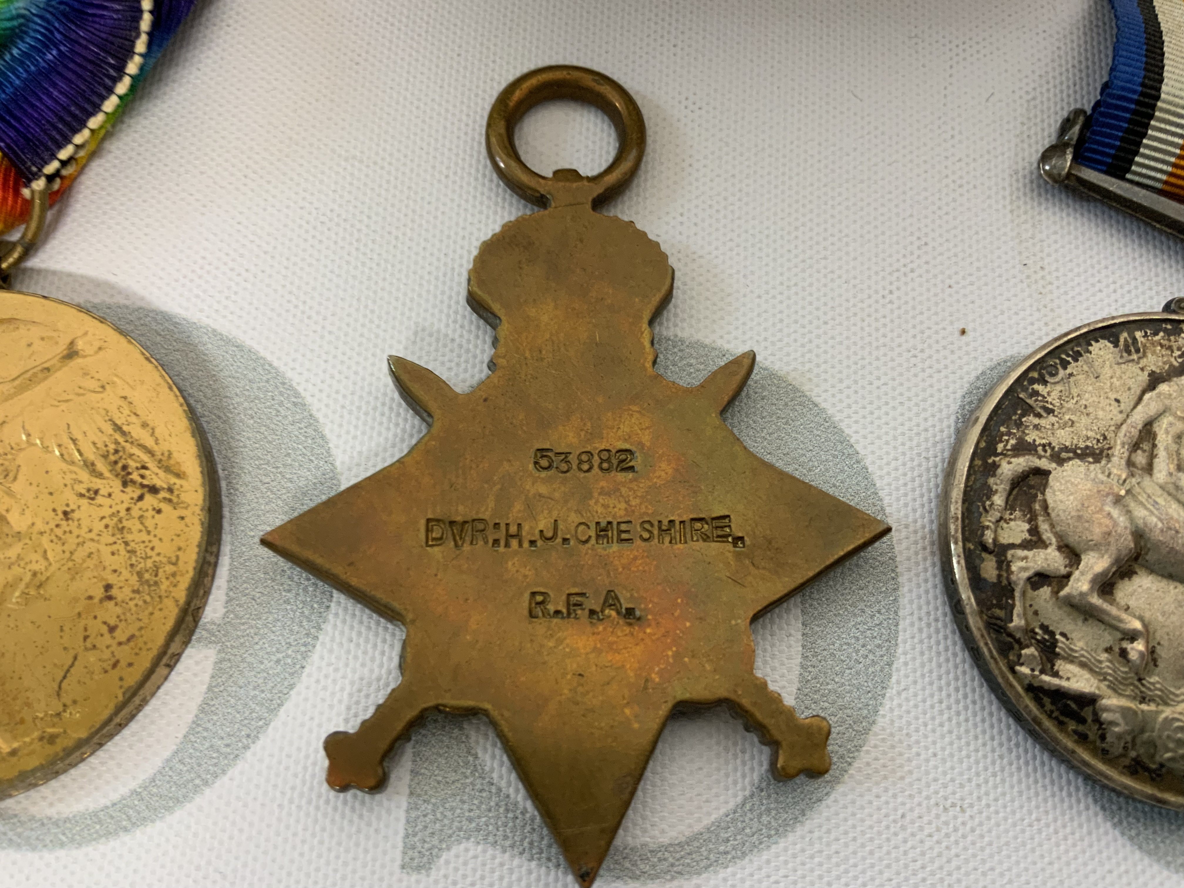 WW1 3 medal group awarded to 53882, DVR H J Cheshire. R F A (A)