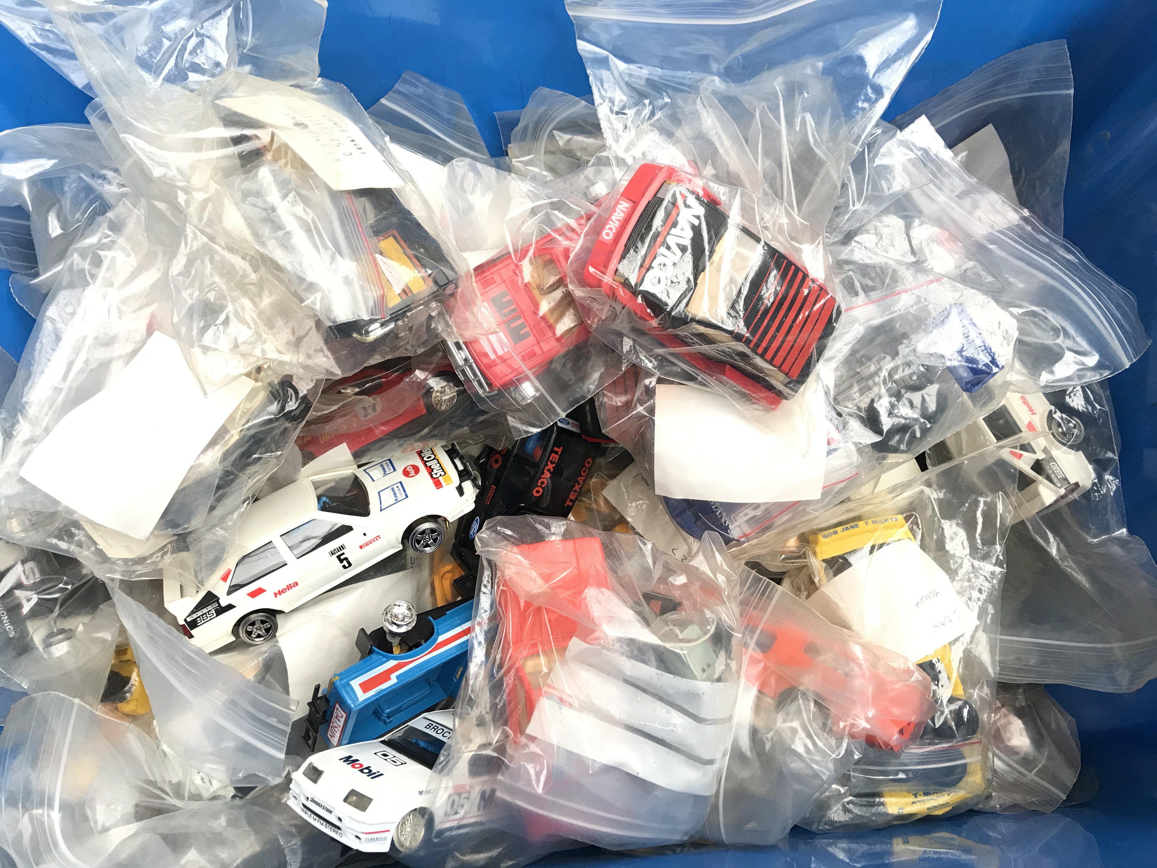 A Box Containing Scalextric Cars In Various States Ideal For Spare Parts Etc.