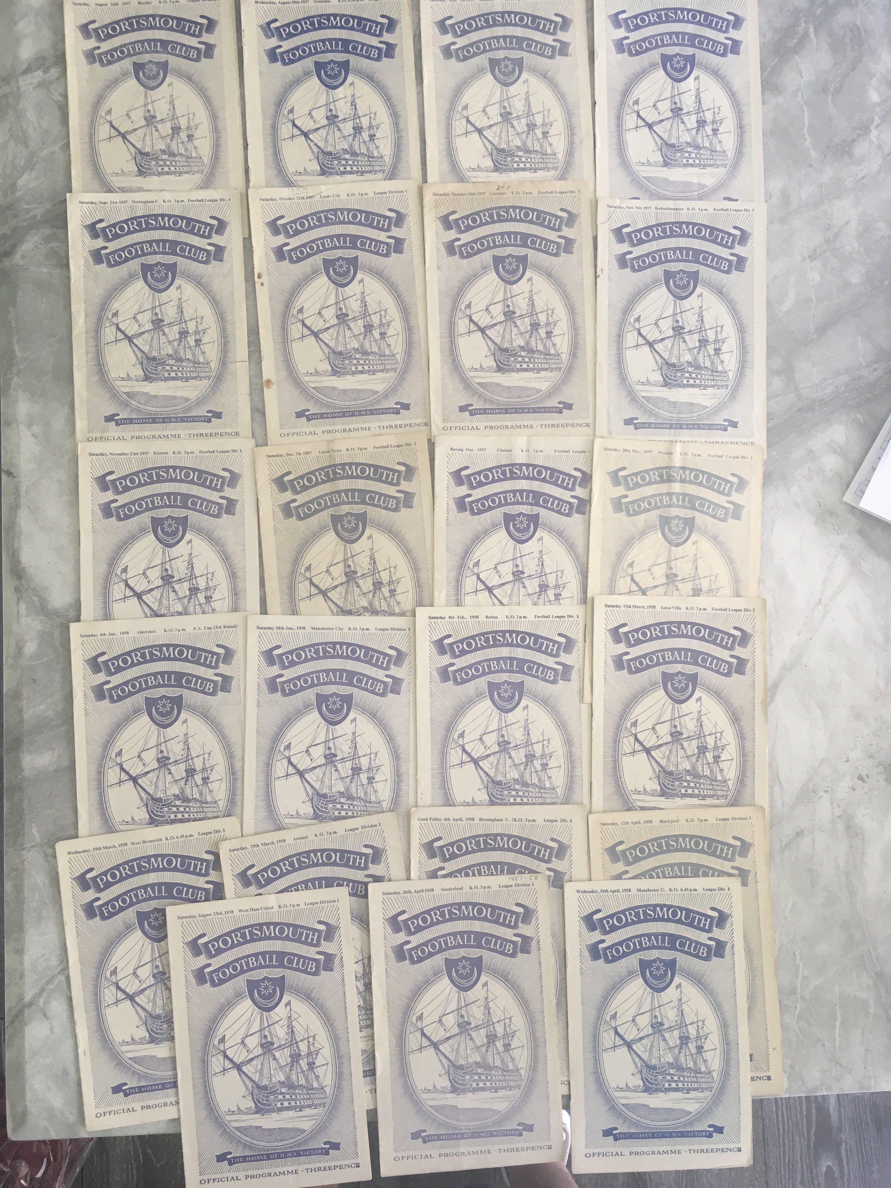 57/58 Portsmouth Complete Home Football Programmes: Good condition private collection of homes in the league and cup to include Manchester United and Leeds. Couple have number to cover. (23)