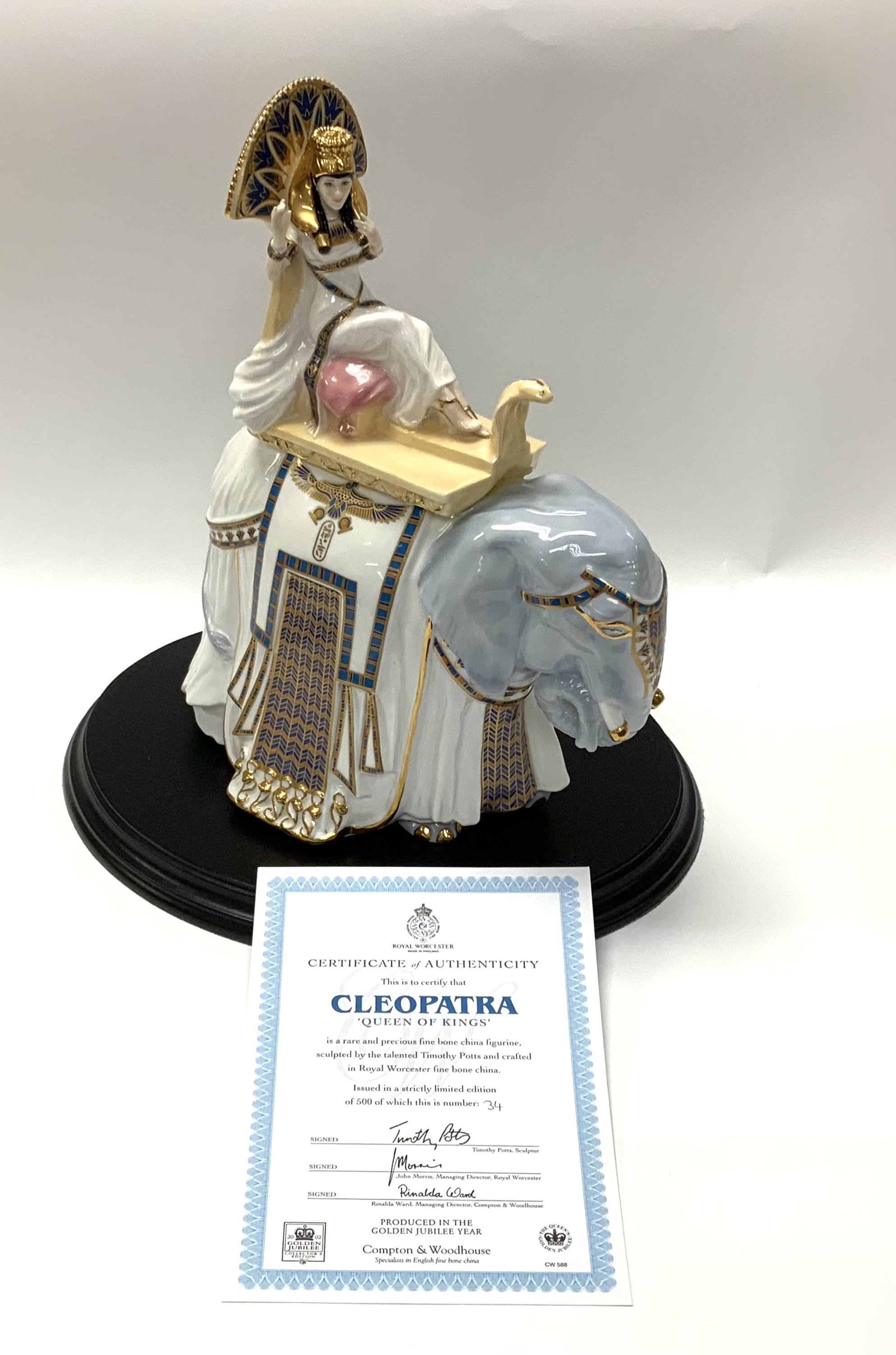 A Limited edition figure of Queen Cleopatra, Queen of Kings on top of a decorated elephant. Royal Worcester backstamp, by Timothy Potts Limited Edition 34 of 500 (D)