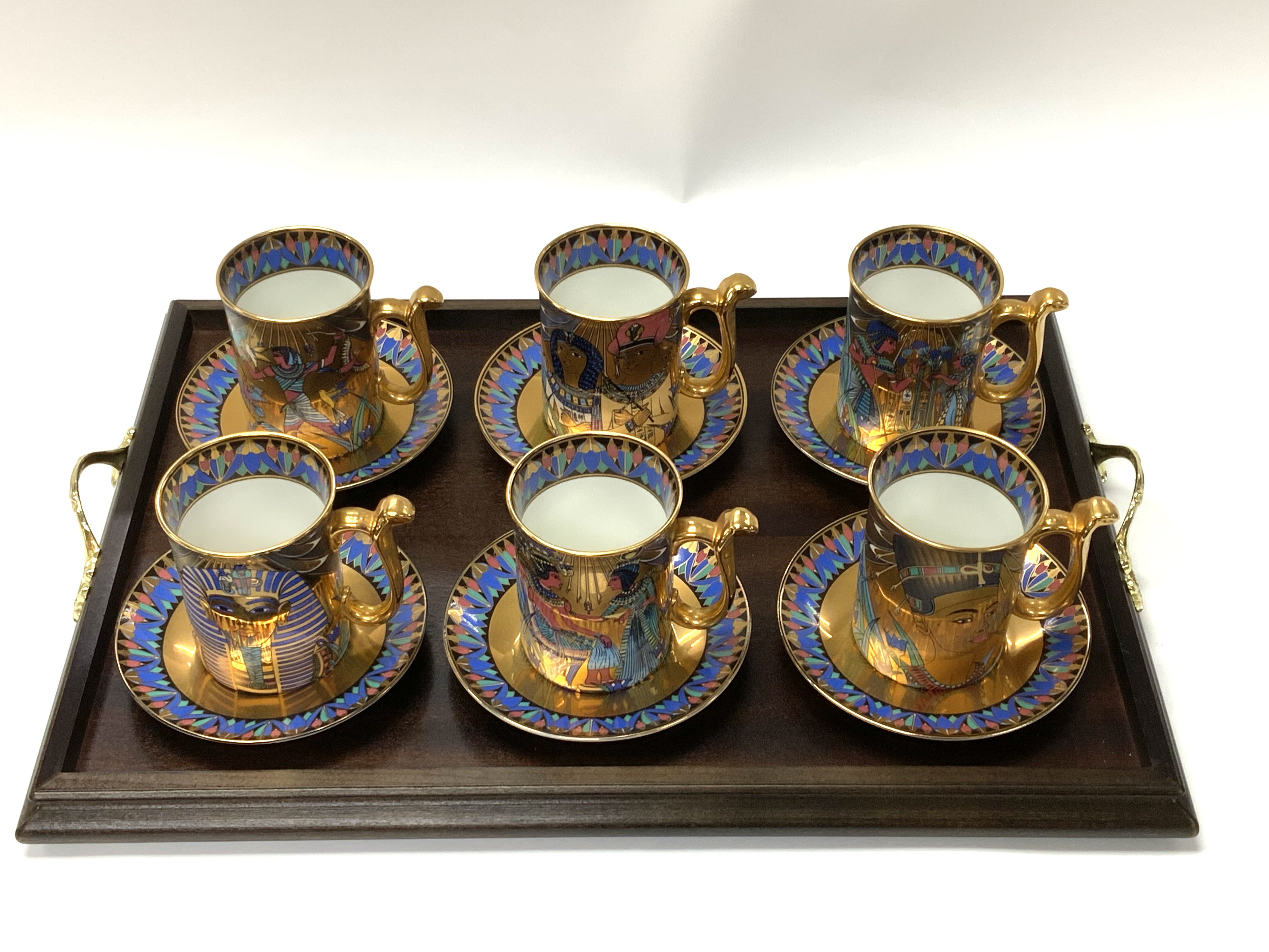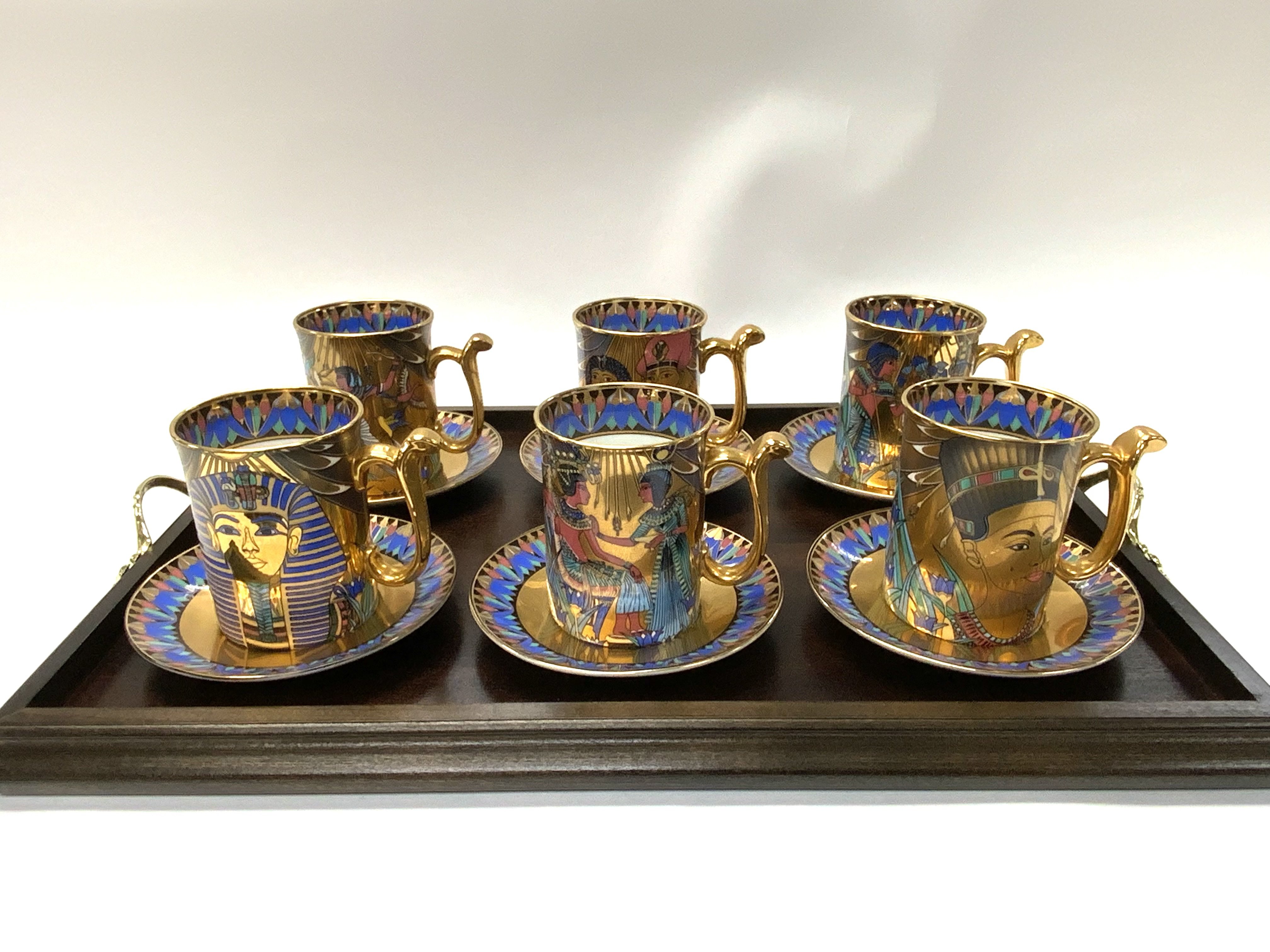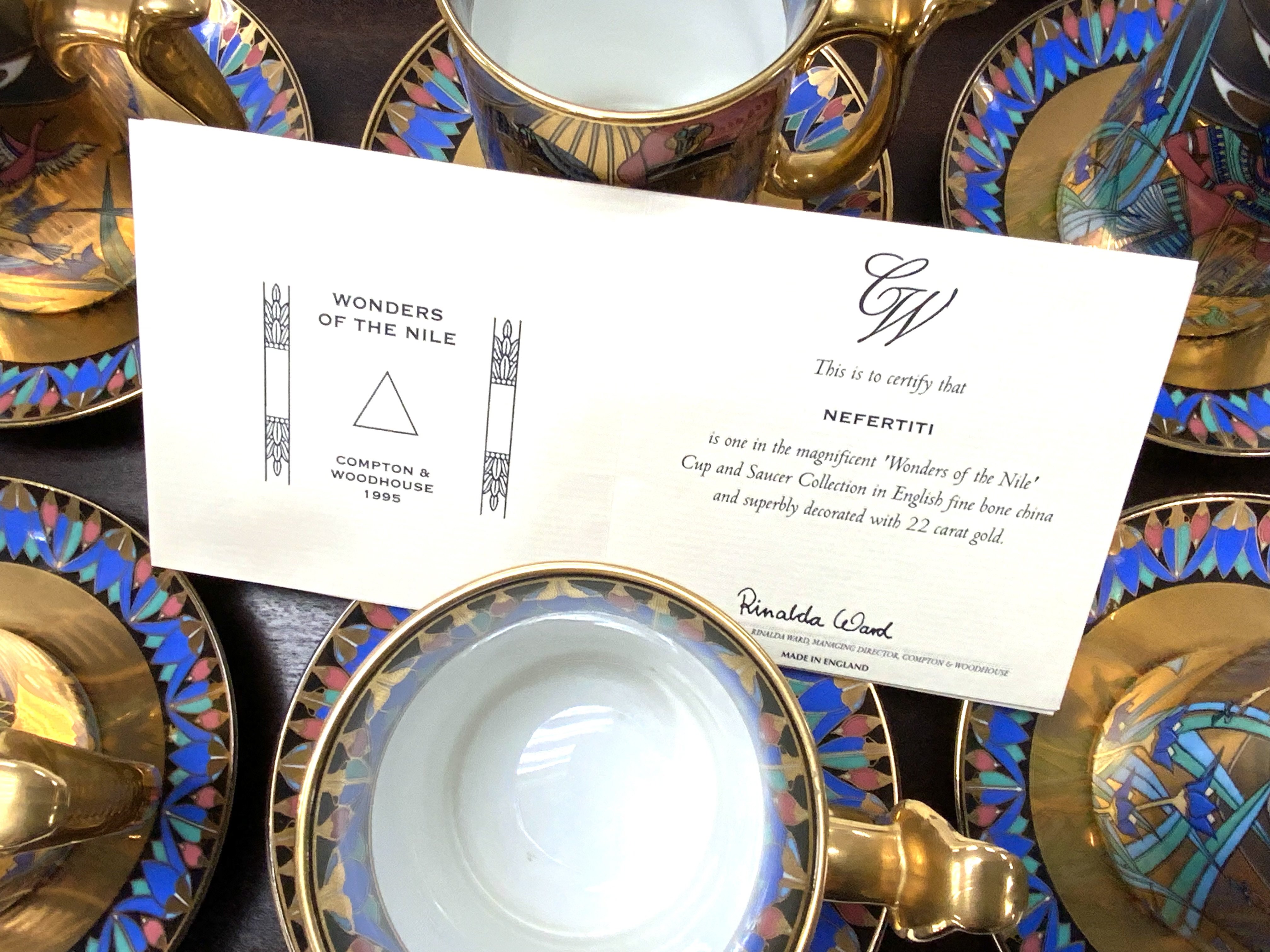 6 Compton and Woodhouse Wonders of The Nile cups and saucers together with issued gallery tray (D)