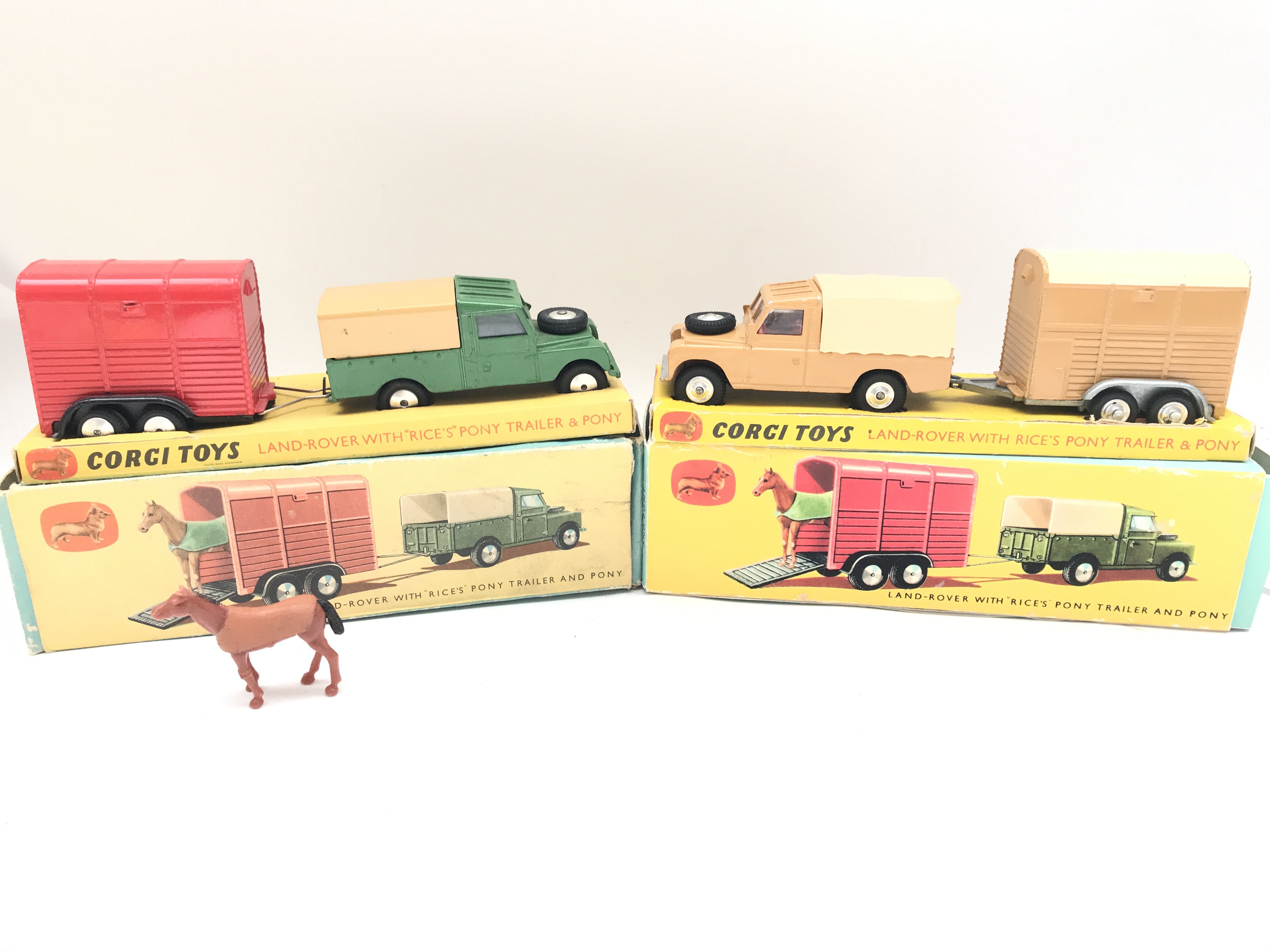 2 X Boxed Corgi Gift Set #2 Land Rover With Rices Pony Trailer and Pony. 1 Is Restored and in Repro Box.