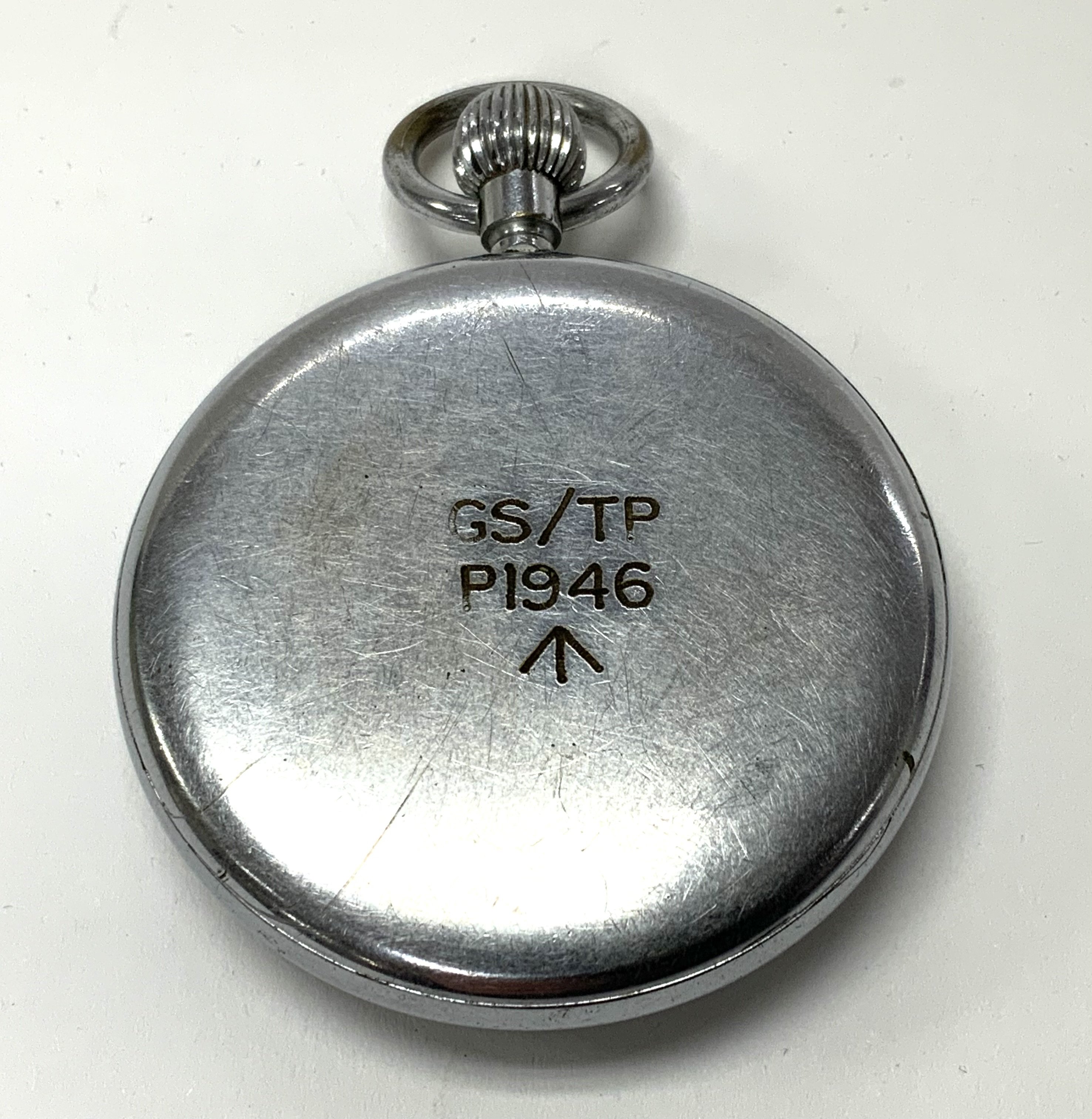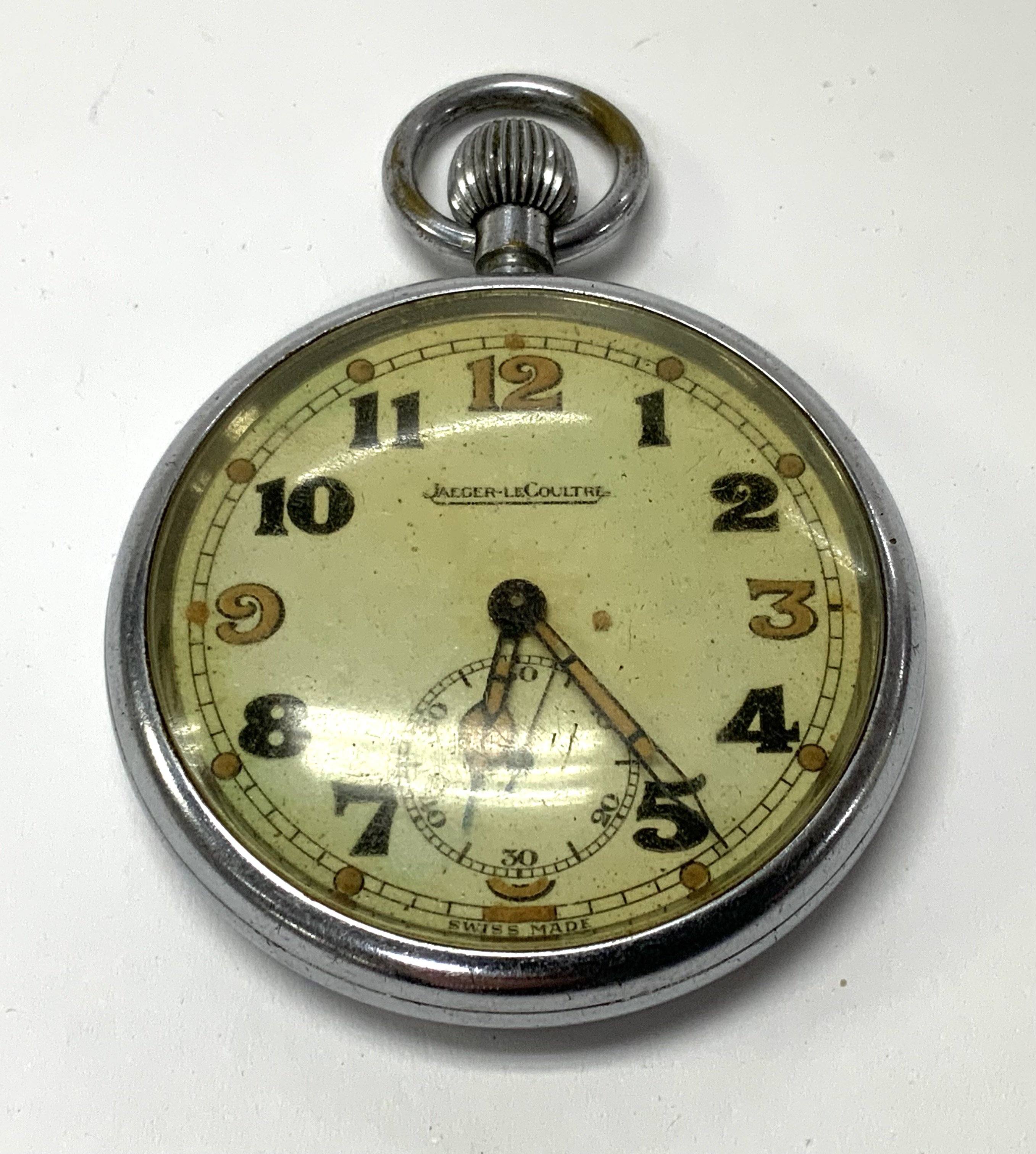A 1940s chrome plated Jaeger-Le-Coultre military’s issue pocket watch, GS/TP P1946, (seen working). (A)