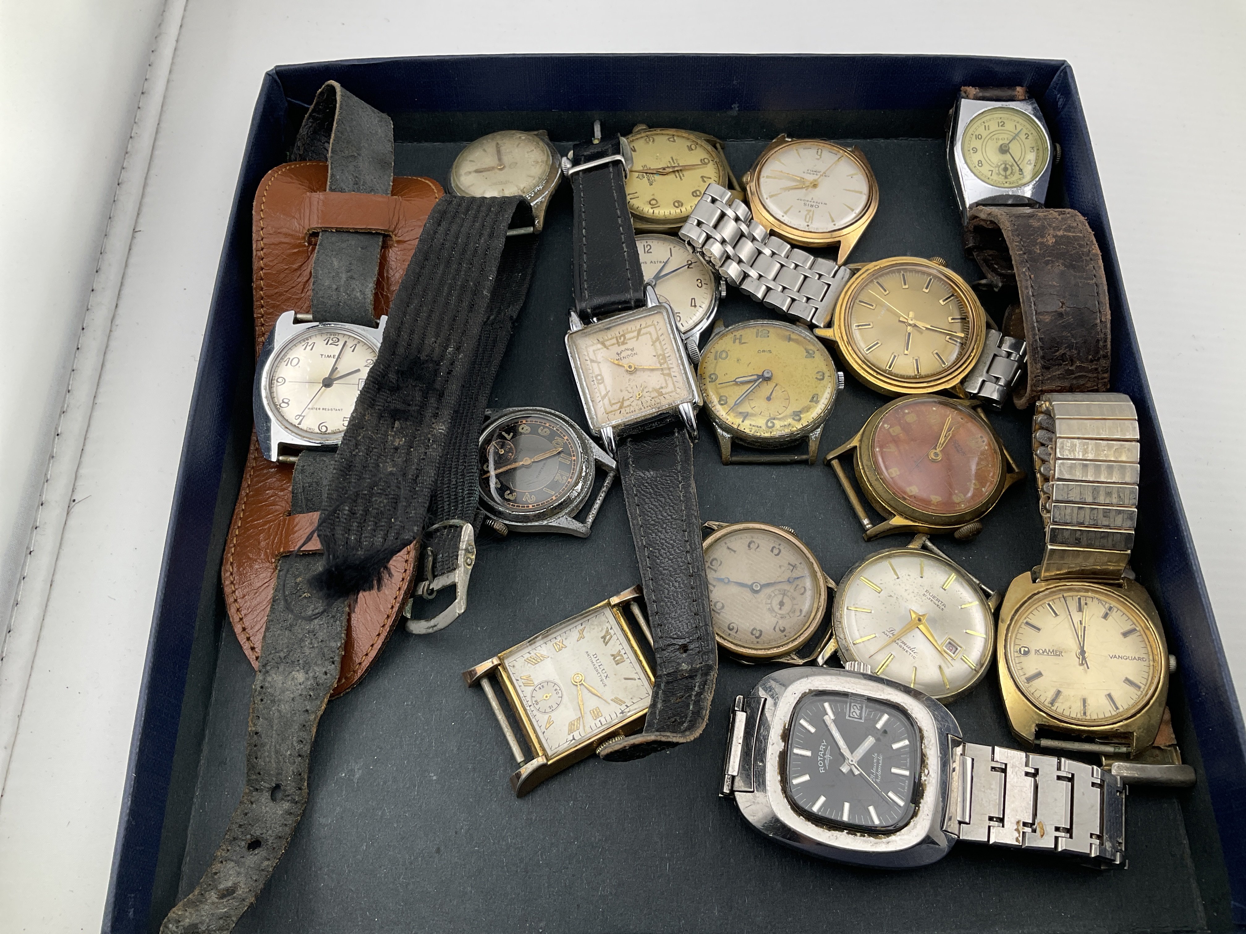 A tray of mixed vintage watches to include Oris, Smiths, Roamer. Postage category B.