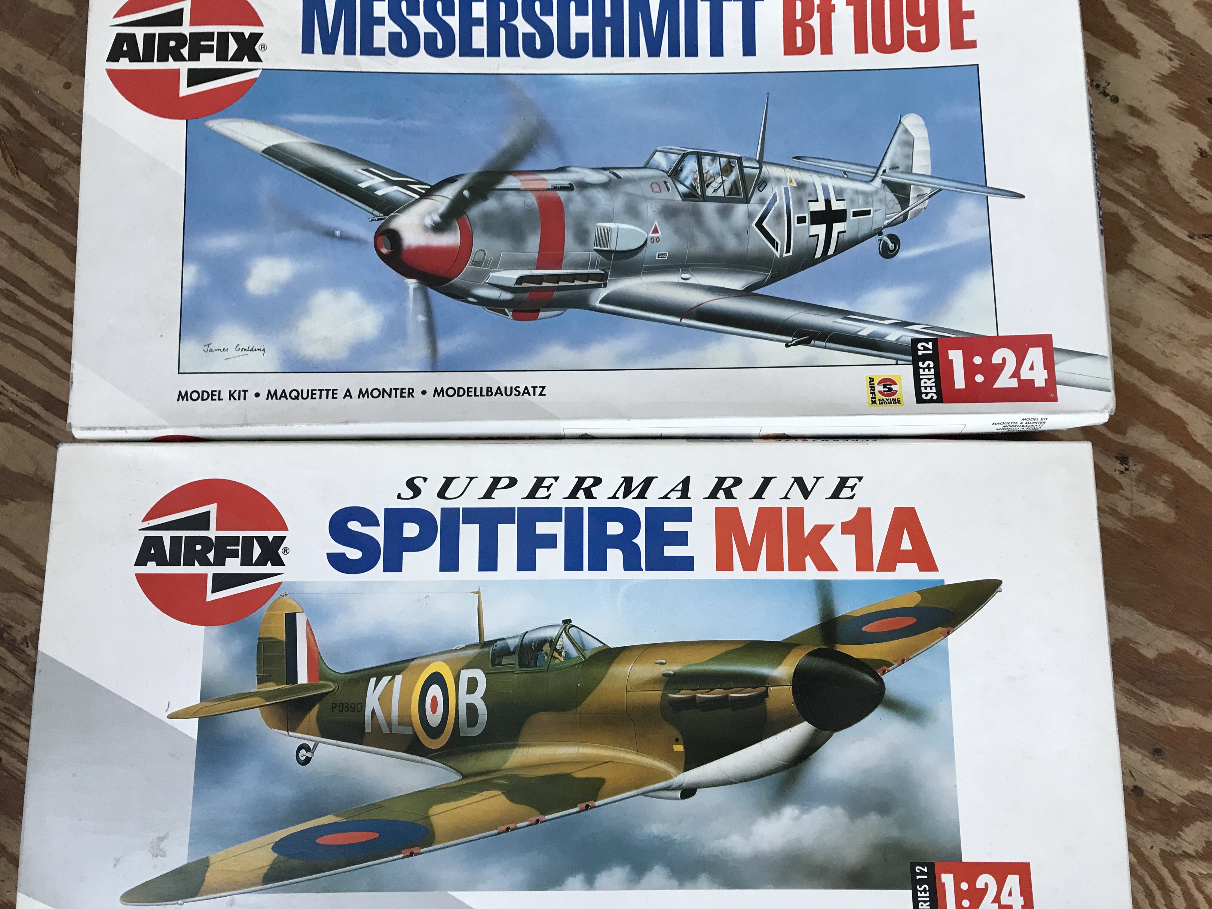2 Boxed Airfix model Kits. A Messerschmitt and Spitfire Both 1/24 Scale.(2).