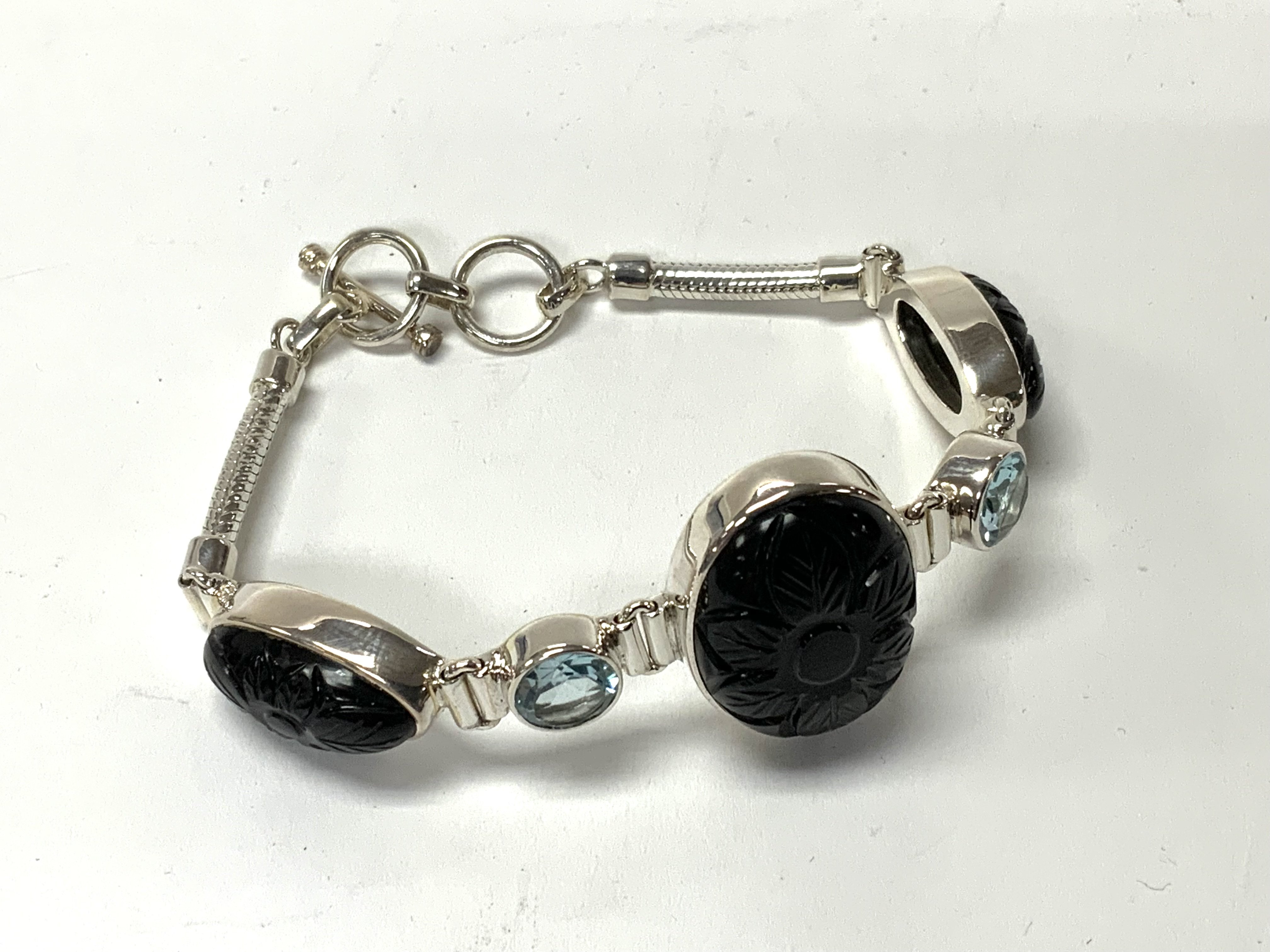 A sterling silver Obsidian and blue topaz bracelet (A)