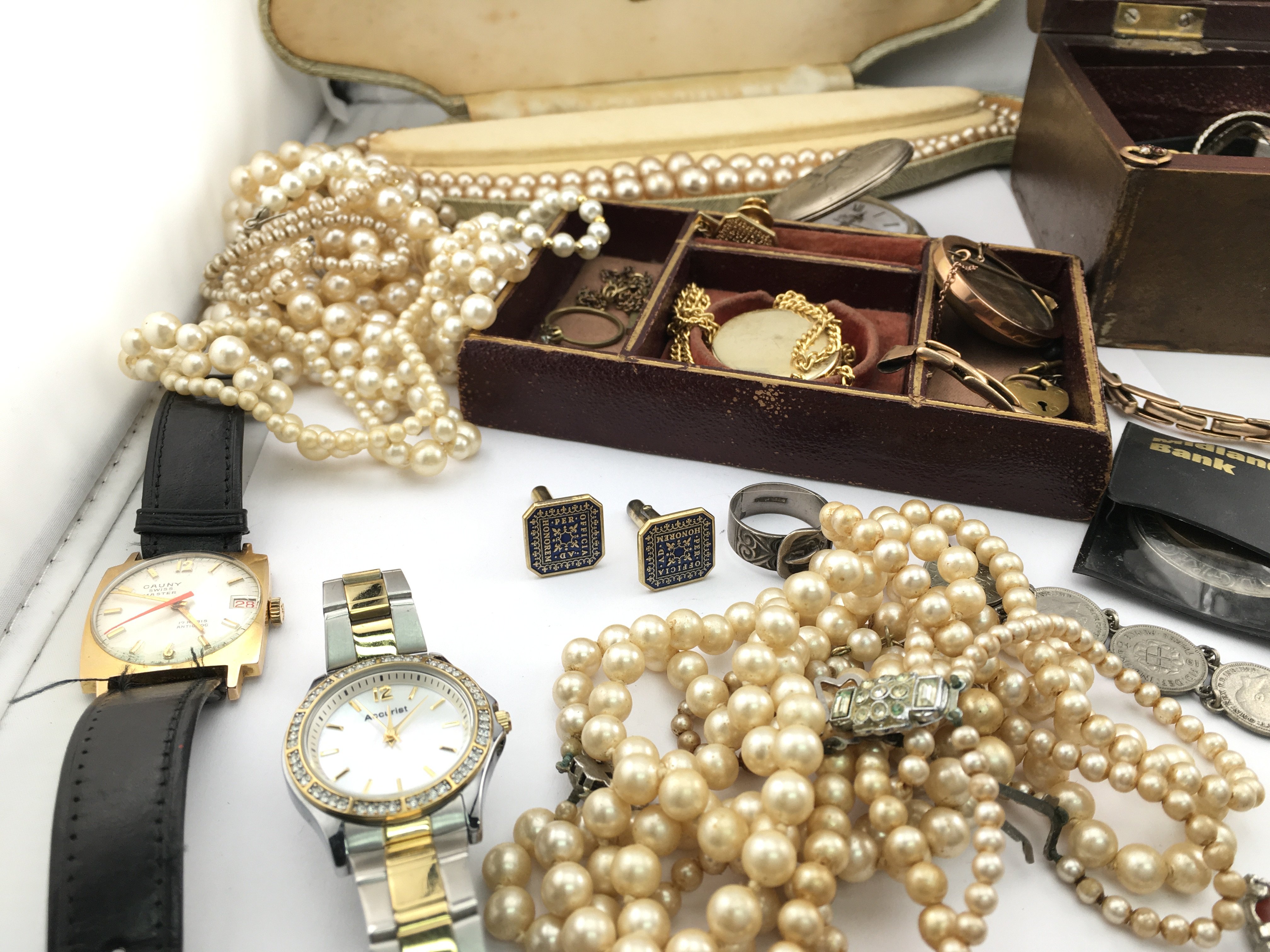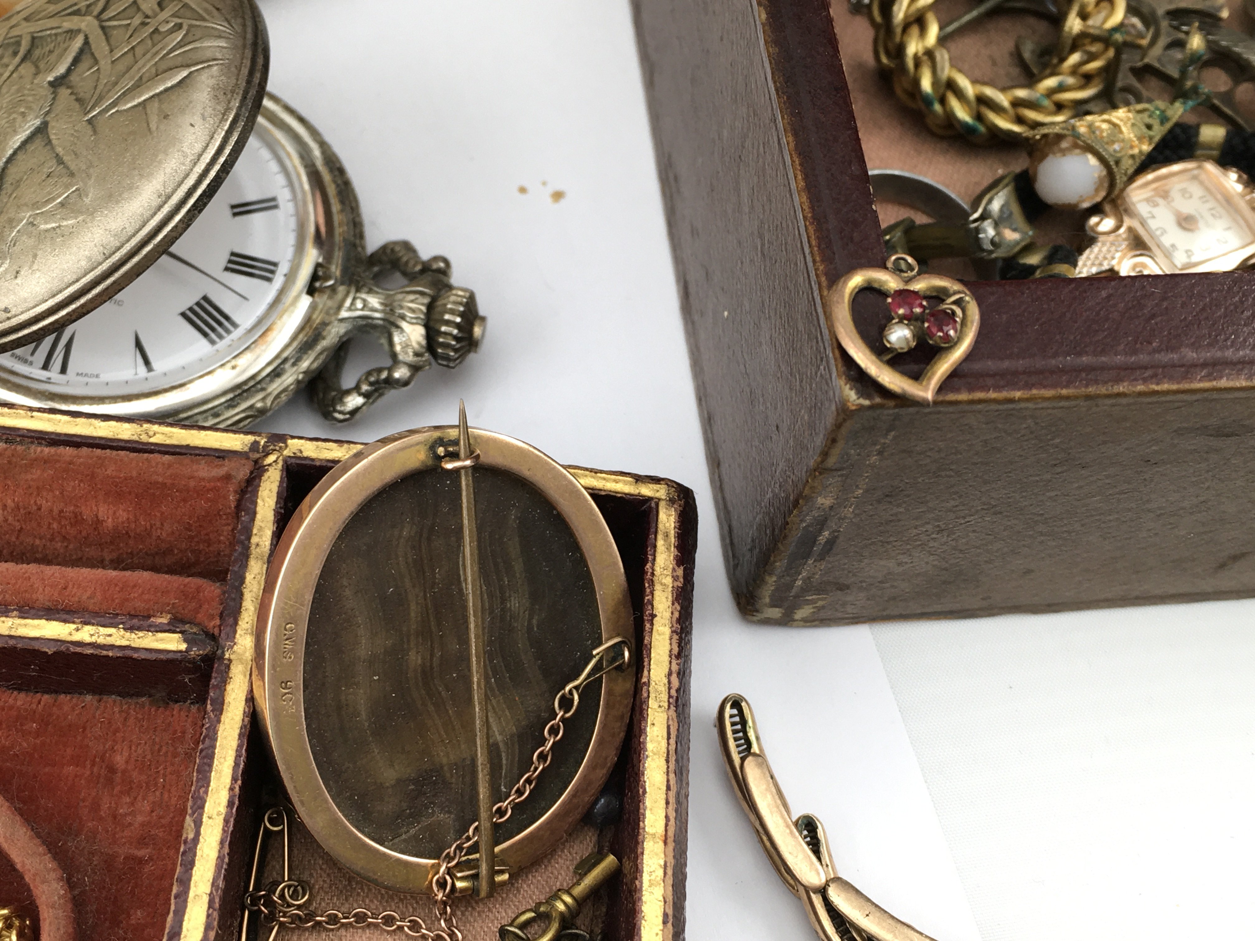 A Collection of costume jewellery including 9ct gold items and silver items. Postage B
