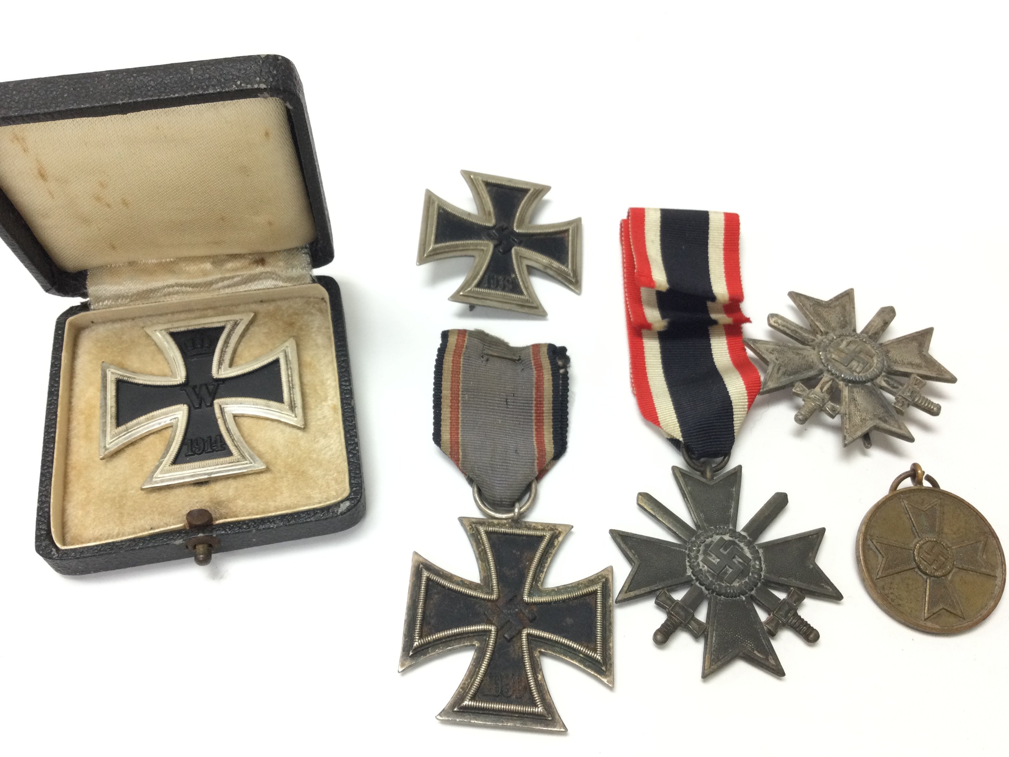 A collection of WW2 German iron cross medals, war merit medals. Postage category B