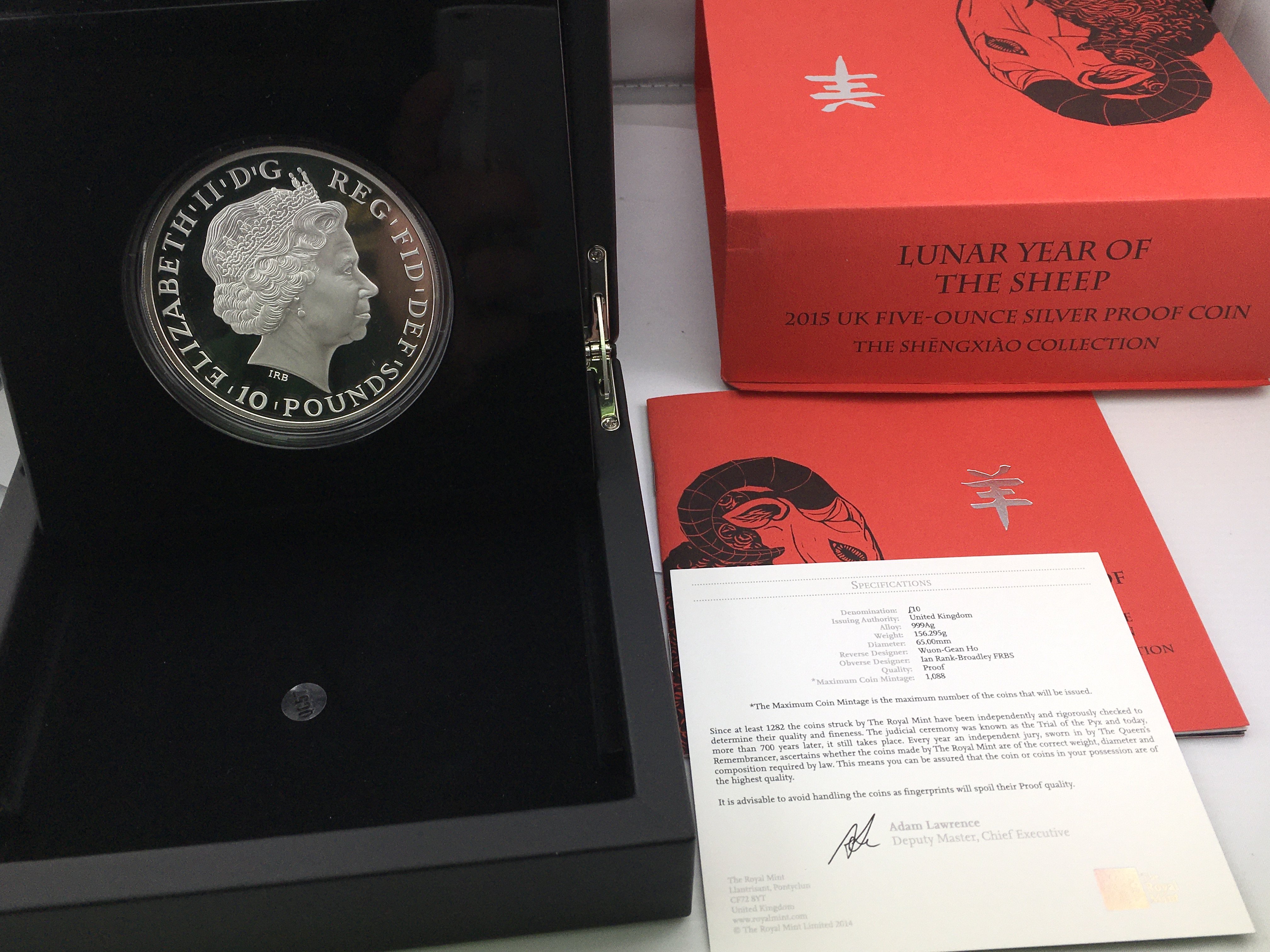 2015 Lunar year of the sheep 5oz silver proof coin with COA Postage B