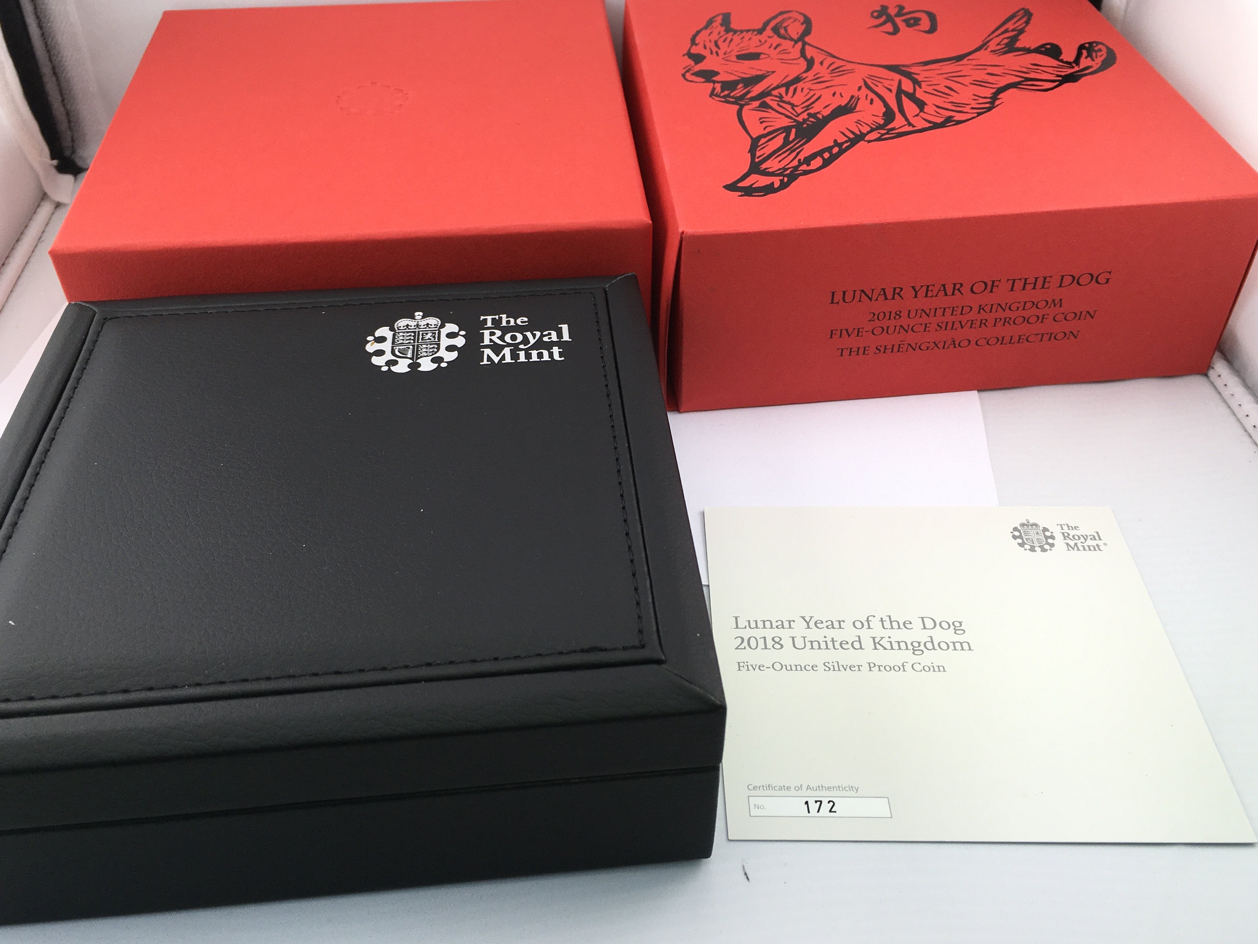 2018 Lunar year of the Dog 5oz silver proof coin with COA Postage B