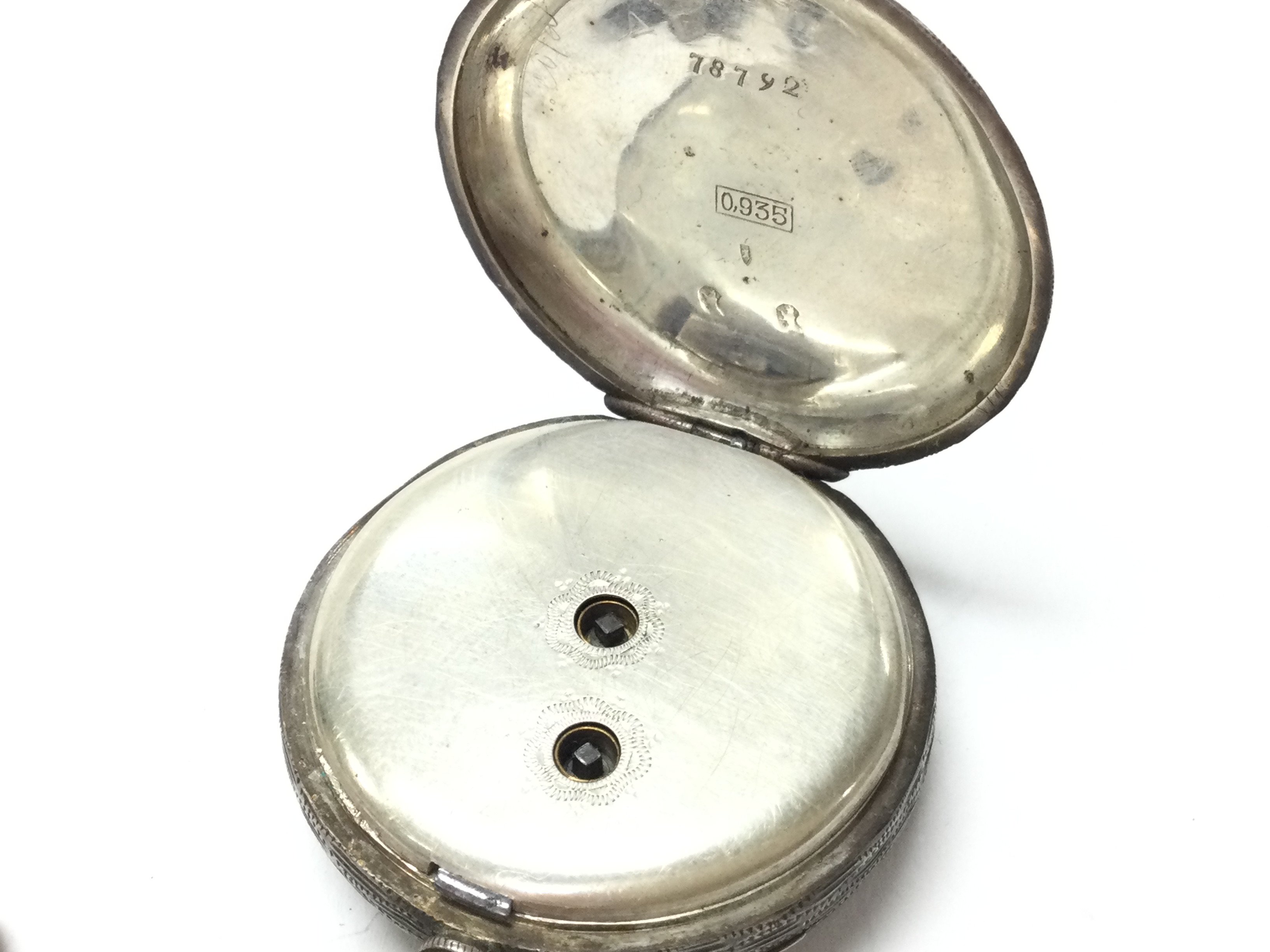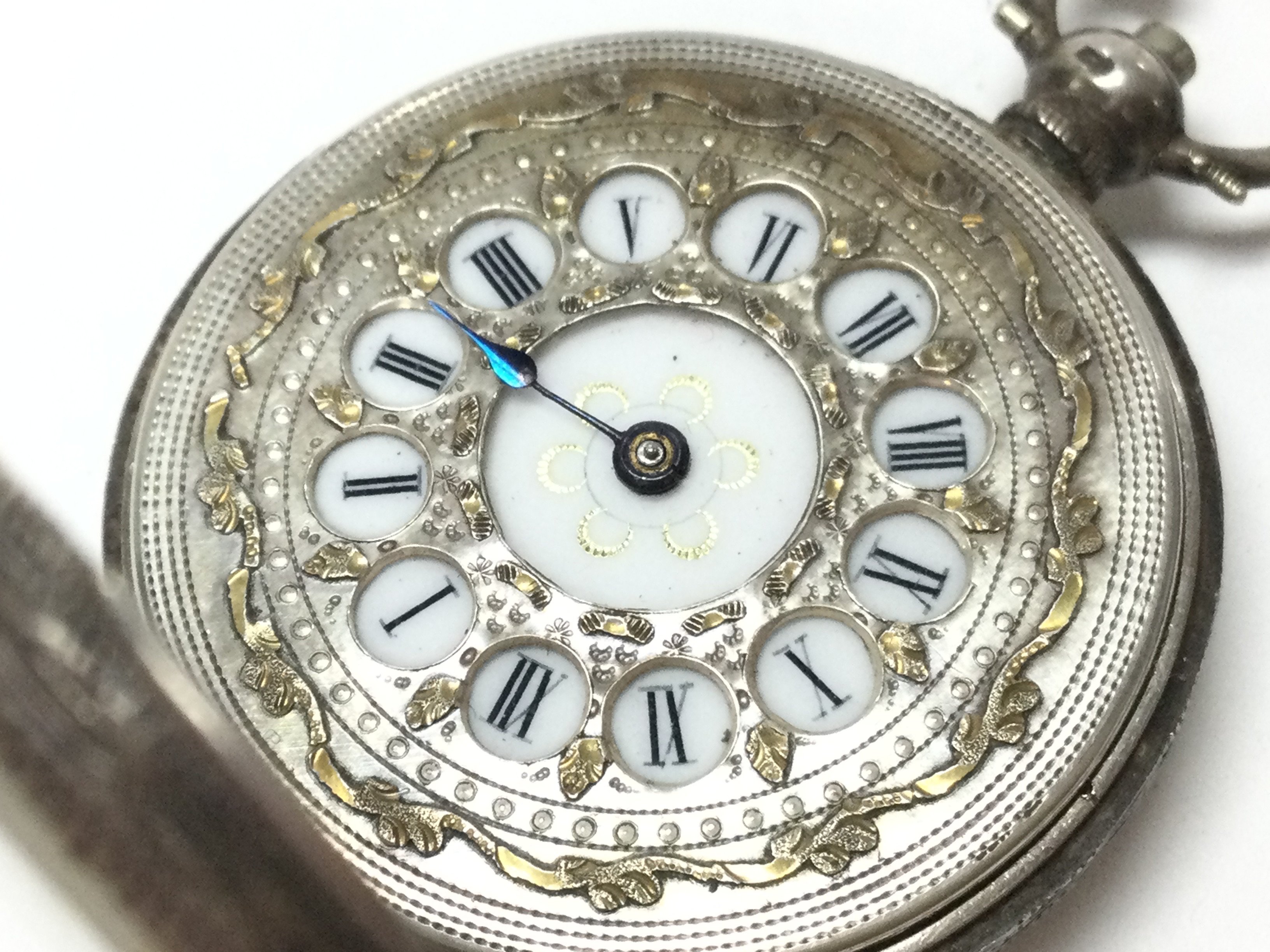 A silver hallmarked cased pocket watch with attached silver albertina. Postage category a