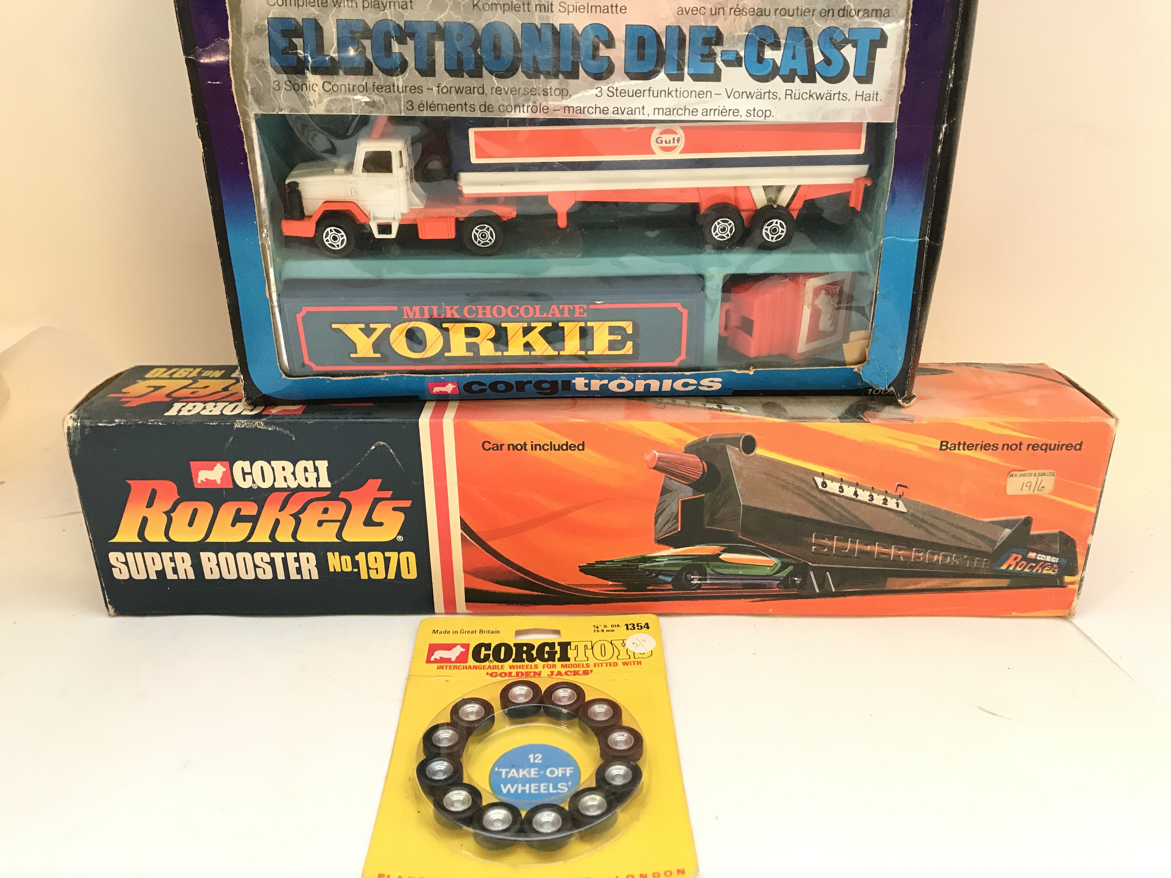 A Boxed Corgi Rockets Super Booster. A Tronics BL Roadtrain And Trailers #1002 and Golden Jacks Wheels. No Reserve.