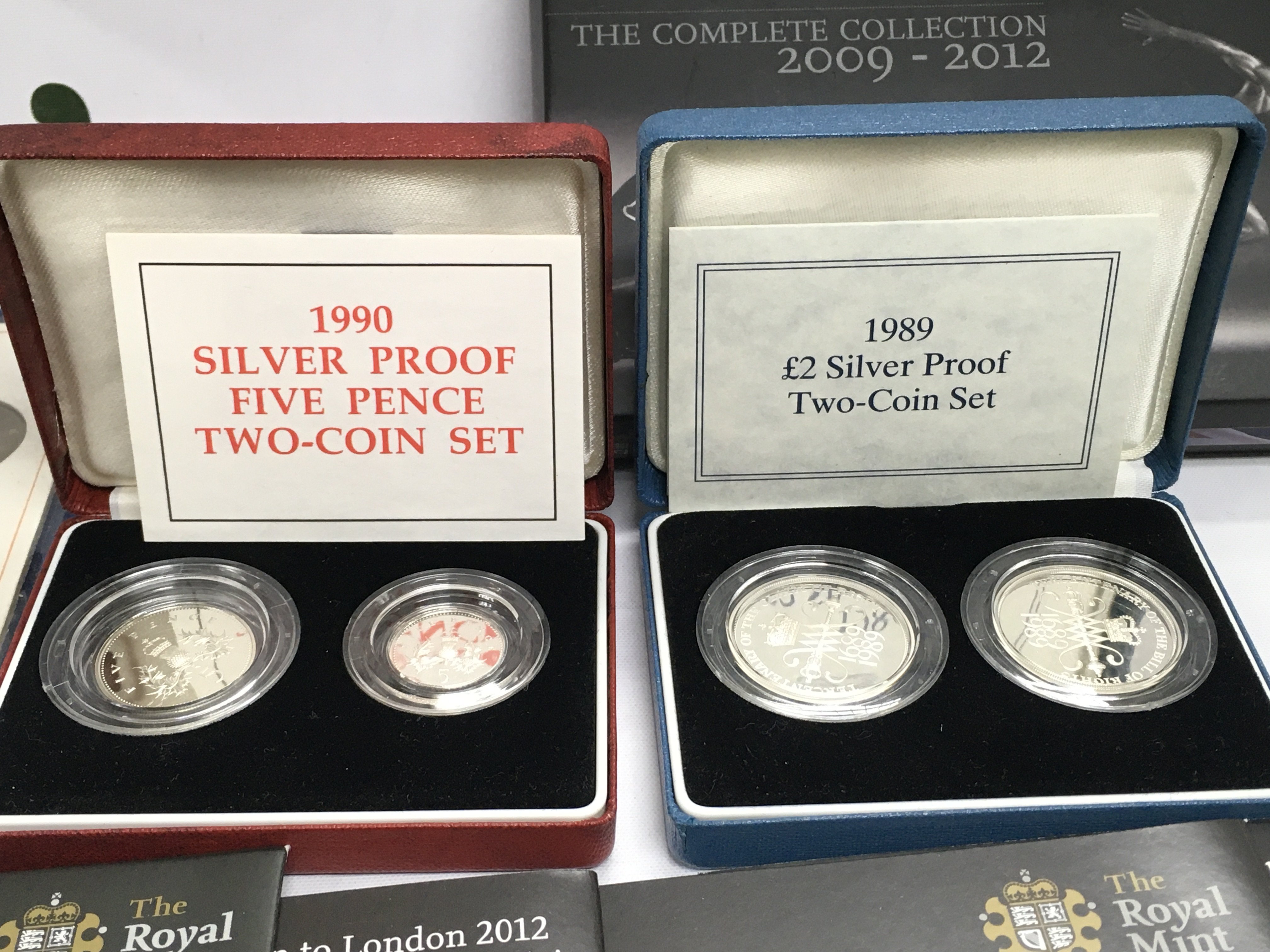 1989 silver proof coin set 1990 silver proof five pence coin set and the 2009 - 2012 countdown to London uncirculated coins. Postage B