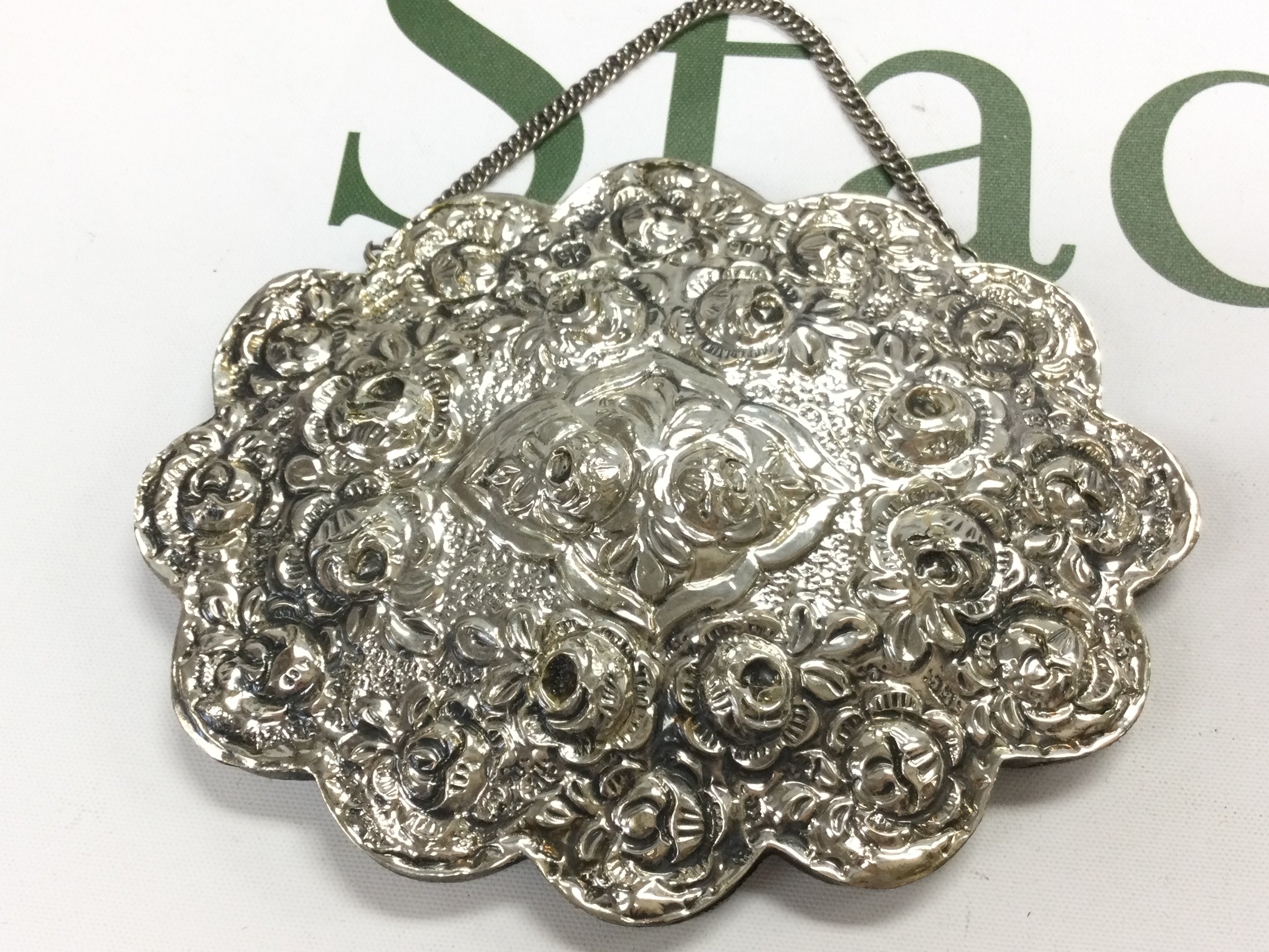 A small silver hand mirror possibly Persian. 13.5cm wide.
