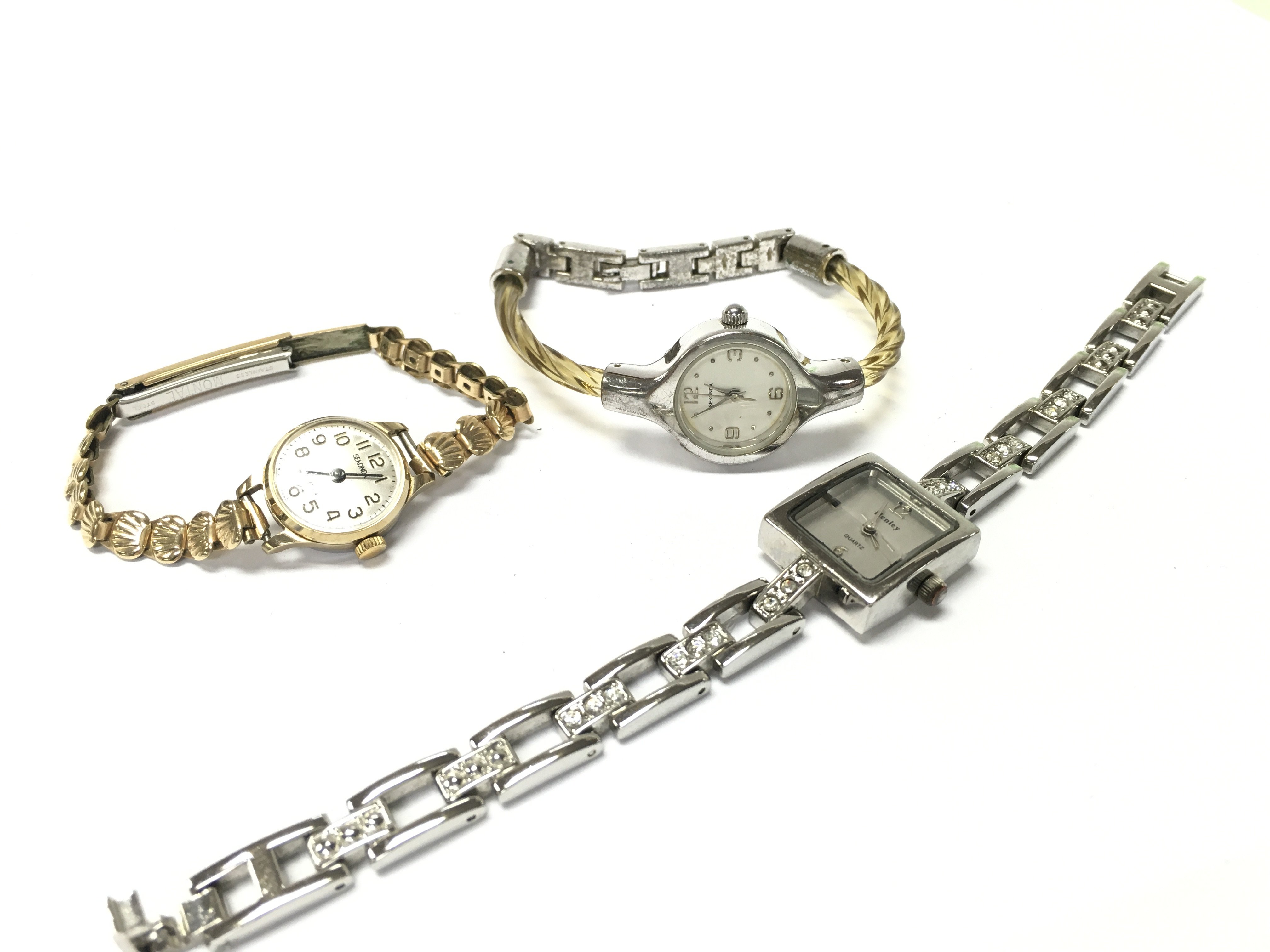 Manual wind watches including Sekonda, USSR made Sekonda, Henley clear stone set bracelet watch