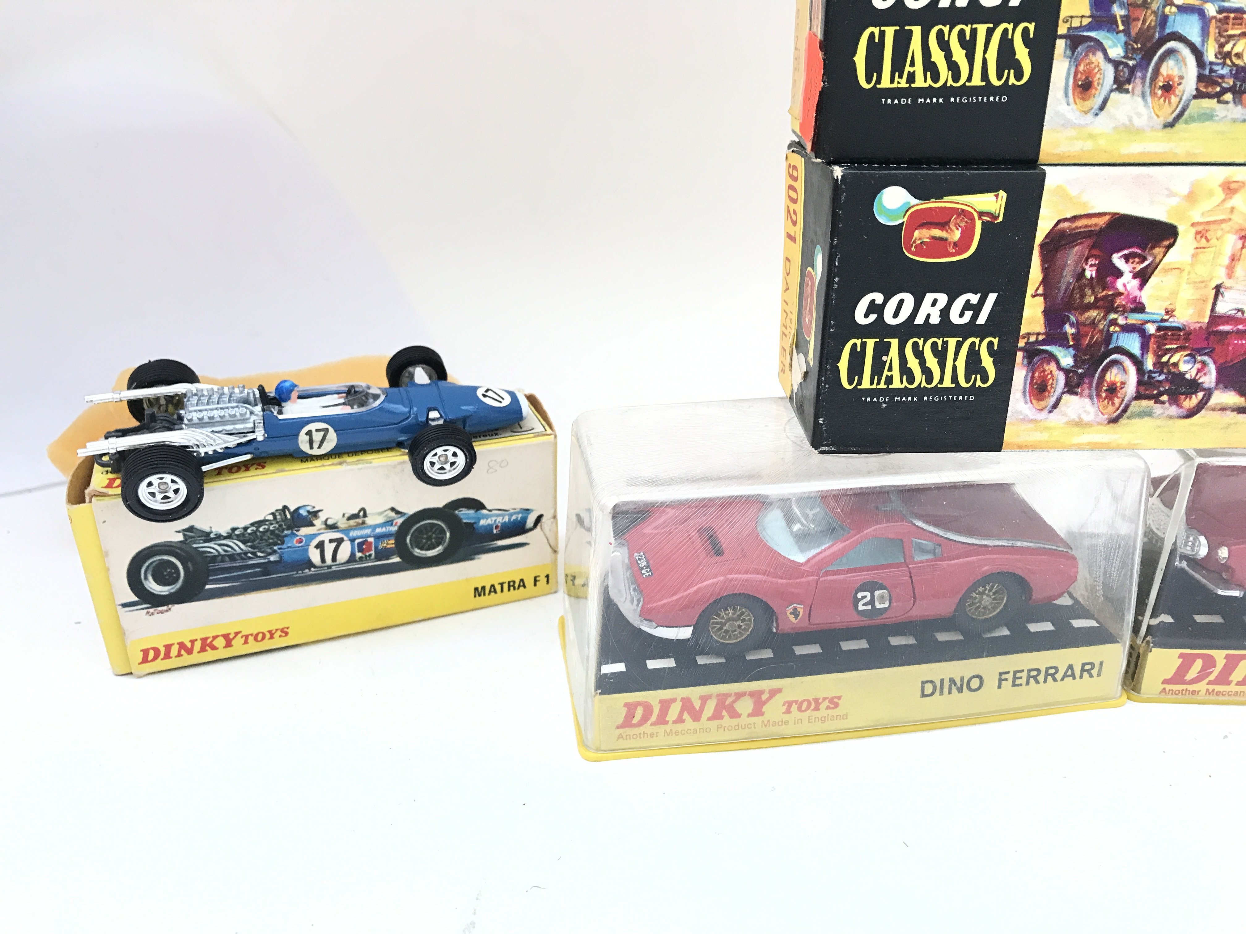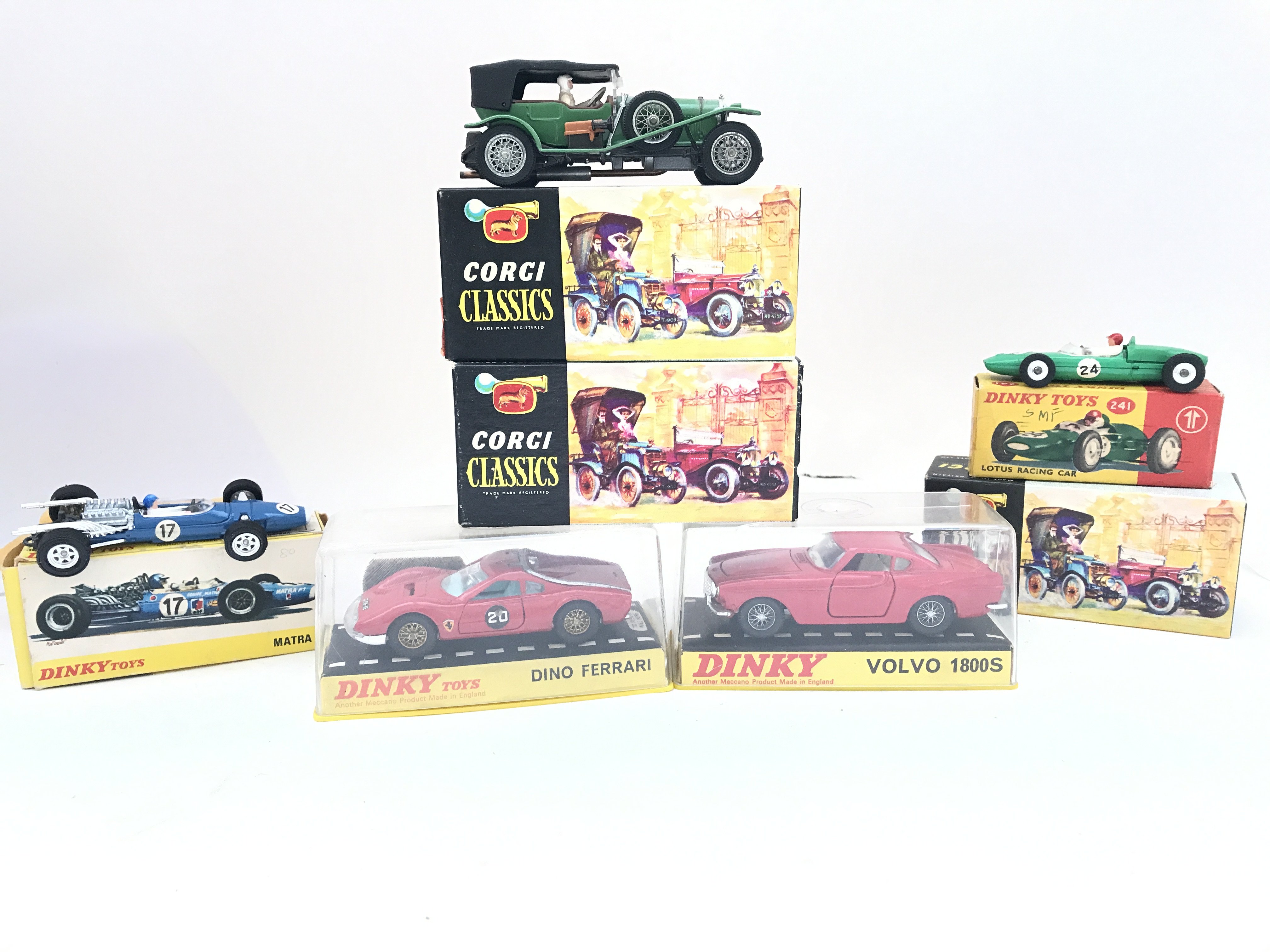 A Collection of Boxed Dinky Toys and Corgi Classics. A Dino Ferrari. A Volvo 1800S. A Matra F1. A Lotus Racing Car. Etc.