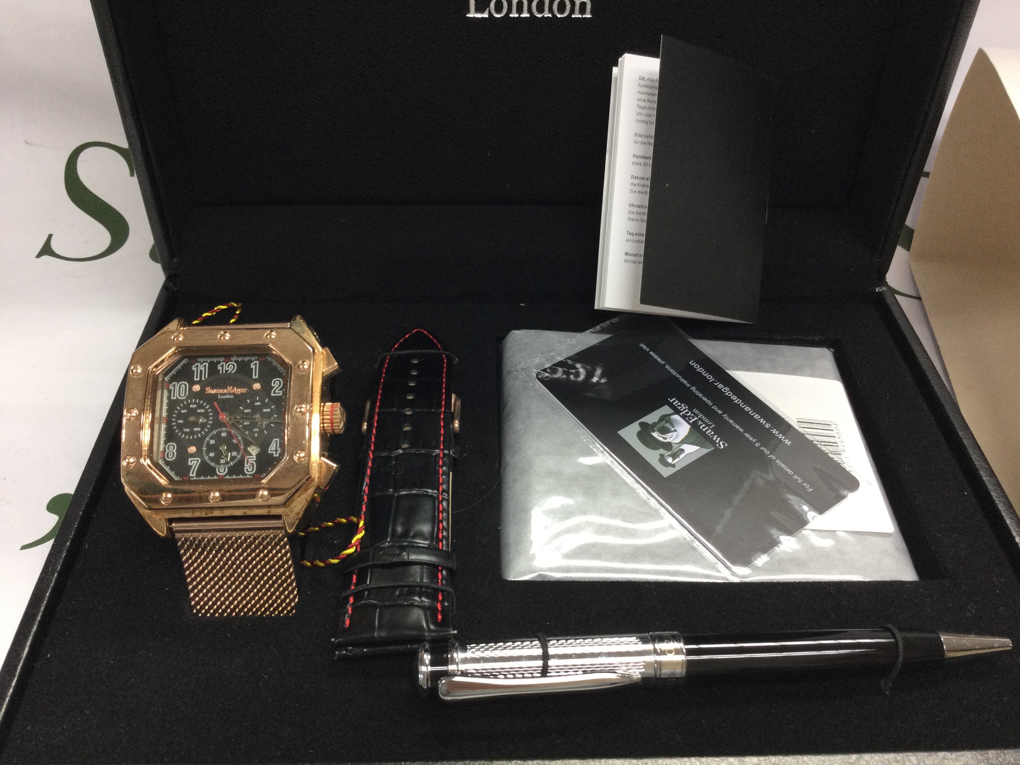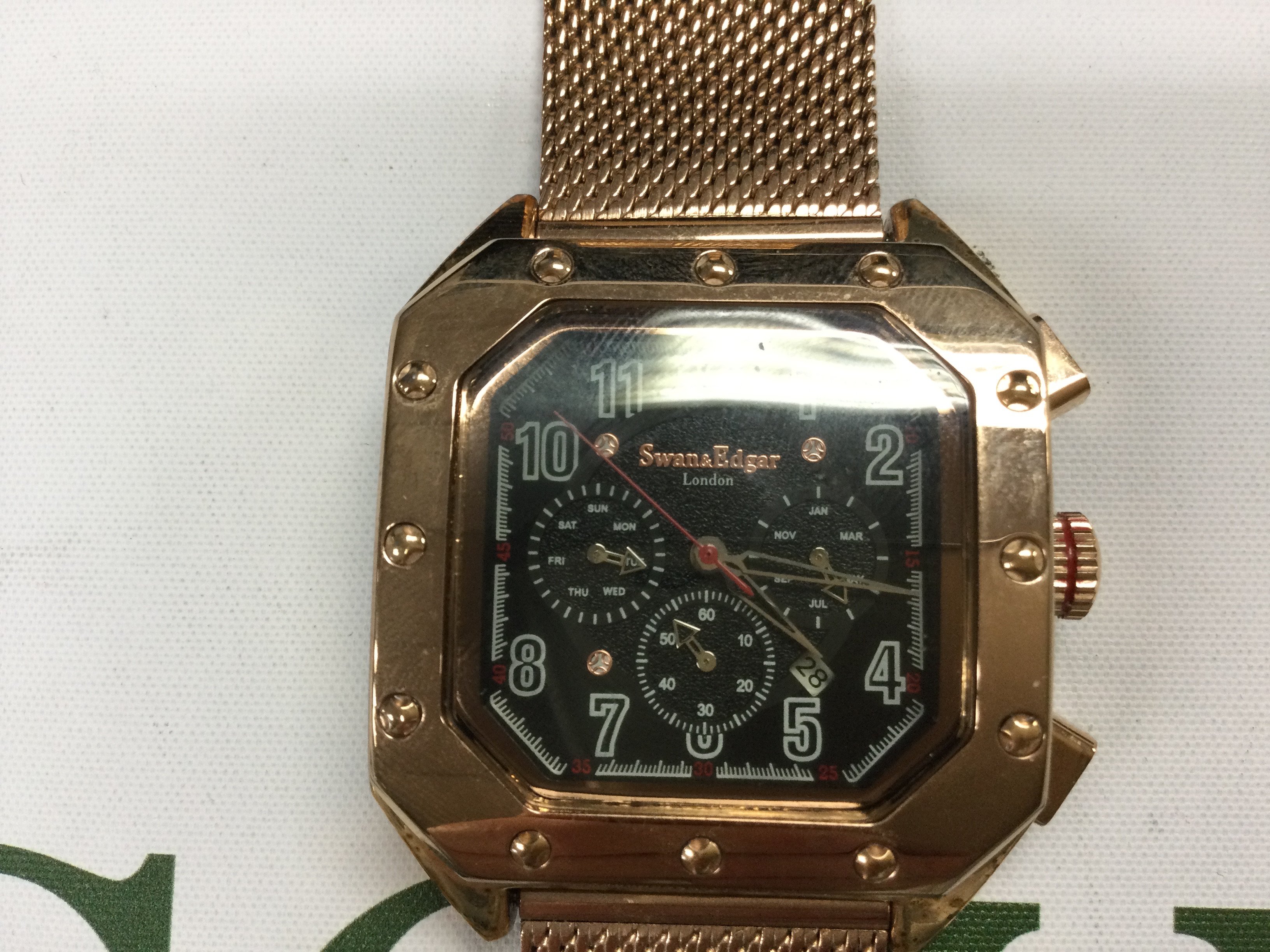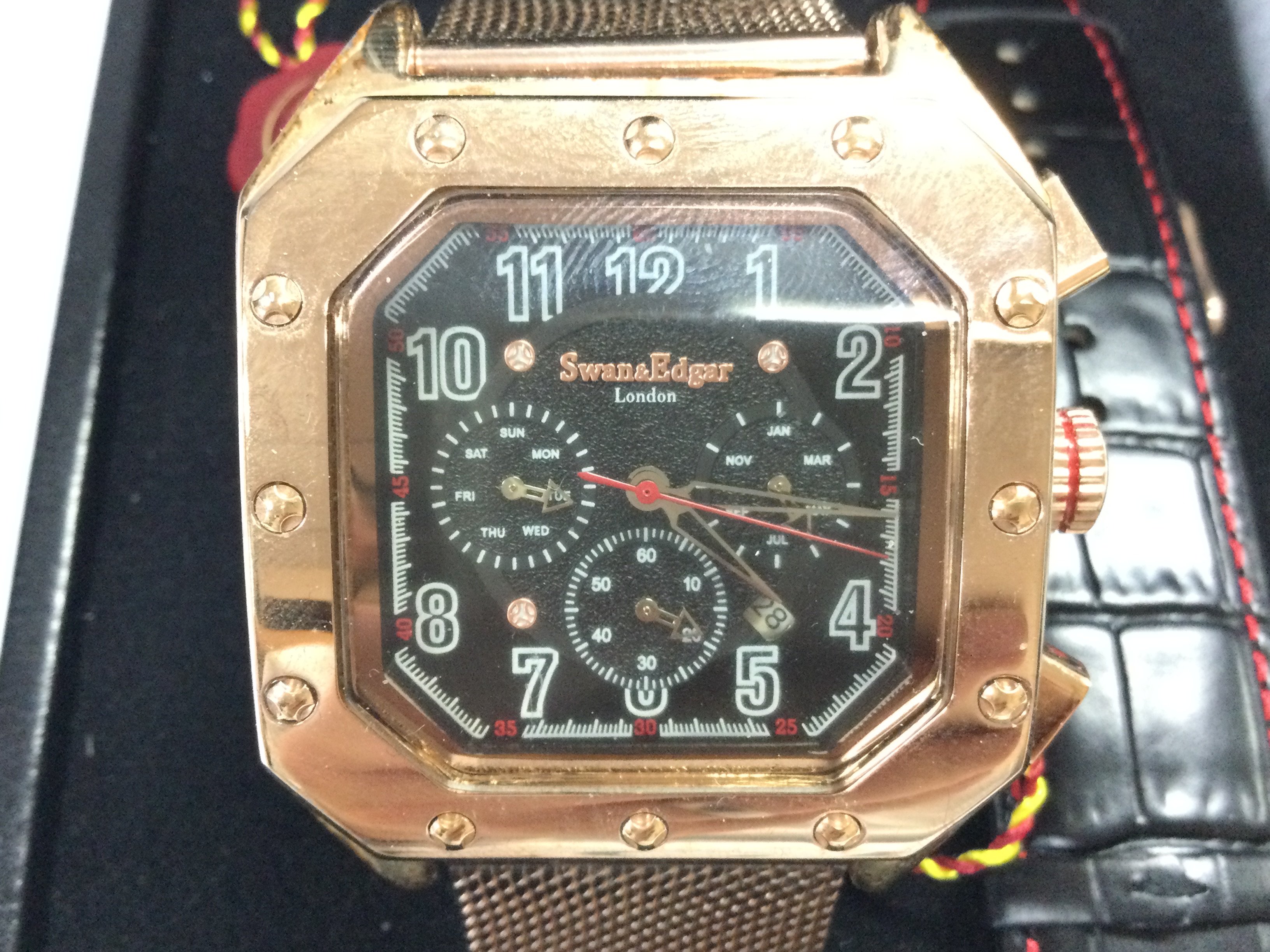 A gents Swan and Edgar automatic watch seen running with box and papers. Postage B