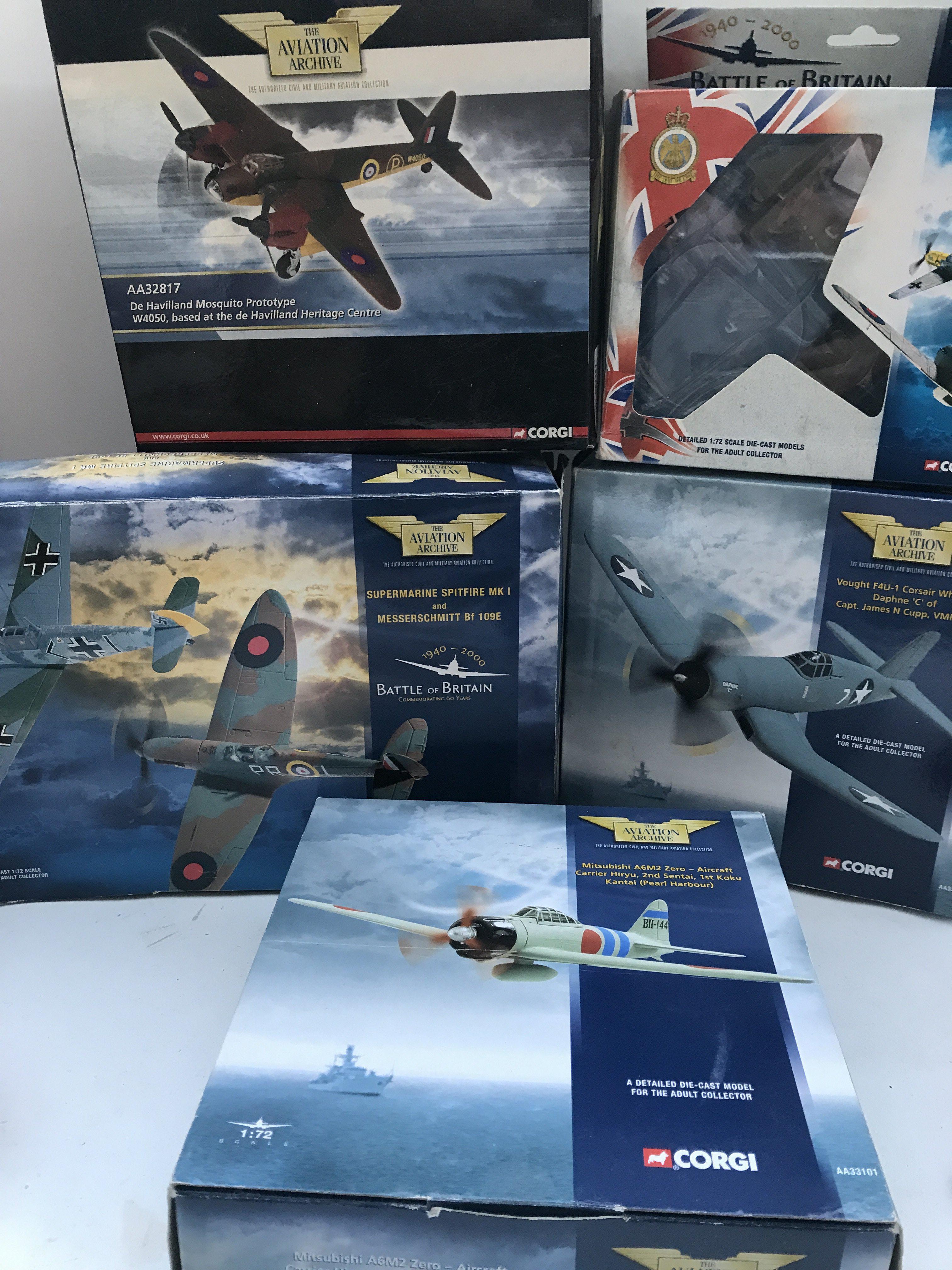 4 Boxed Corgi Aviation Archive Aircraft. A Mitsubishi Zero. A Vought Corsair. And Battle Of Britain.