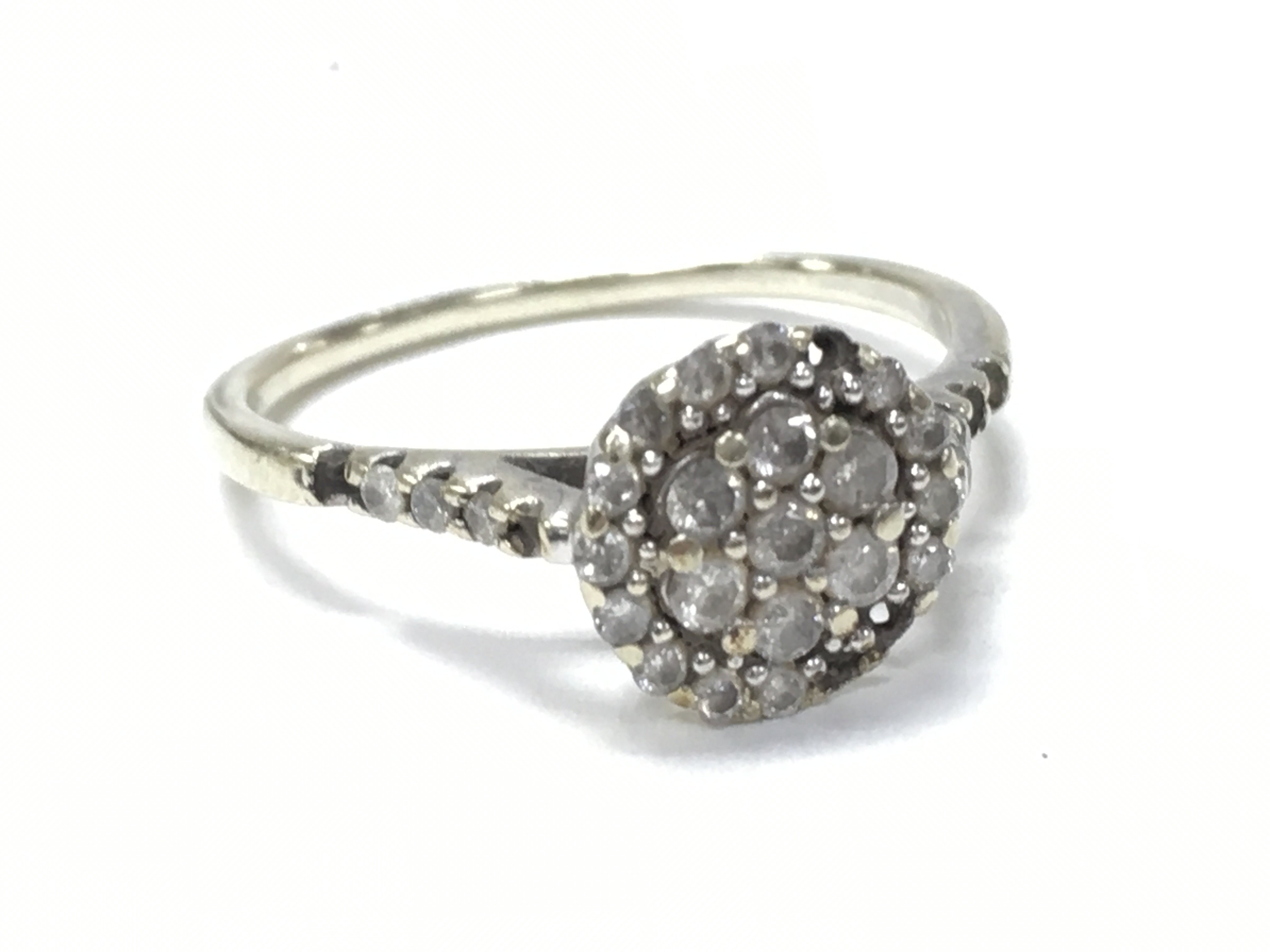 A white metal diamond cluster illusion style ring, size M/N. Total weight 2.42g Postage category A