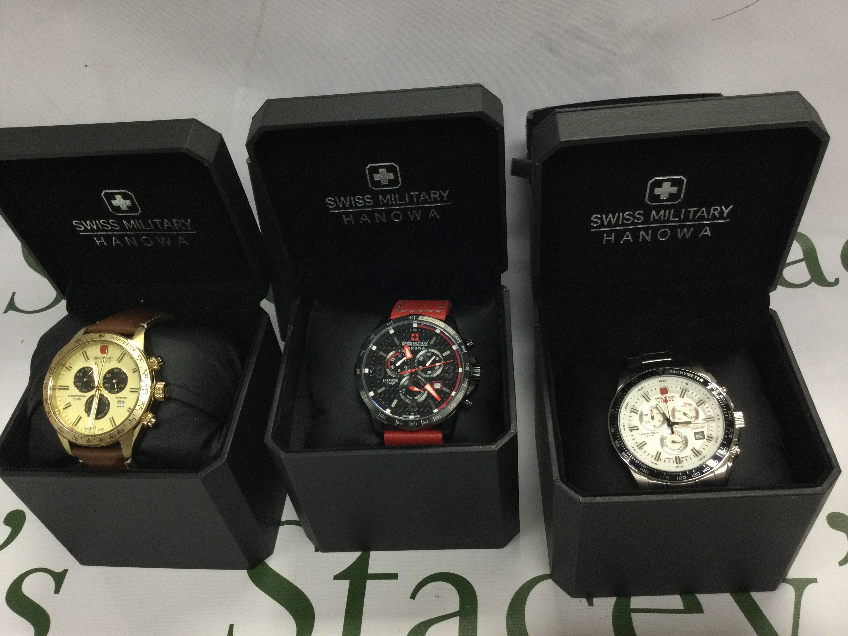 Three Swiss Military Hanowa wrist watches with boxes. Postage B